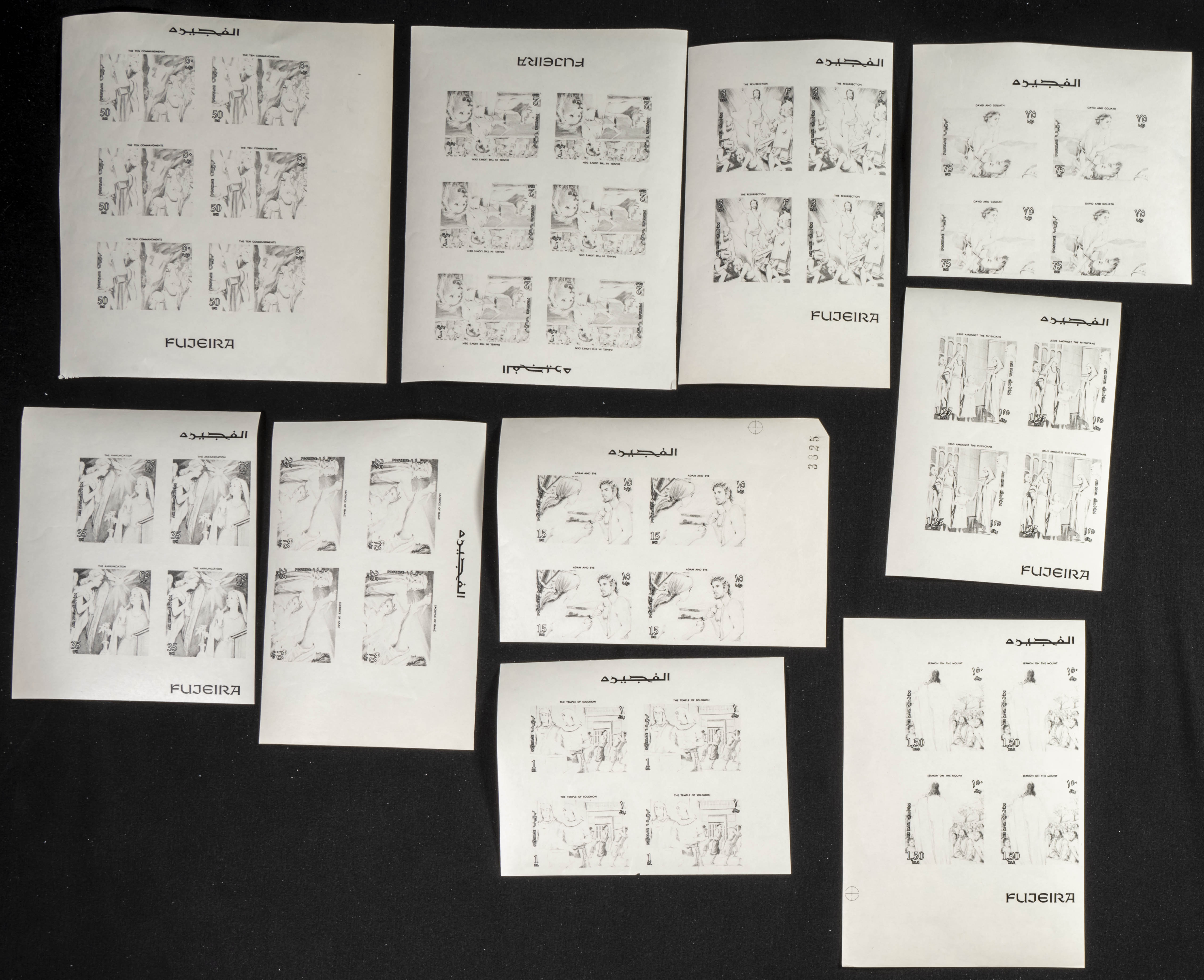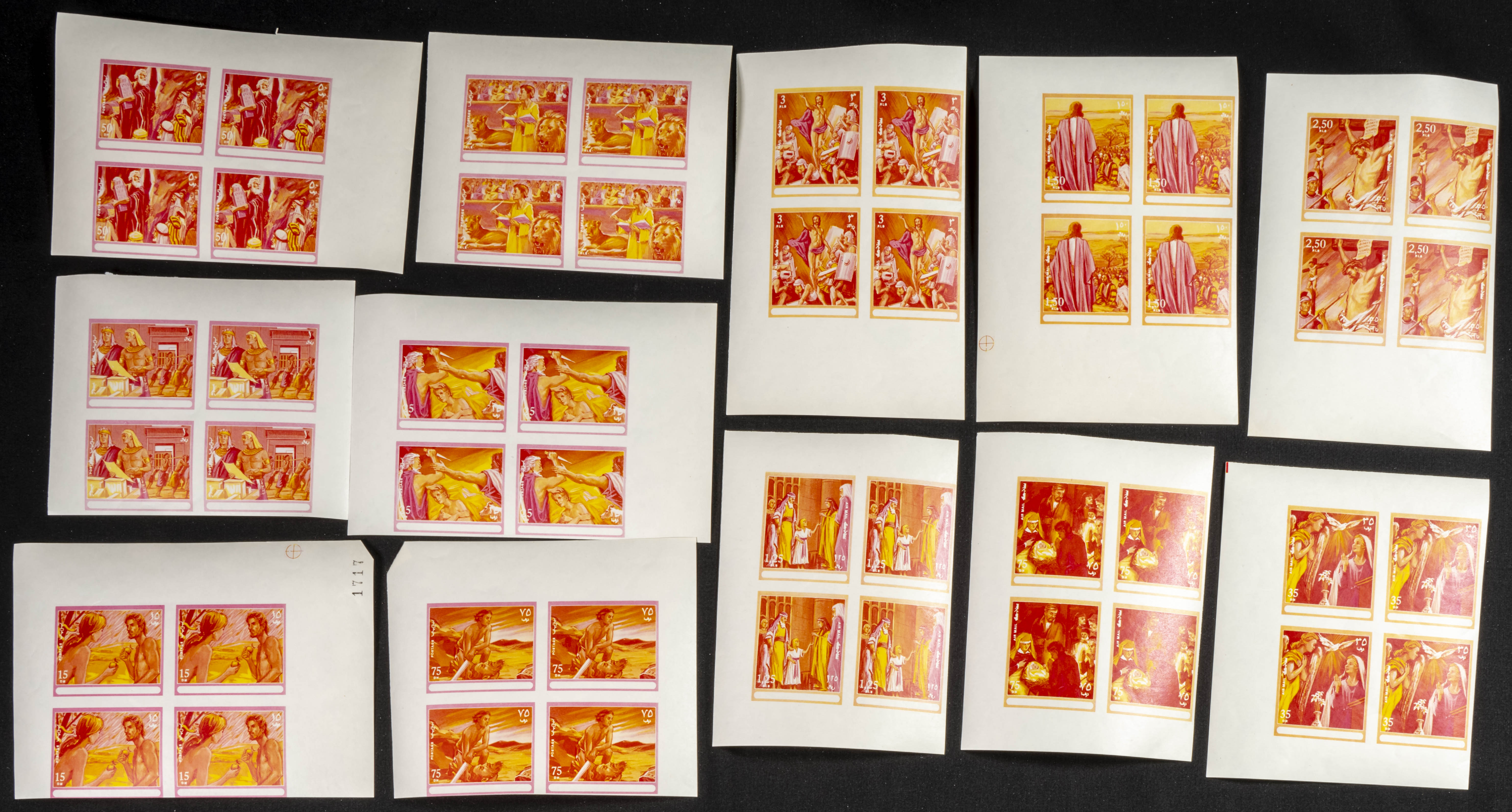 ★★1970. Biblical paintings. Group of progressive plate proofs of the set. (Michel: 431/38). TO EXAM.