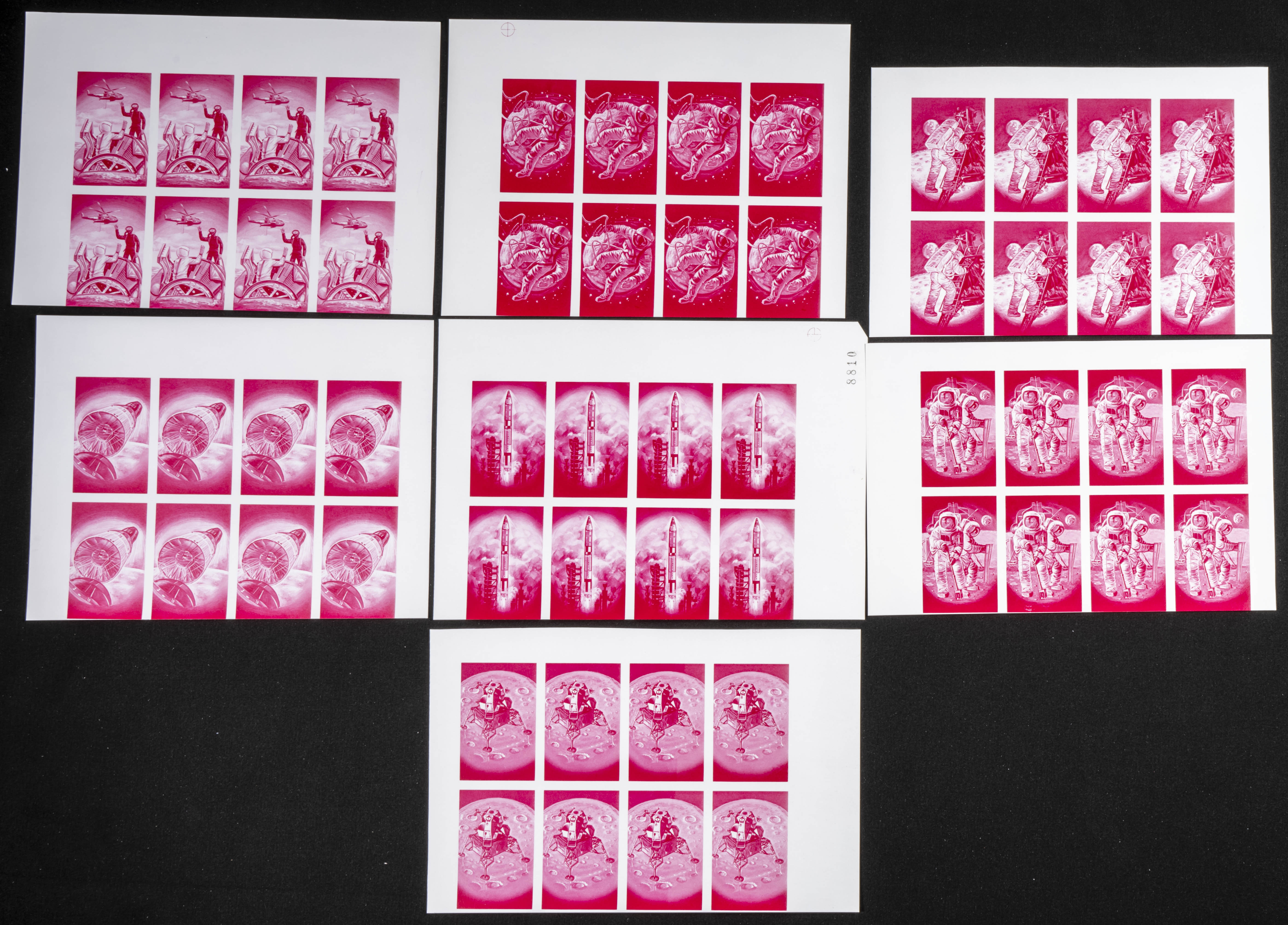 ★★1970. Apollo 12. Group of progressive plate proofs of the set. (Michel: 449/55). TO EXAM.