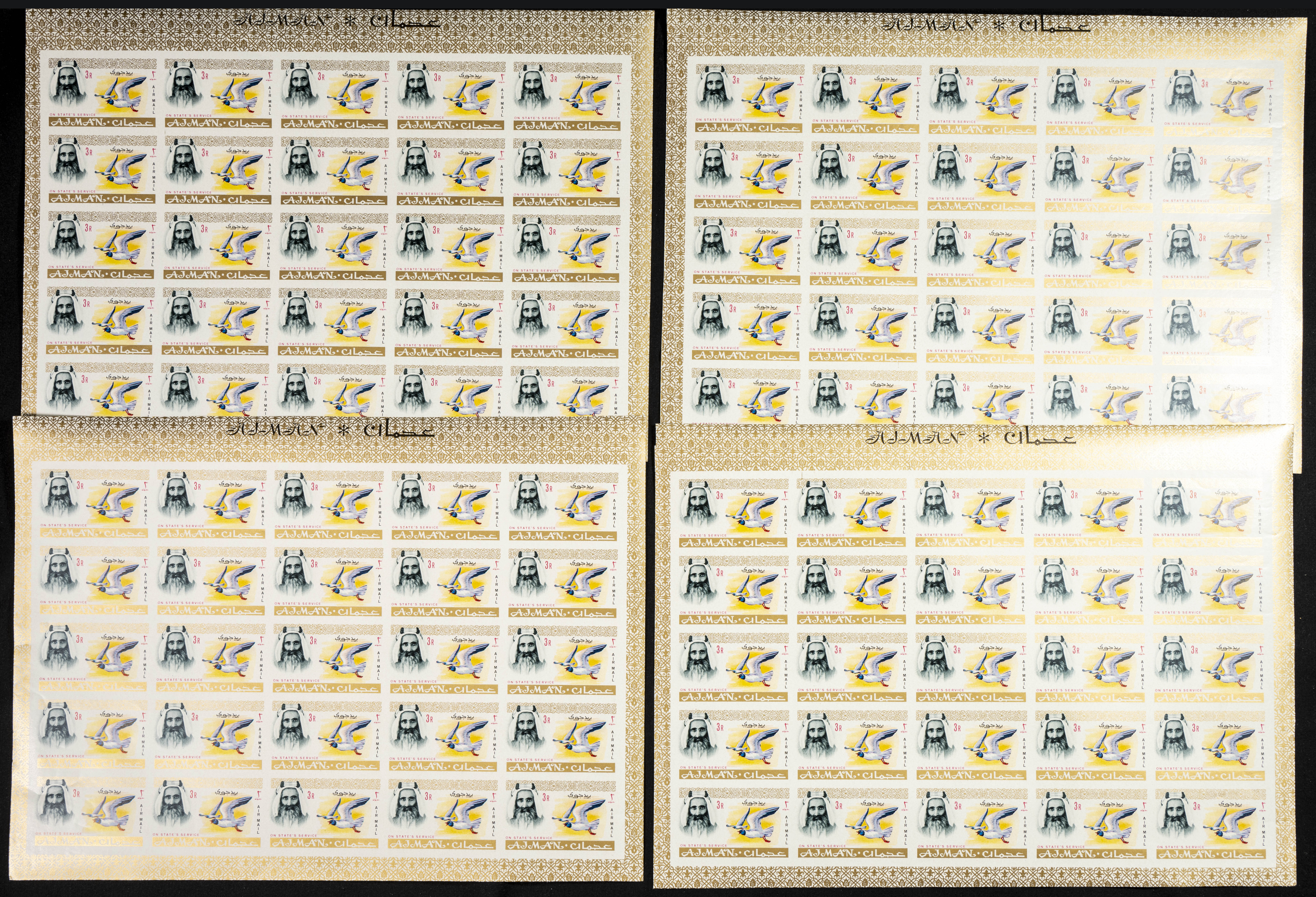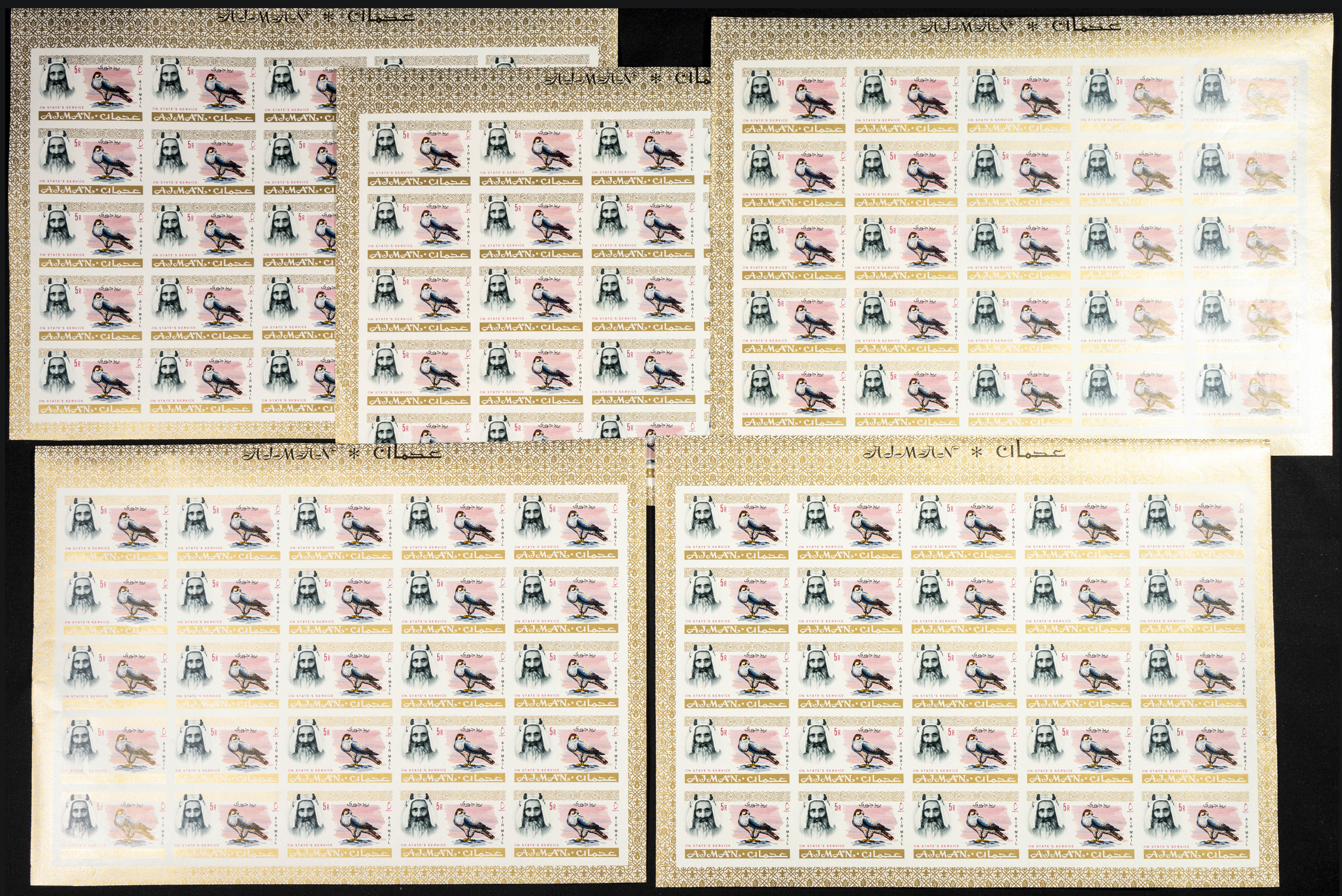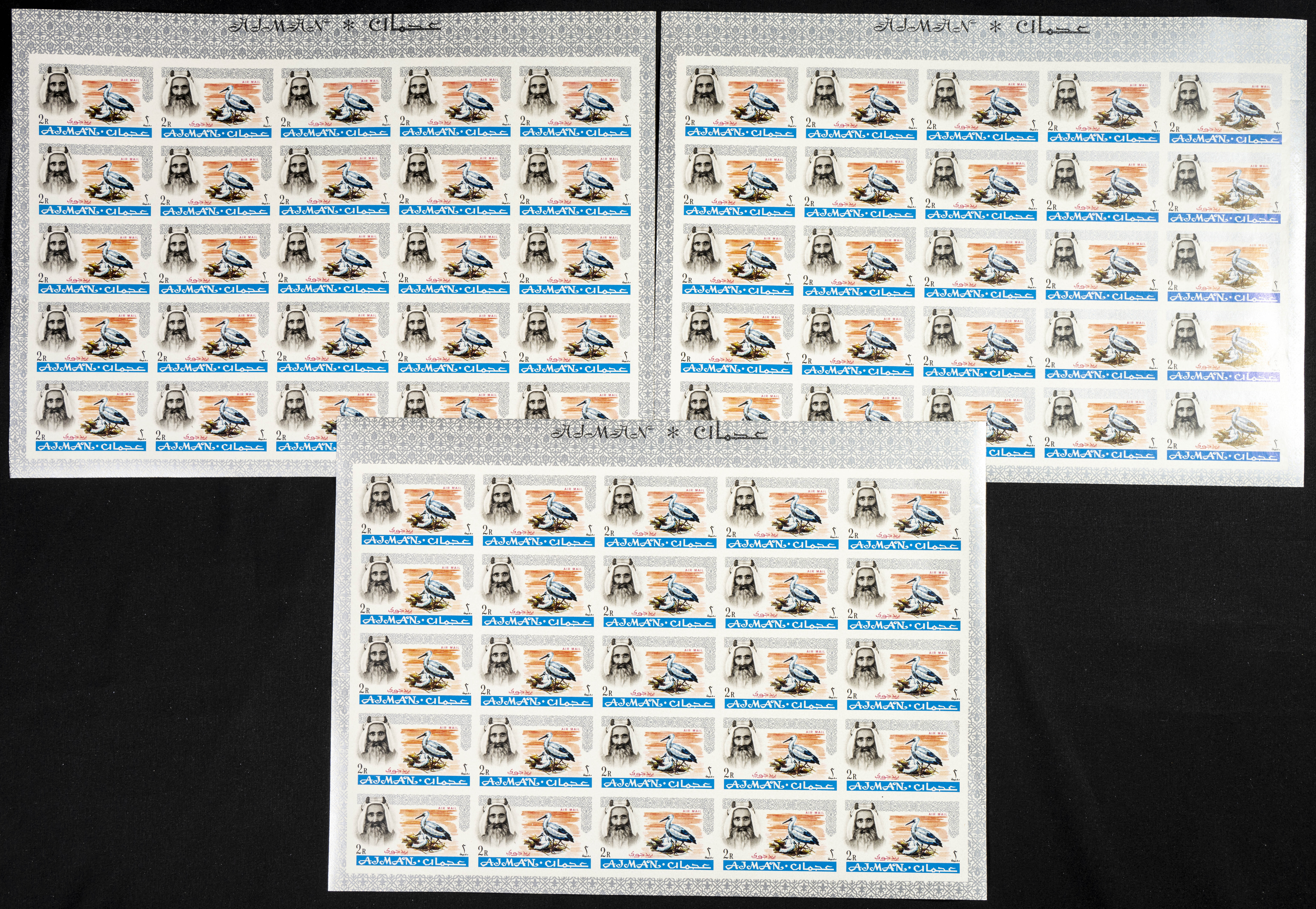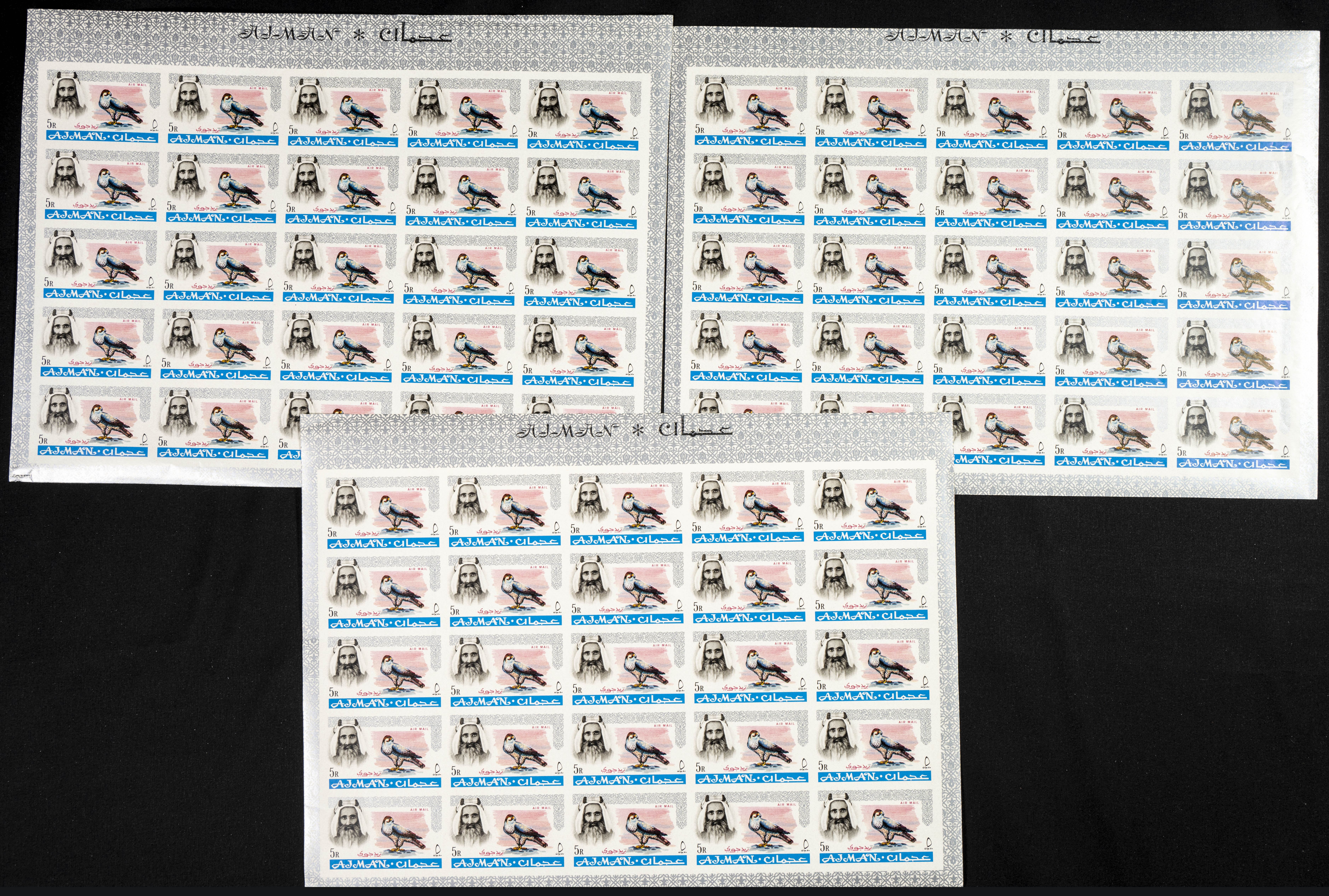 ★★ . 1964. Definitives, first set of Ajman. Group of IMPERFORATED sets. (Michel: 1/18). TO EXAM.