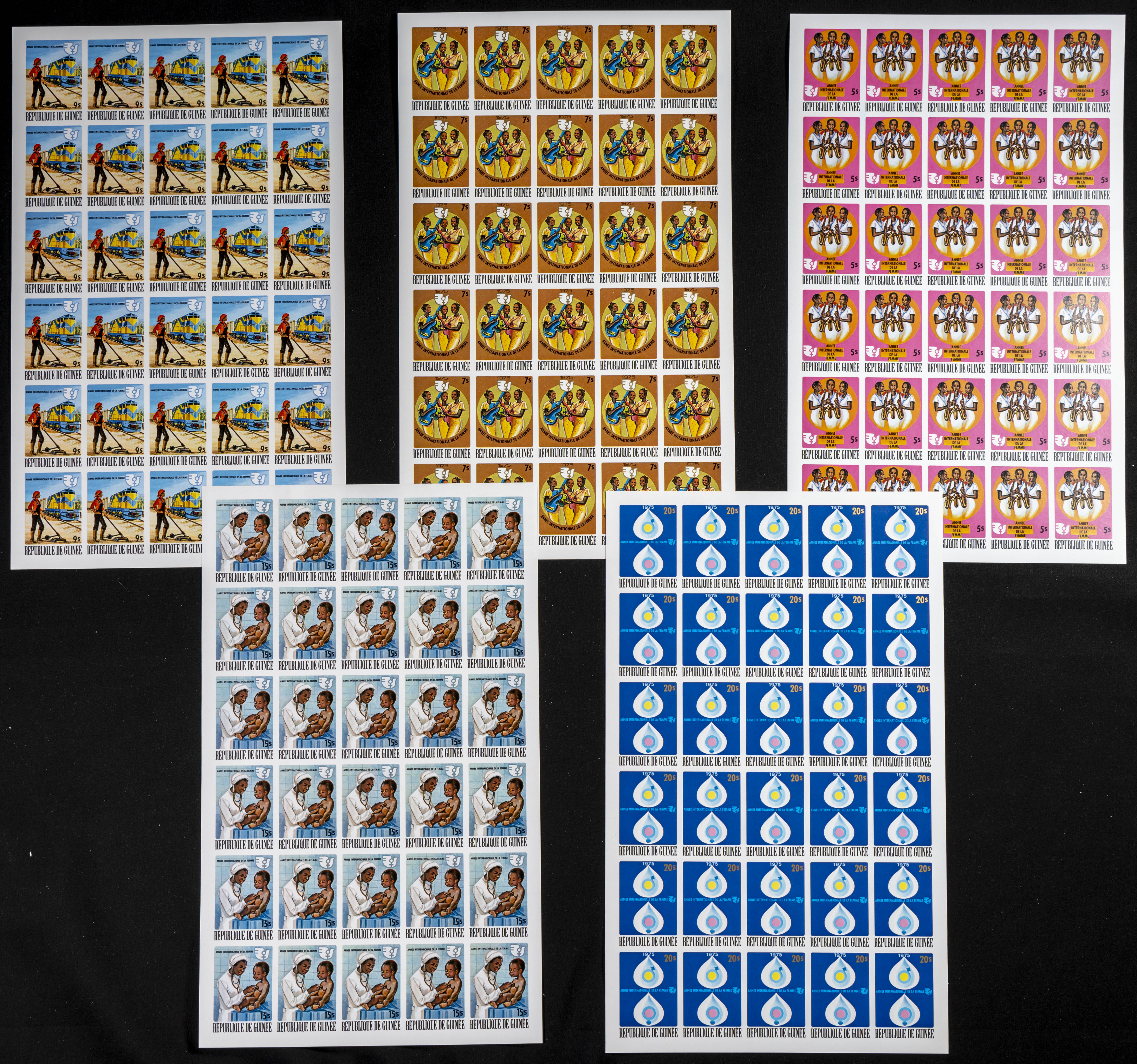 ★★Yvert 555/59. 1975. Int. year of women. Group of IMPERFORATED sets. TO EXAM.