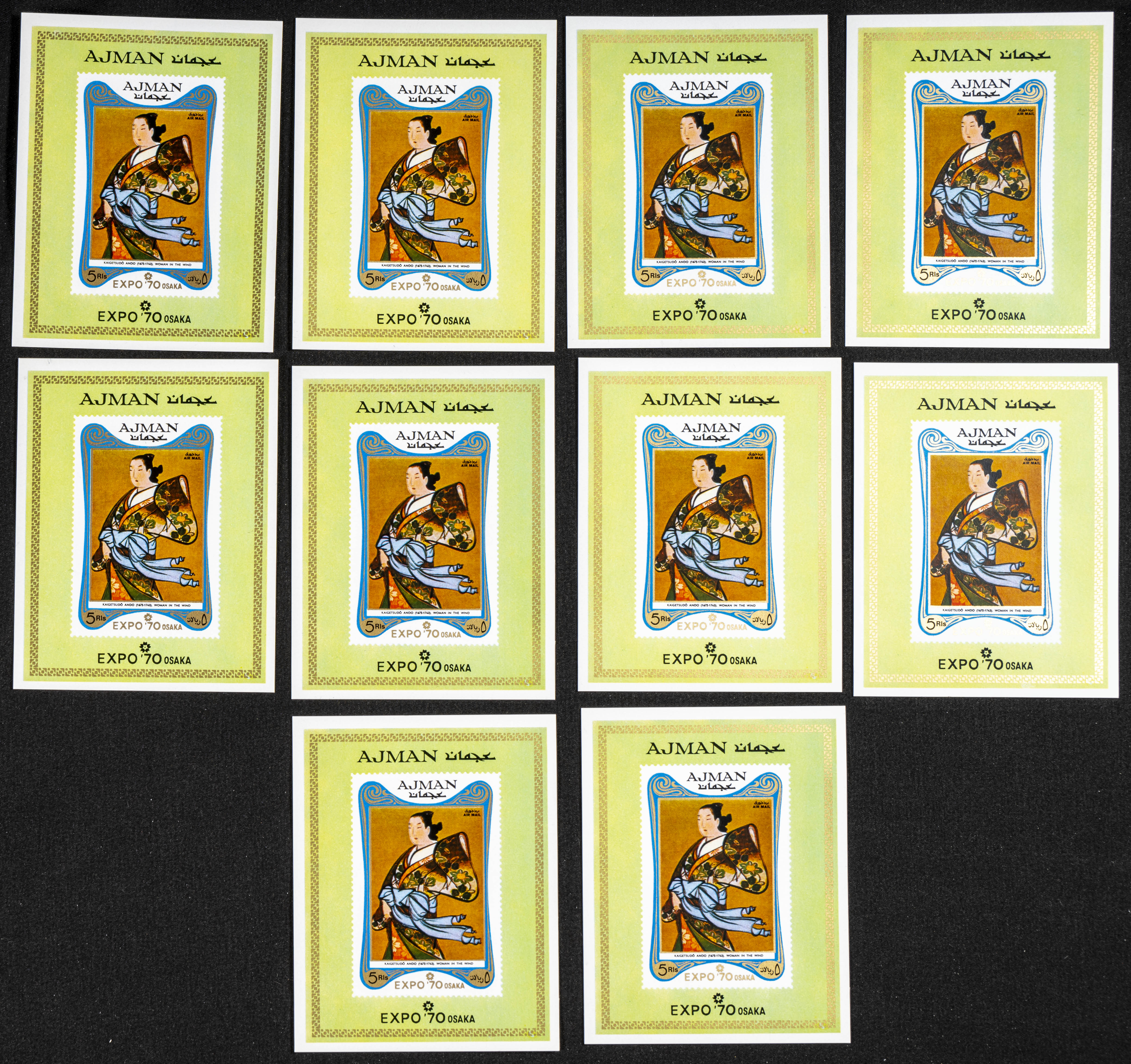 ★★ . 1970. Expo 70 Osaka. Group of complete set IMPERFORATED on individual sheets. (Michel: 532/40). TO EXAM.
