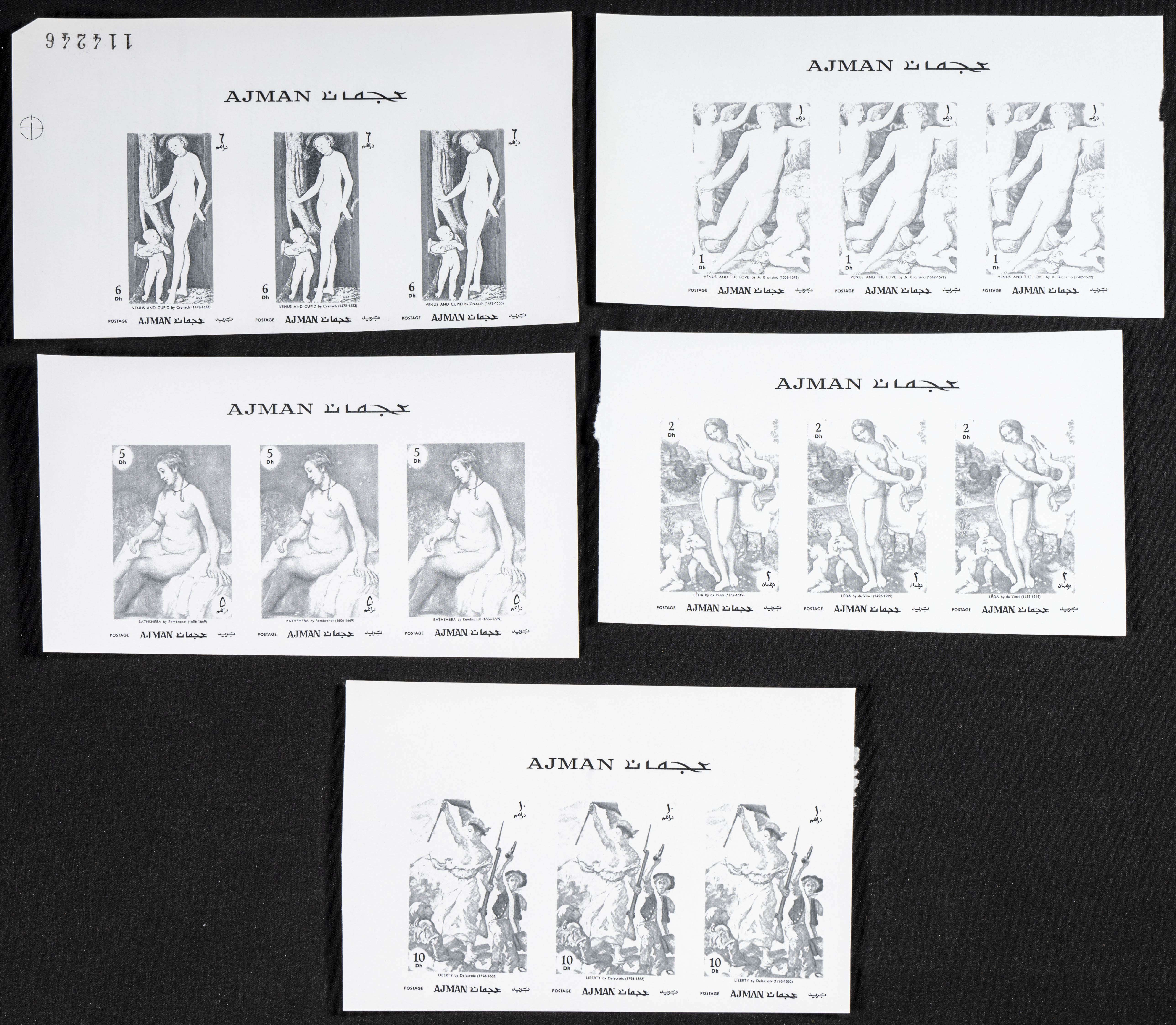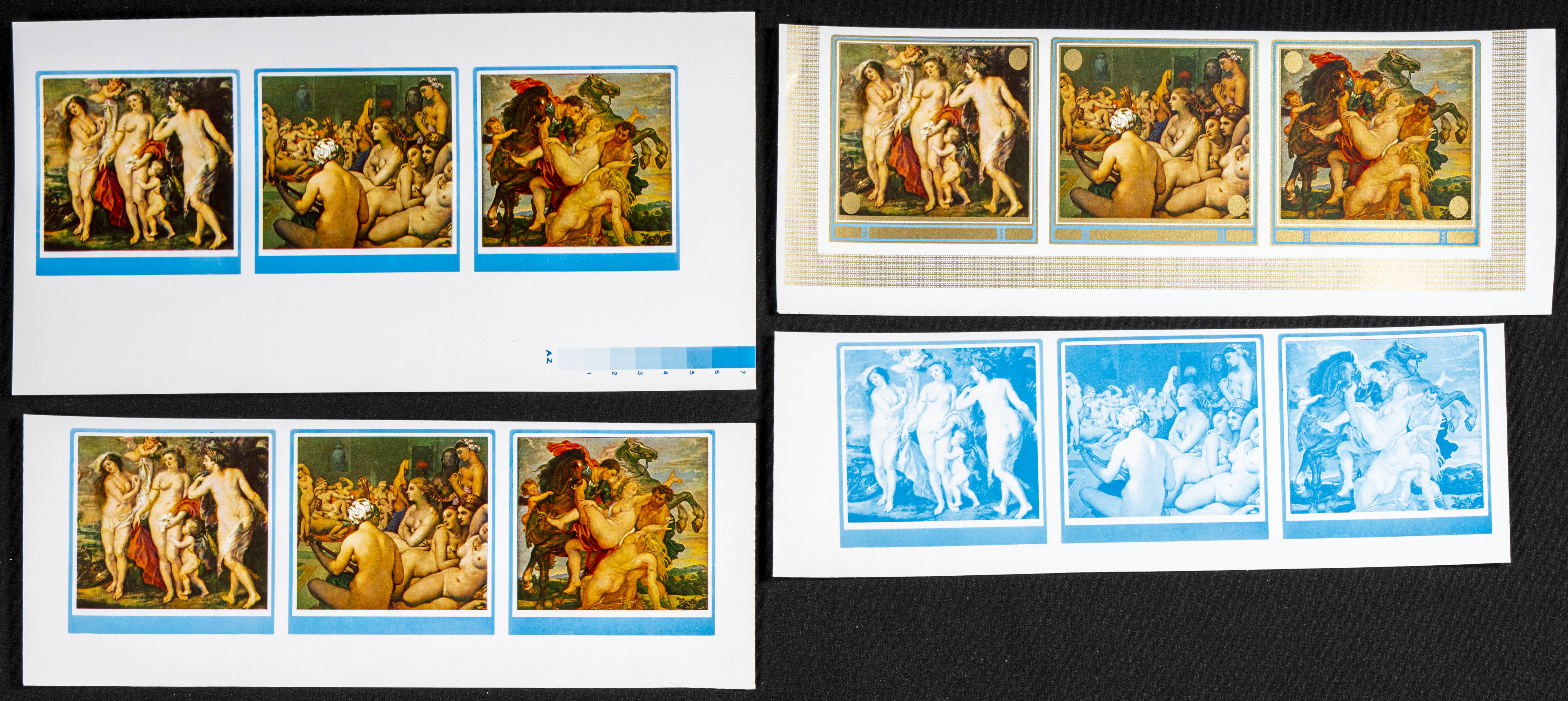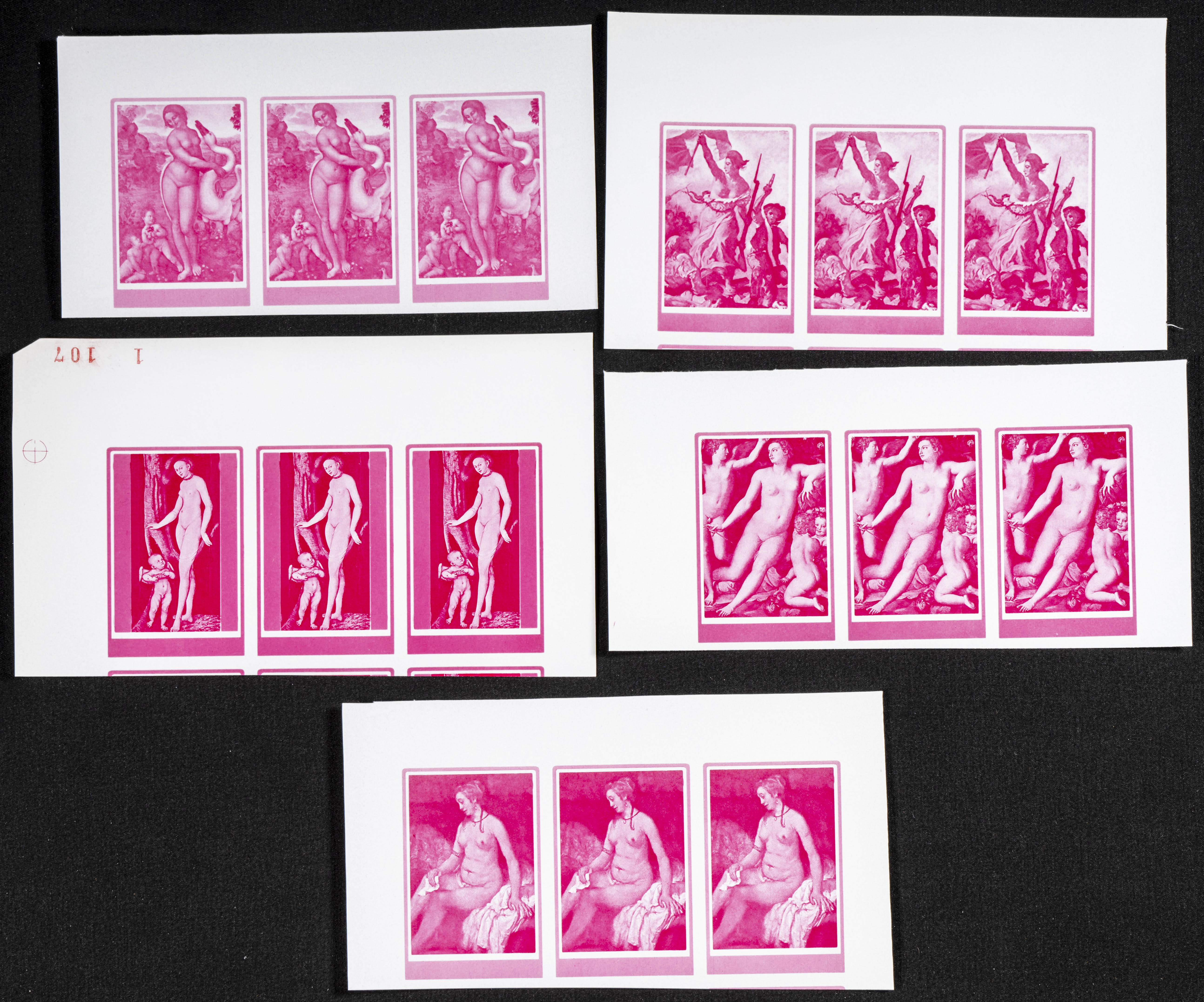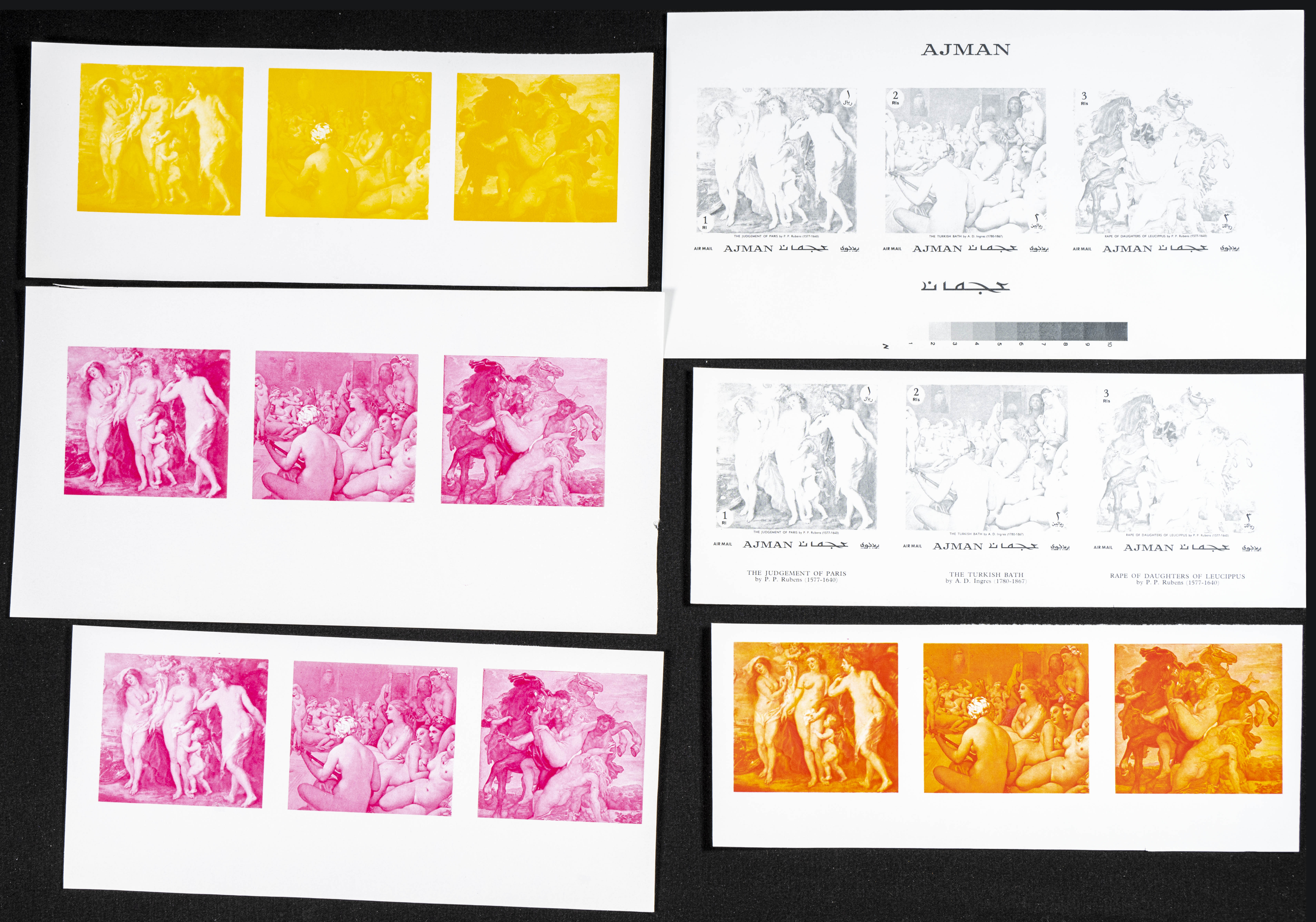 ★★ . 1970. Paintings. Group of progressive plate proofs of the set. (Michel: 552/59). TO EXAM.