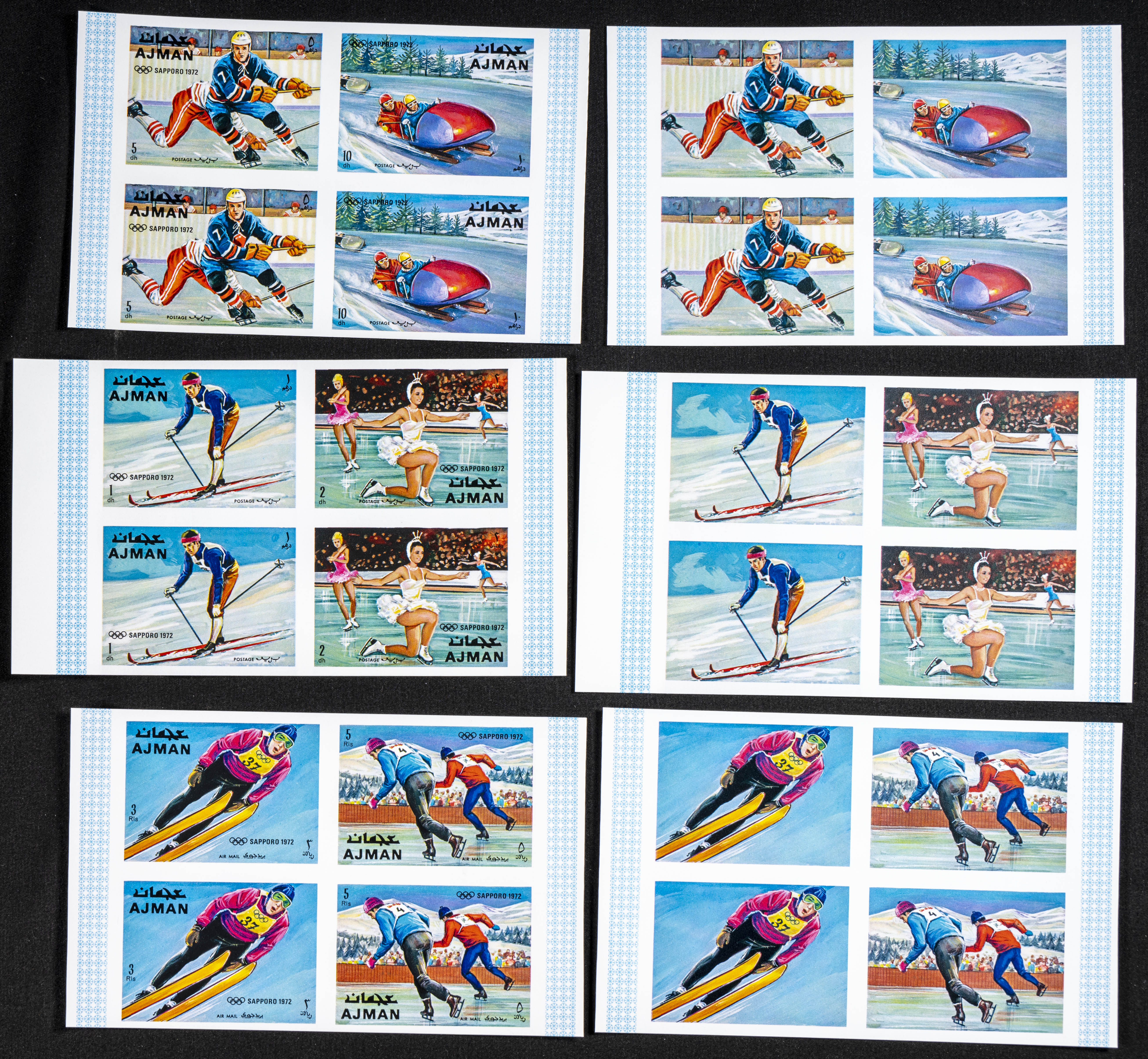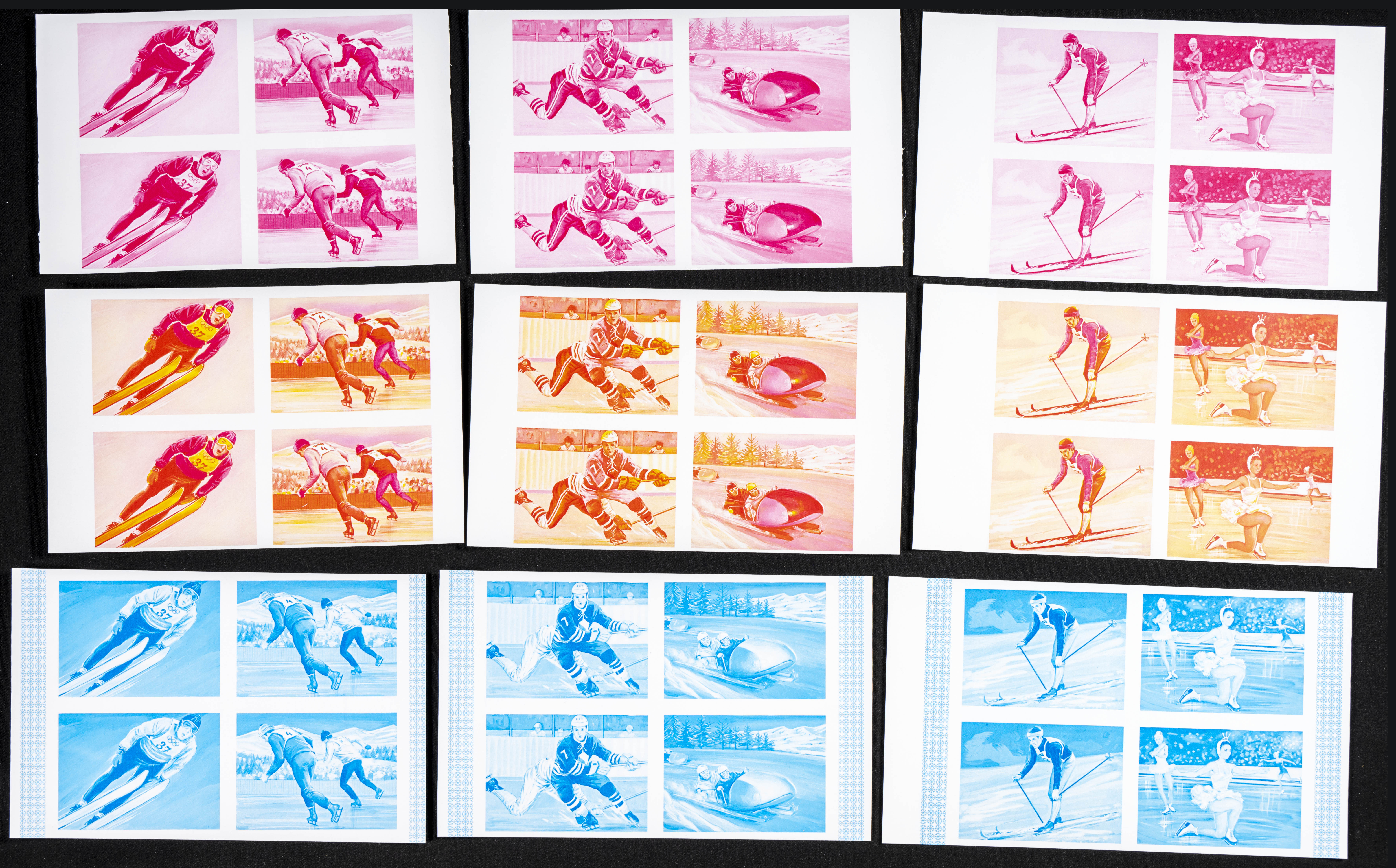 ★★ . 1970. Olympic Winter Games. Group of progressive plate proofs of the set. (Michel: 662/67). TO EXAM.