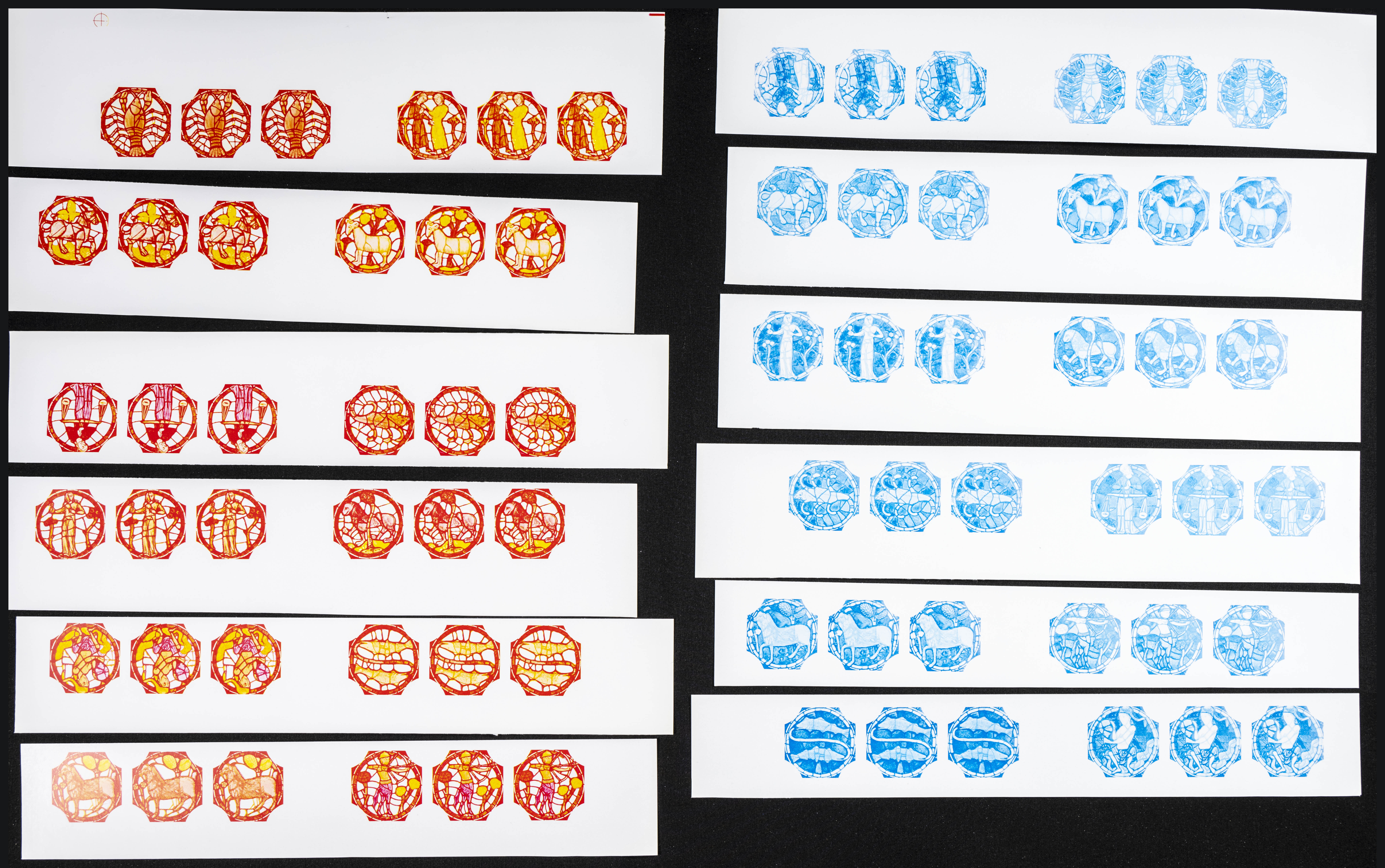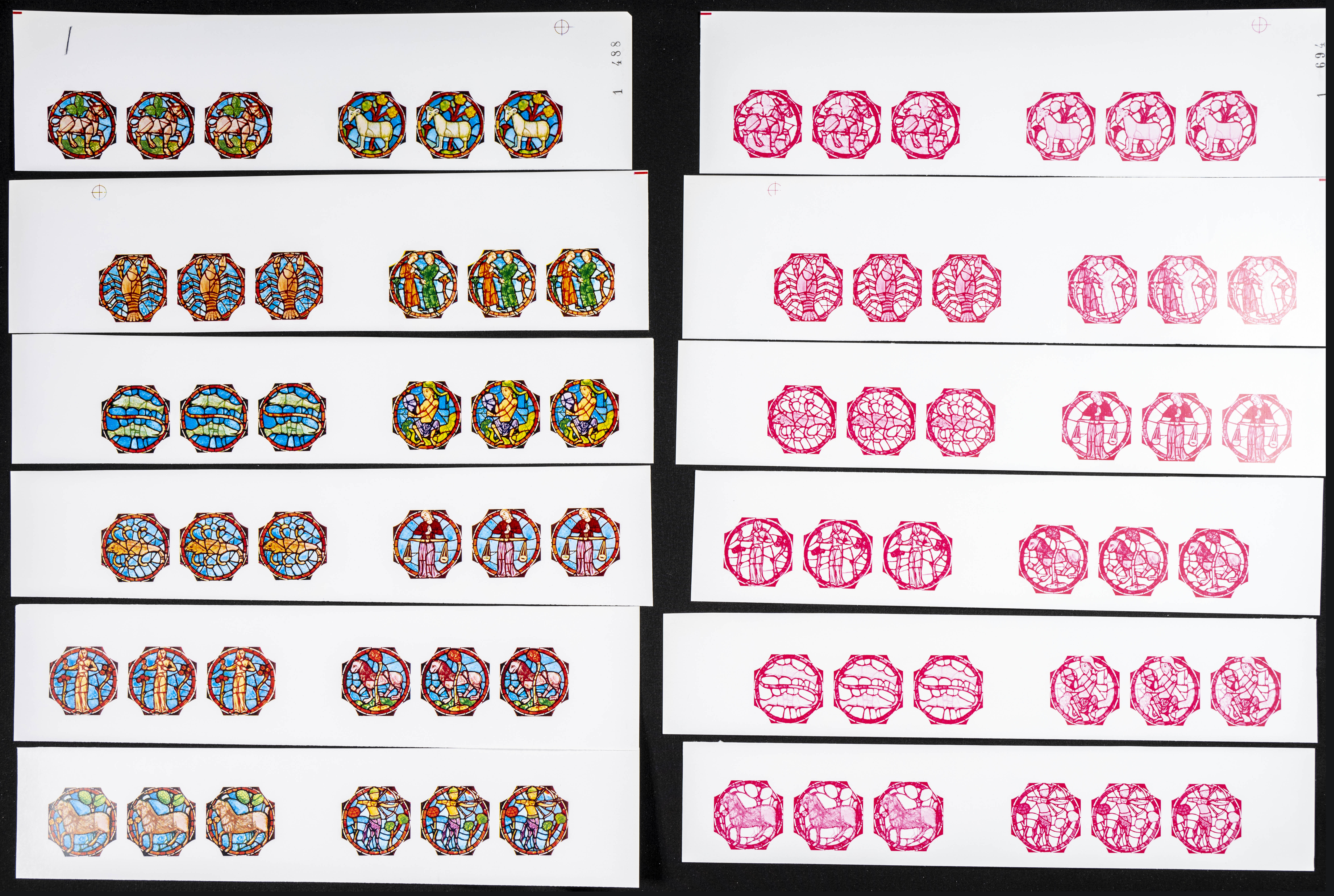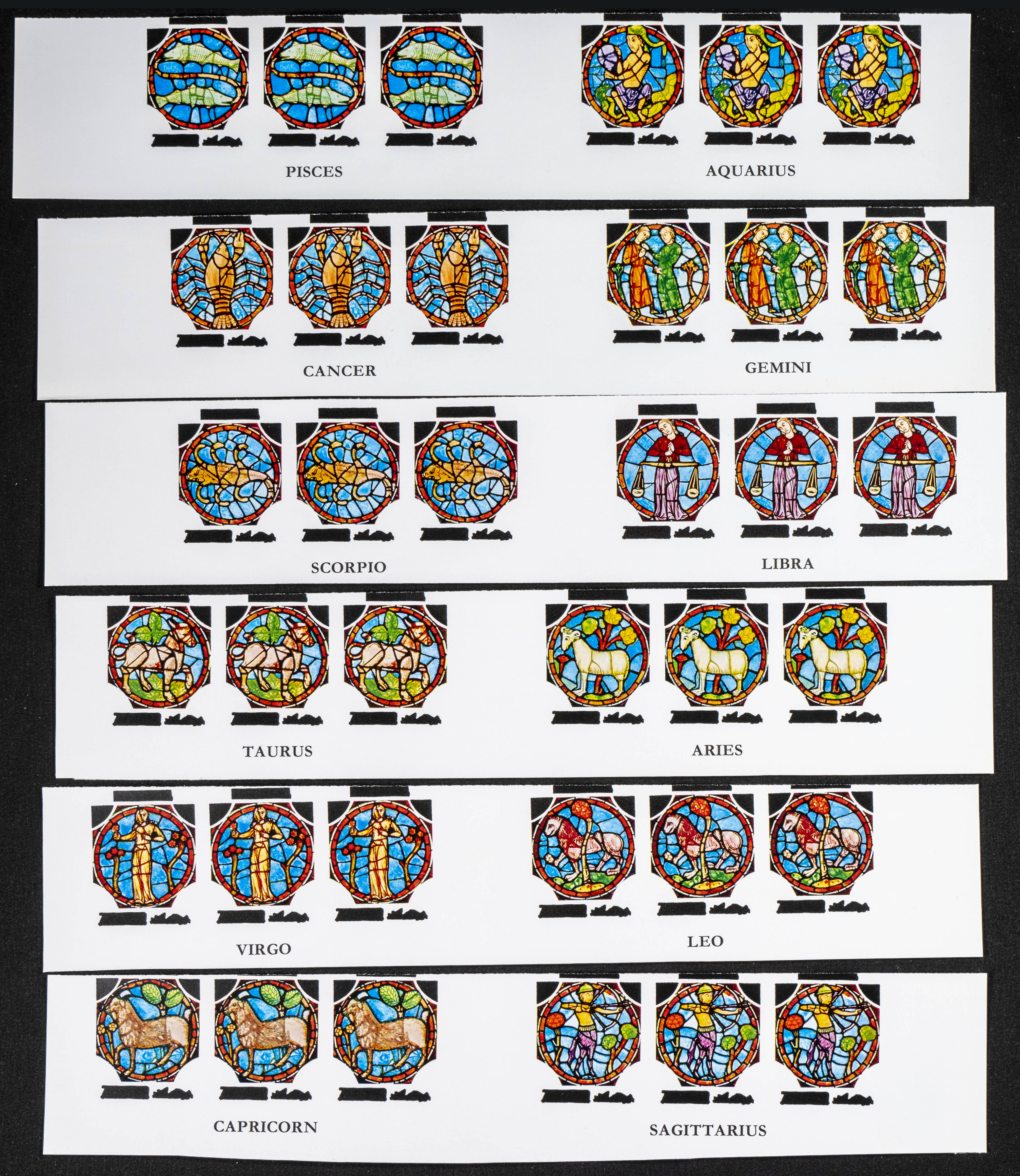 ★★ . 1971. Zodiac, Notre Dame windows. Group of progressive plate proofs of the set. (Michel: 769/80). TO EXAM.