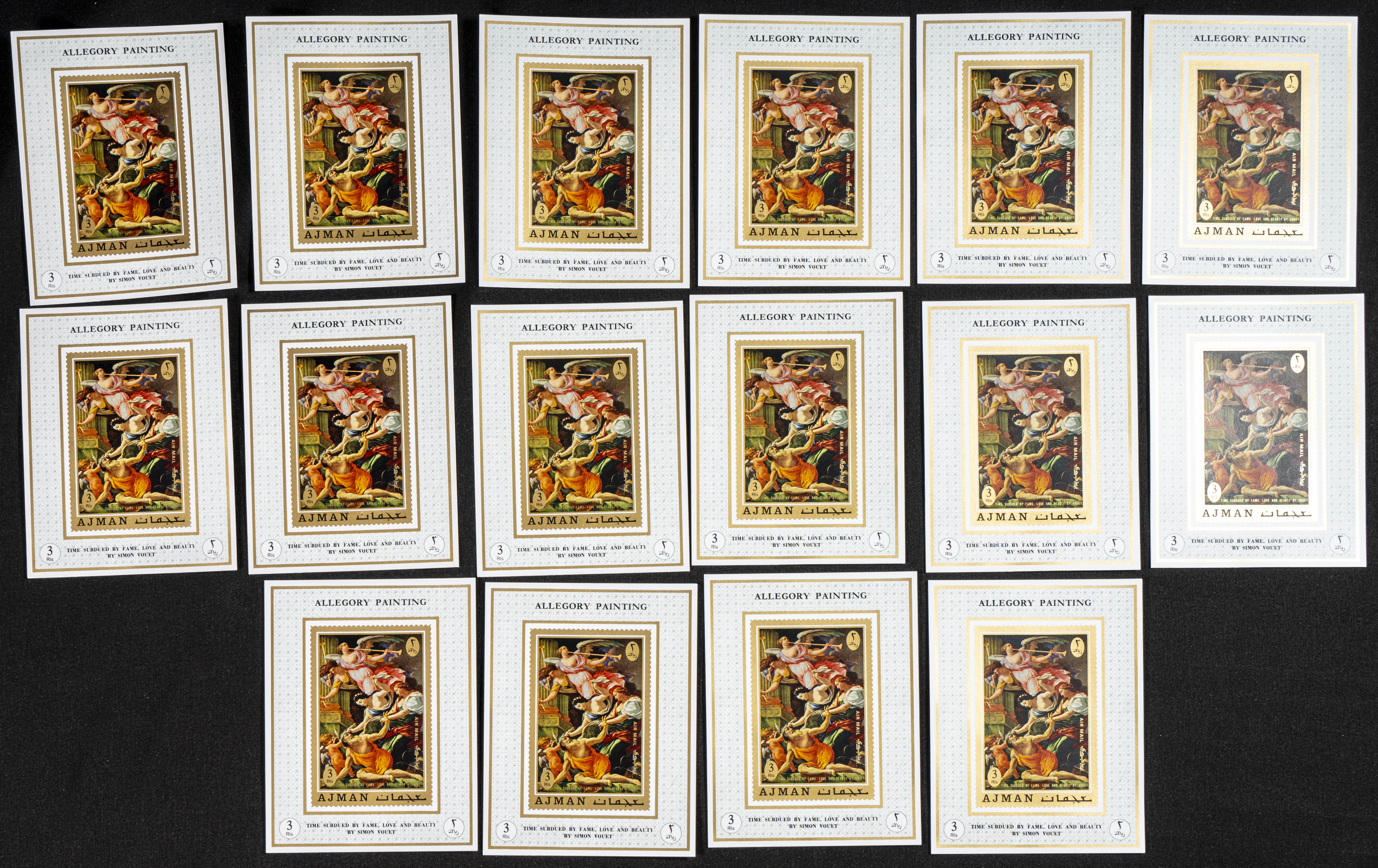 ★★ . 1971. Paintings. Group of complete set IMPERFORATED on individual sheets. (Michel: 826/33). TO EXAM.