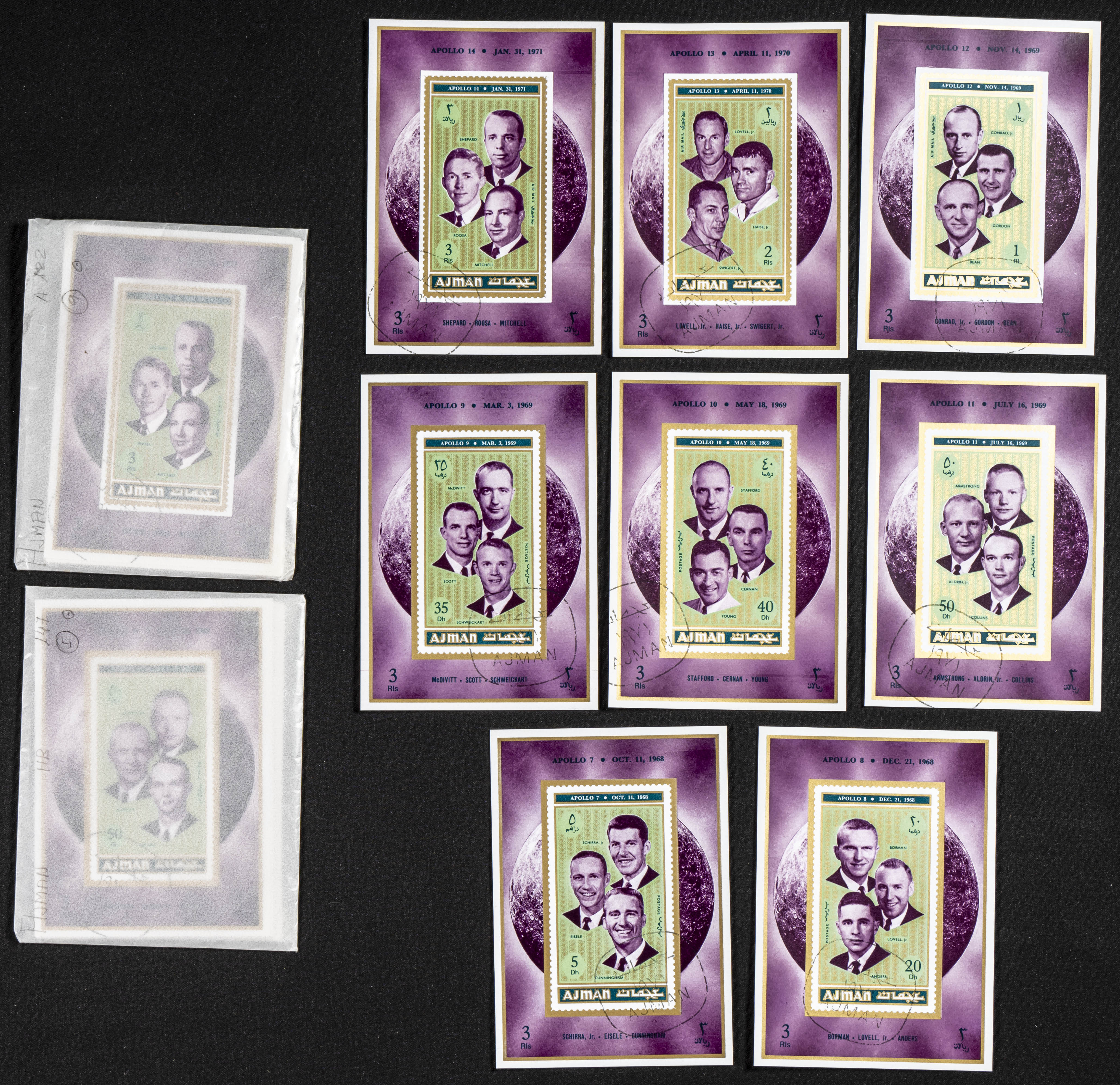 . 1971. Apollo crews. Group of complete set IMPERFORATED on individual sheets. (Michel: 982/89). TO EXAM.