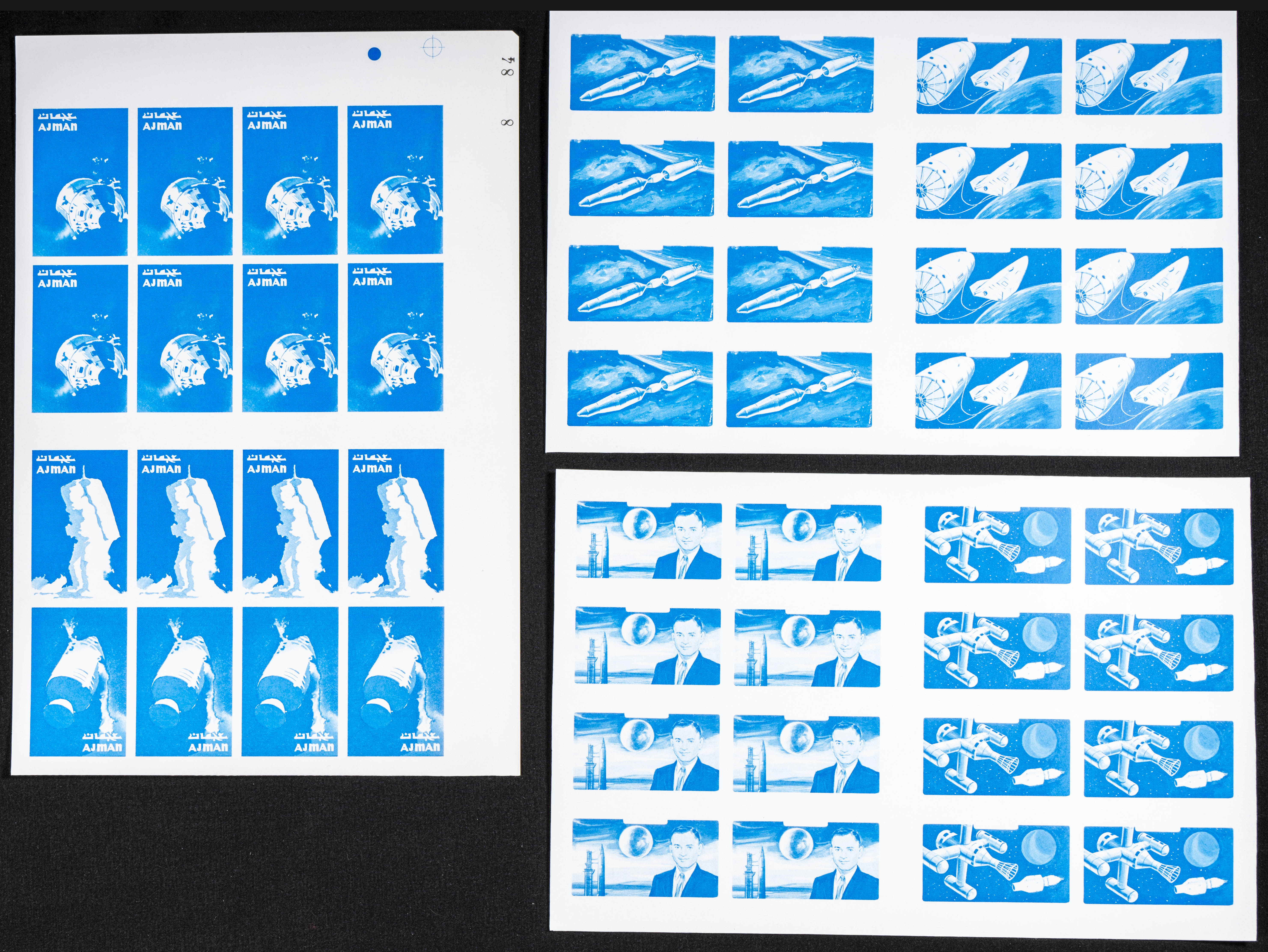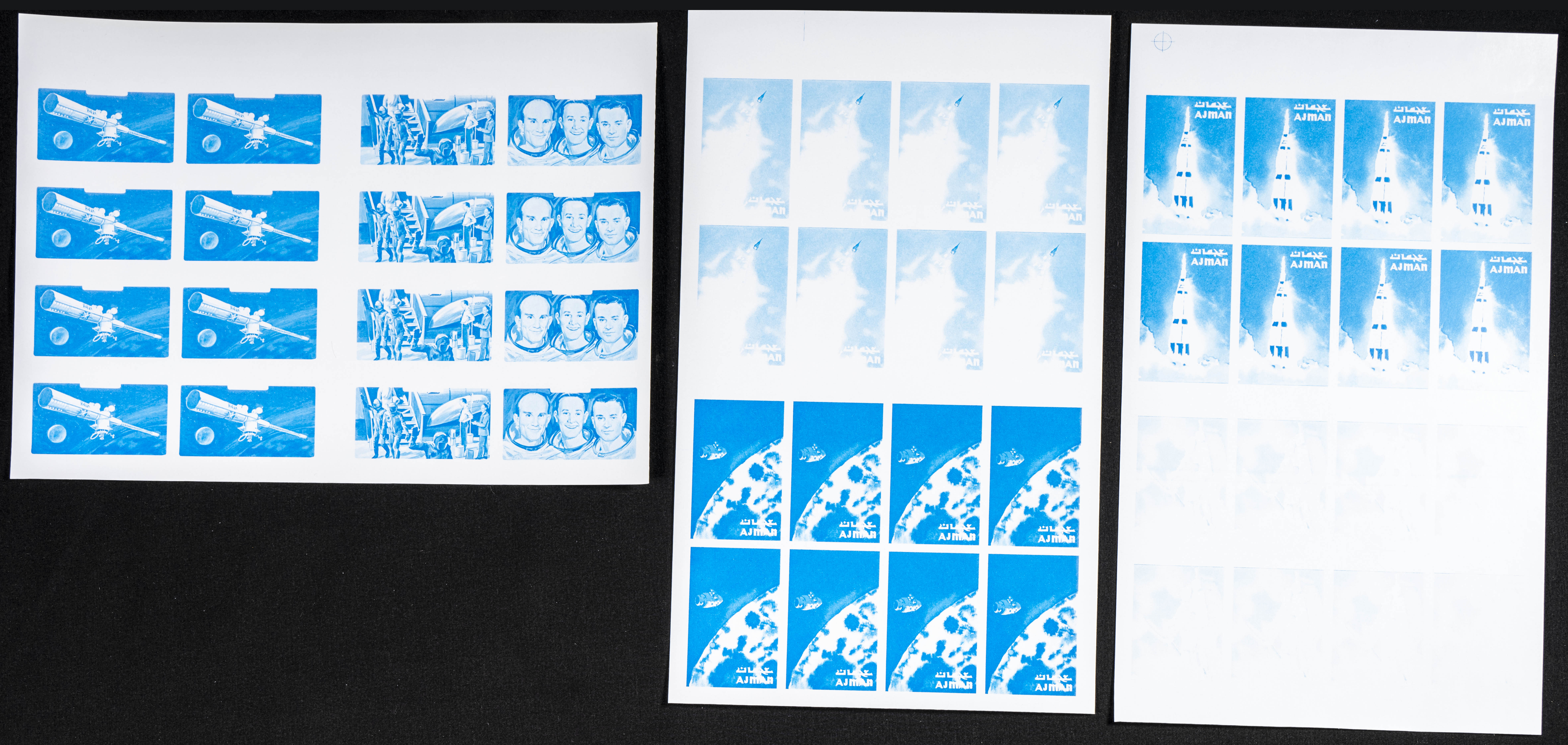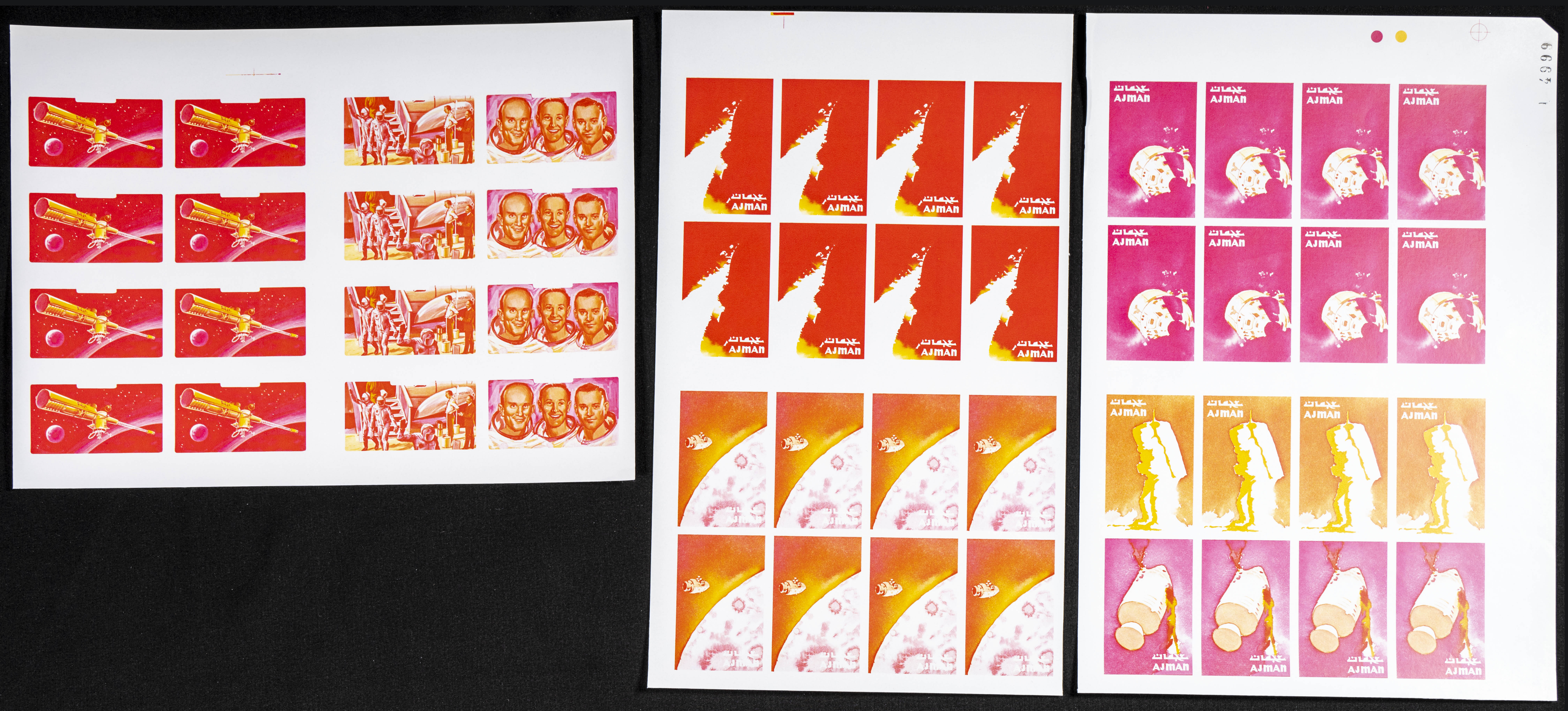 ★★Yvert . 1971. Apollo 16. Group of progressive plate proofs of the set. (Michel: 1014/20). TO EXAM.