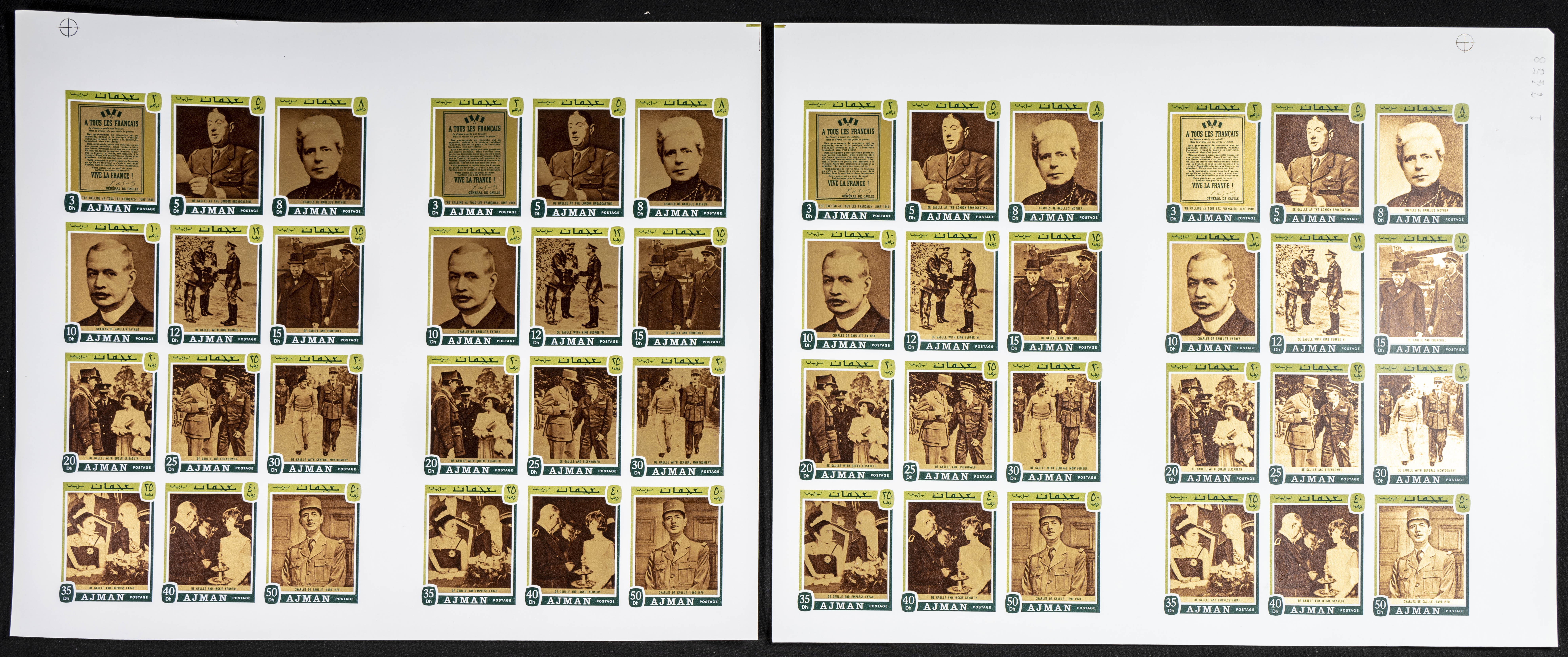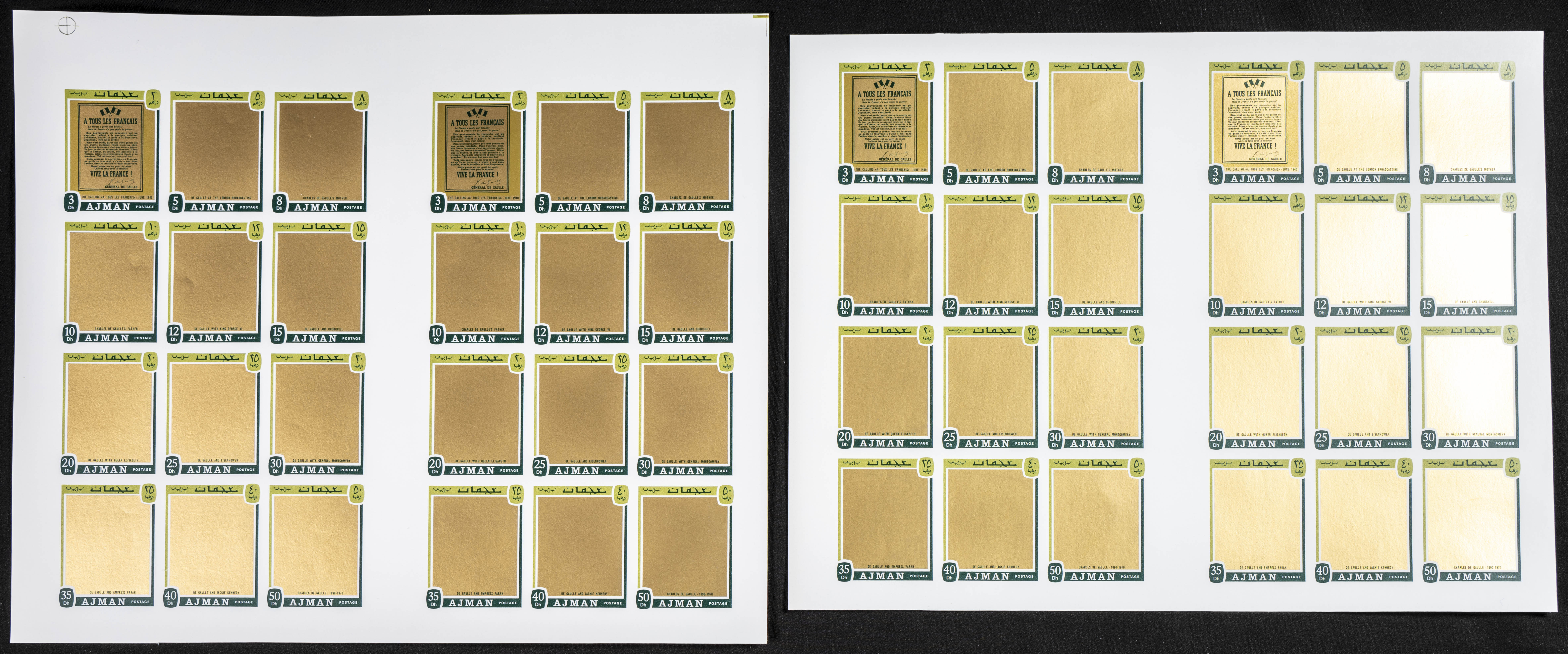★★Yvert . 1971. Charles de Gaulle. Group of progressive plate proofs of the set. (Michel: 1124/39). TO EXAM.