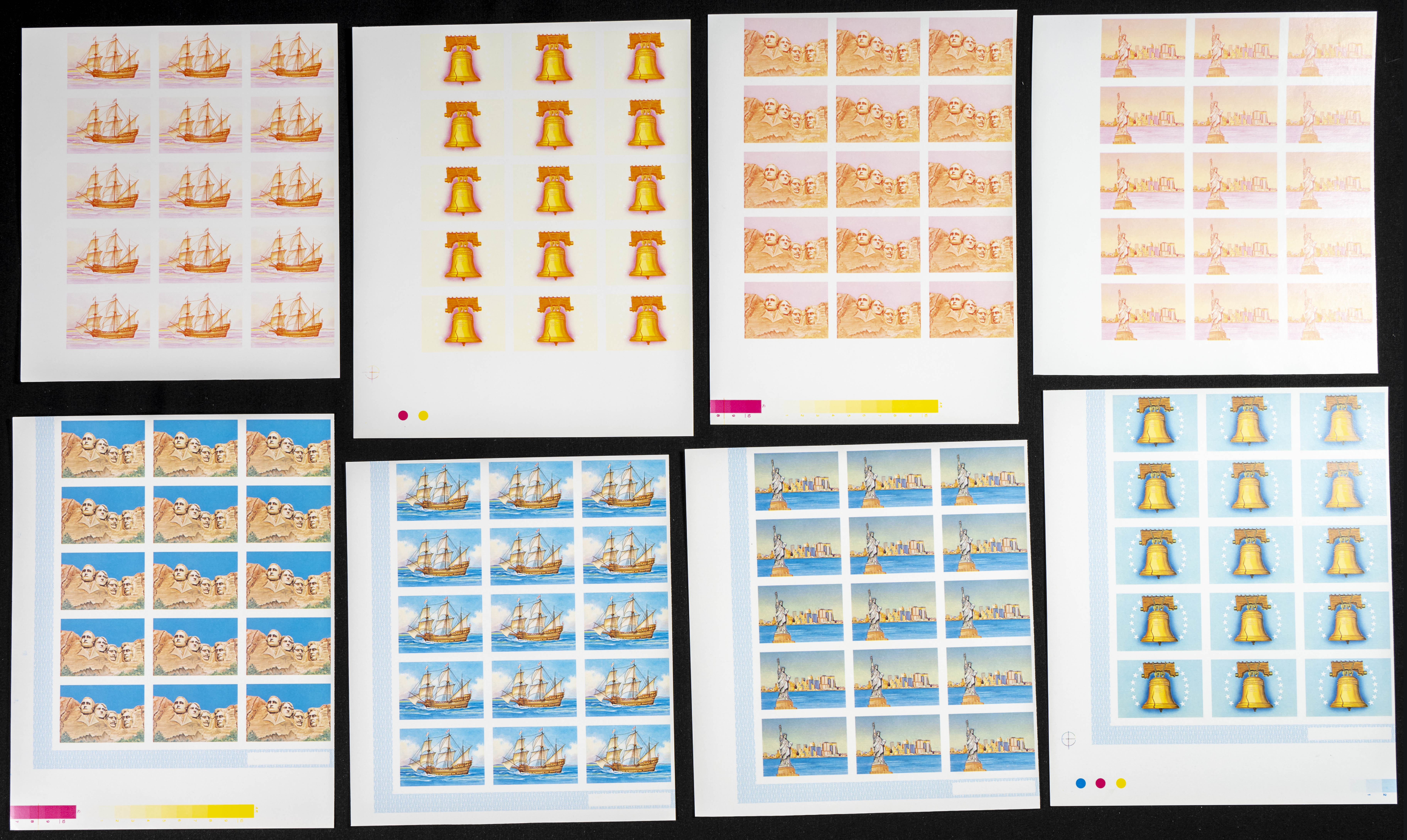★★Yvert 71/74. 1976. American bicentenary. Group of progressive plate proofs of the set. TO EXAM.