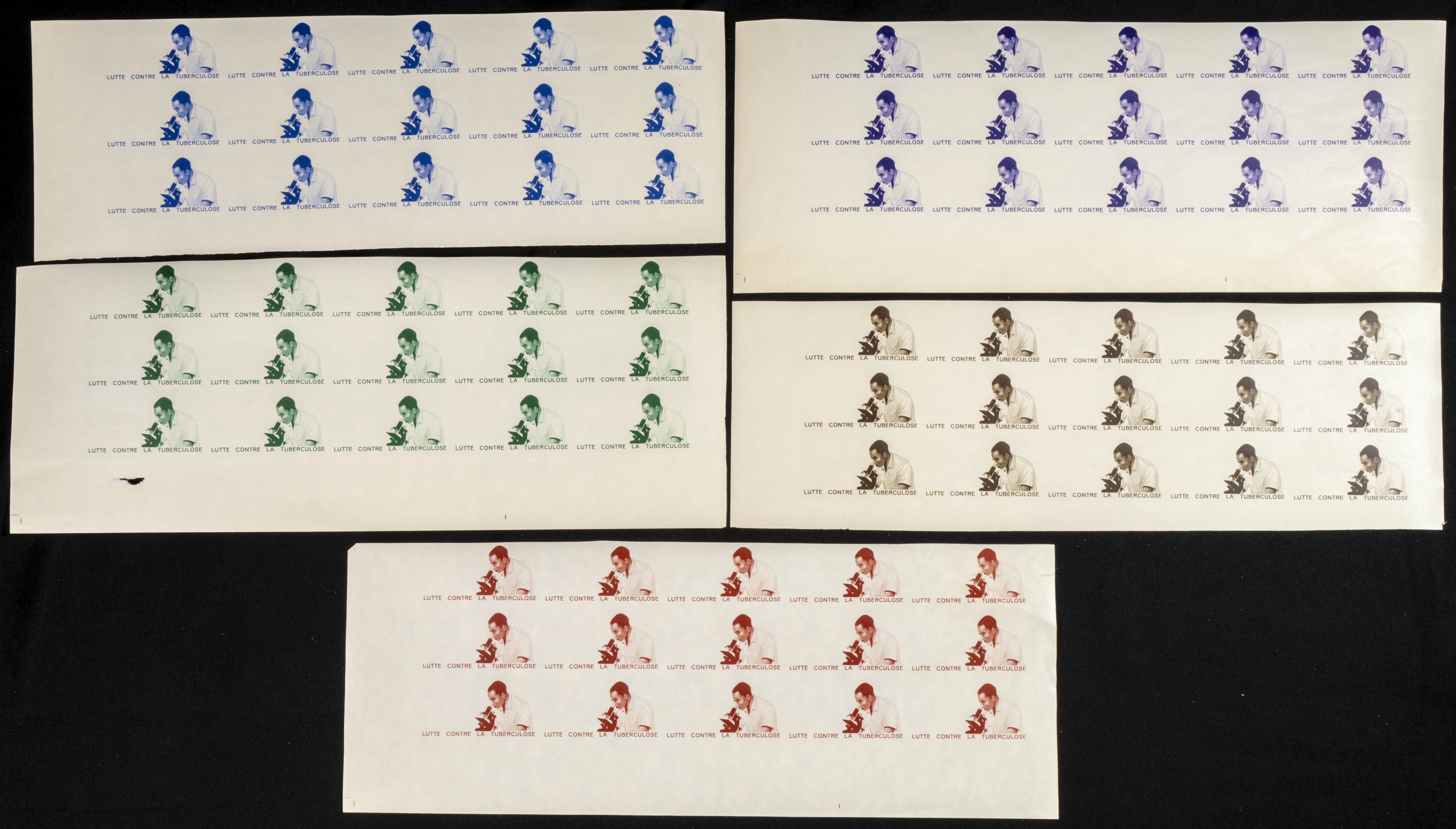 ★★Yvert 118/22. 1965. Anti tuberculosis. Group of progressive plate proofs of the set. TO EXAM.