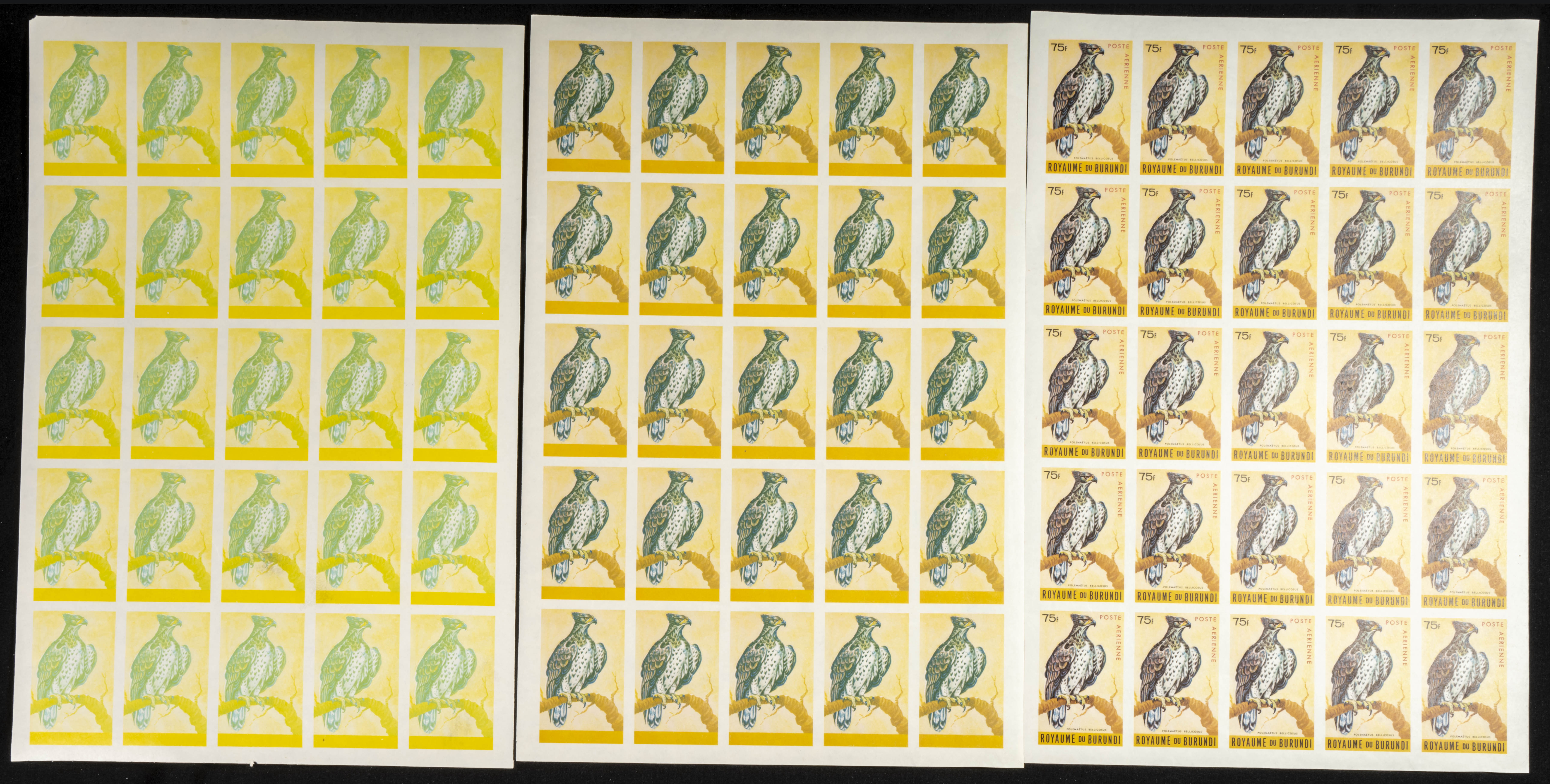 ★★Yvert A8/16. 1965. Birds. Group of progressive plate proofs of the set. TO EXAM.