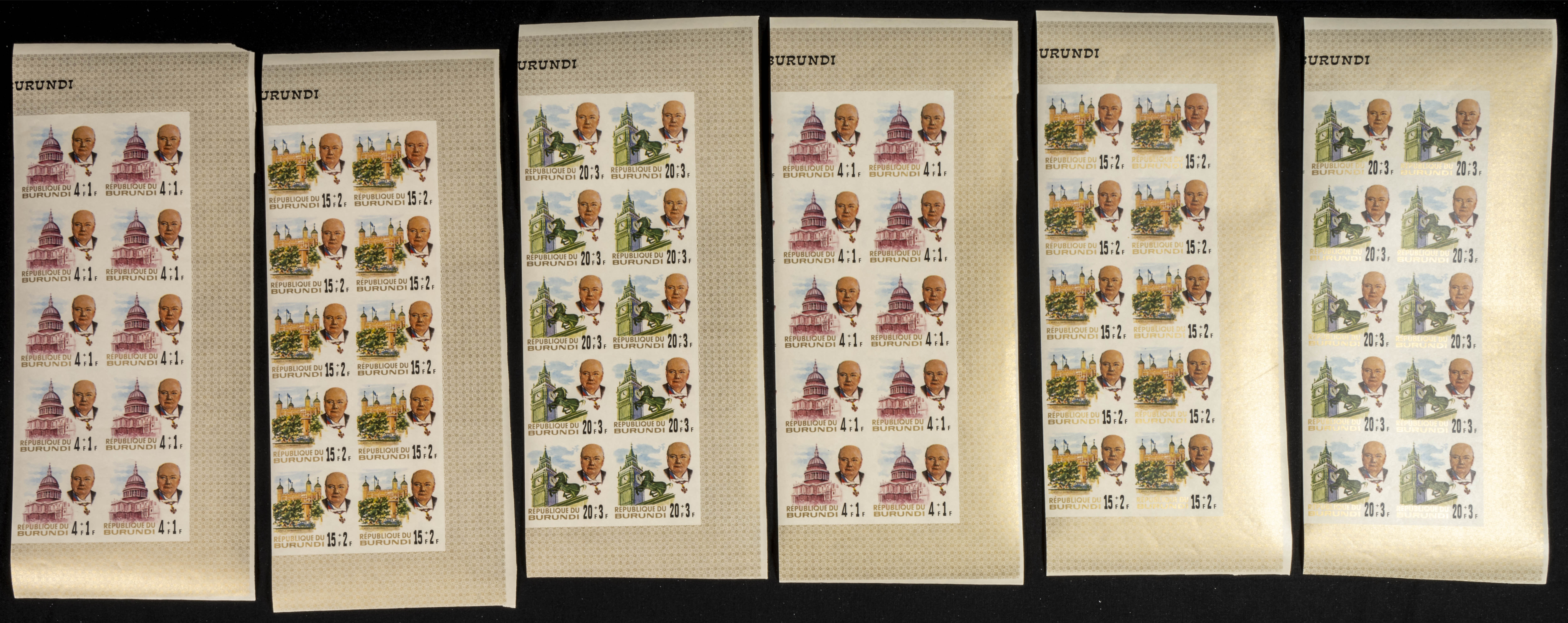 ★★Yvert 214/16. 1967. Churchill. Group of IMPERFORATED sets. TO EXAM.