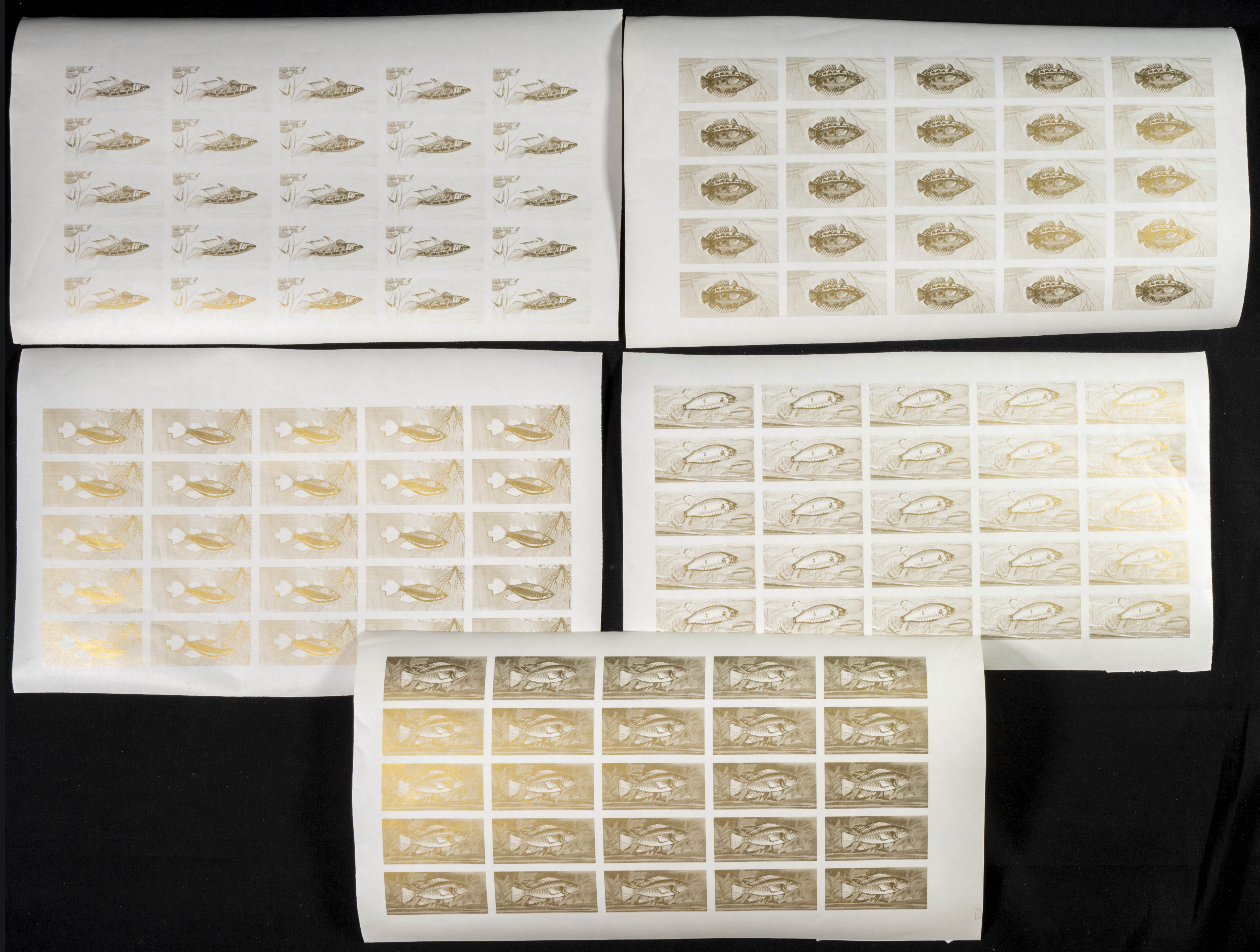 ★★Yvert A62/70. 1967. Fish. Group of progressive plate proofs of the set. TO EXAM.