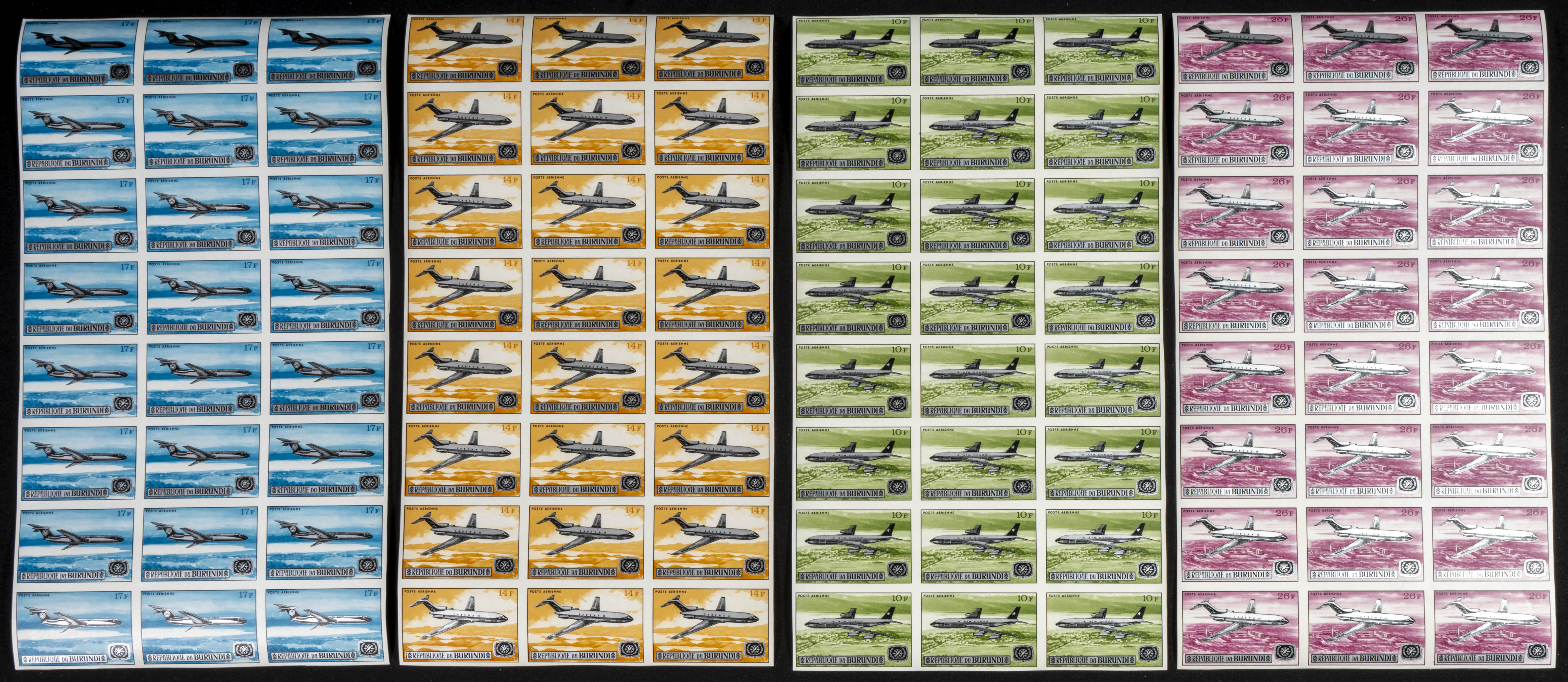 ★★Yvert A71/74. 1967. Int. year of tourism, planes. Group of IMPERFORATED sets. TO EXAM.