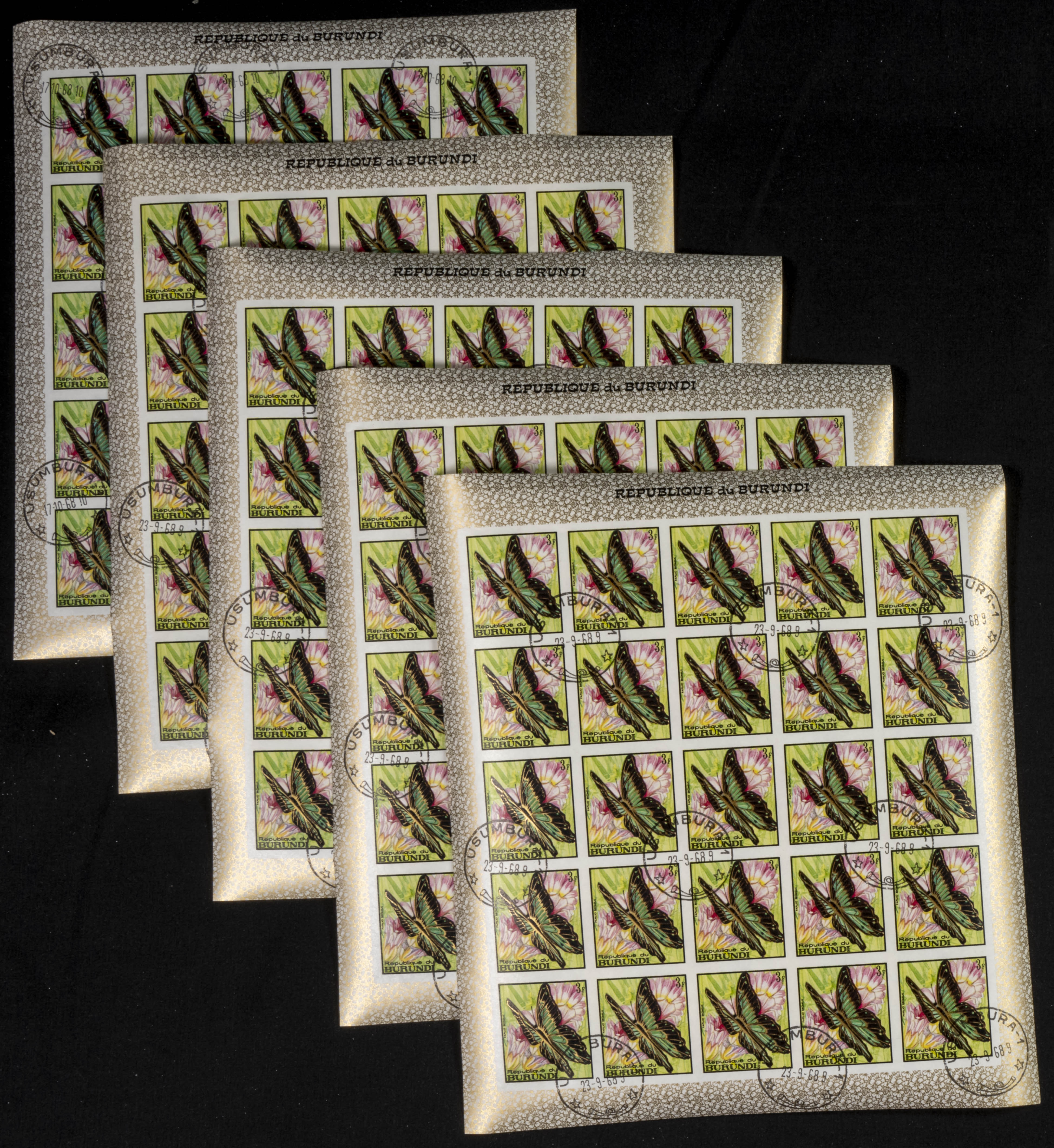 Yvert 247/89. 1968. Buterflies. Group of IMPERFORATED sets. TO EXAM.