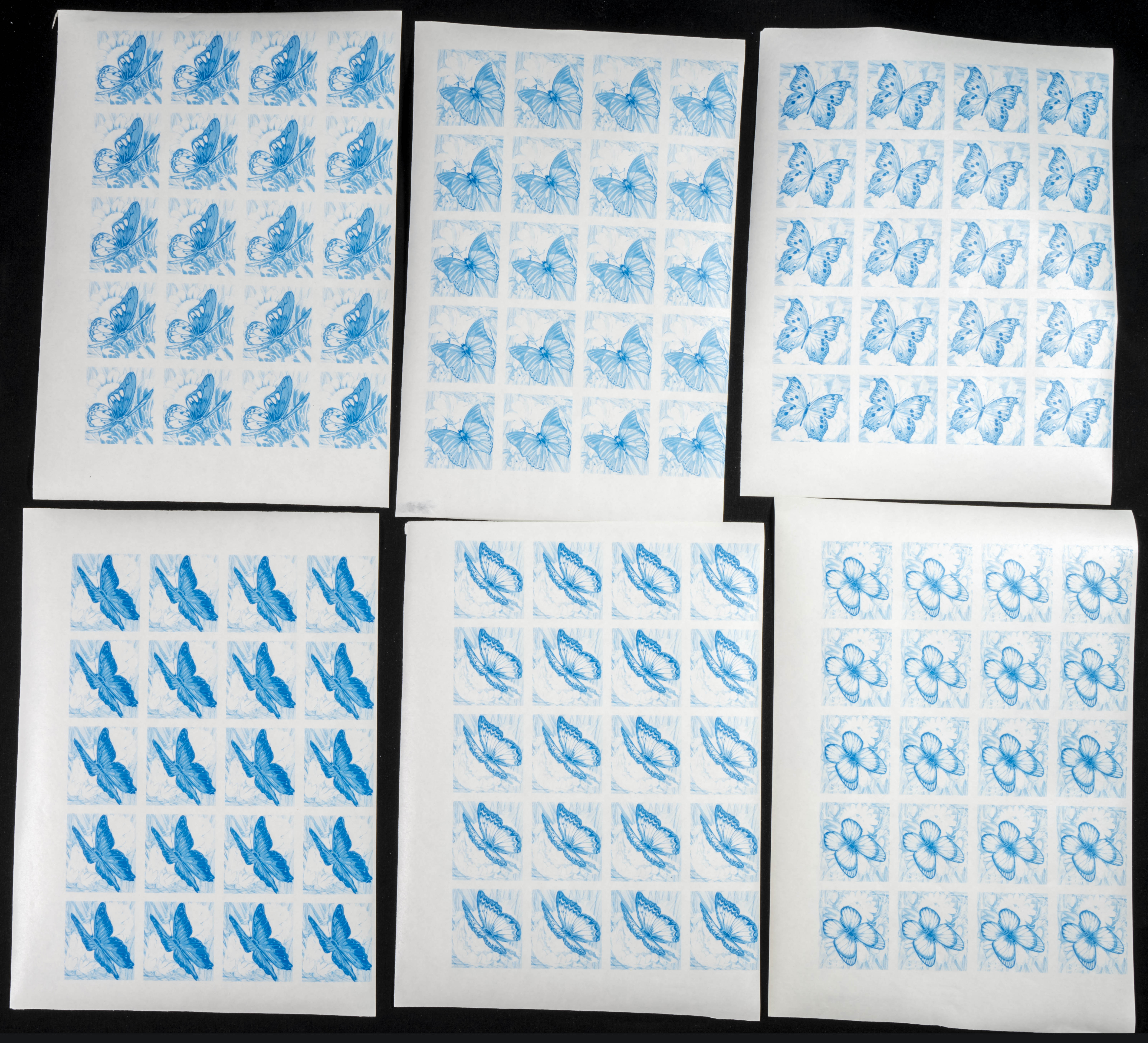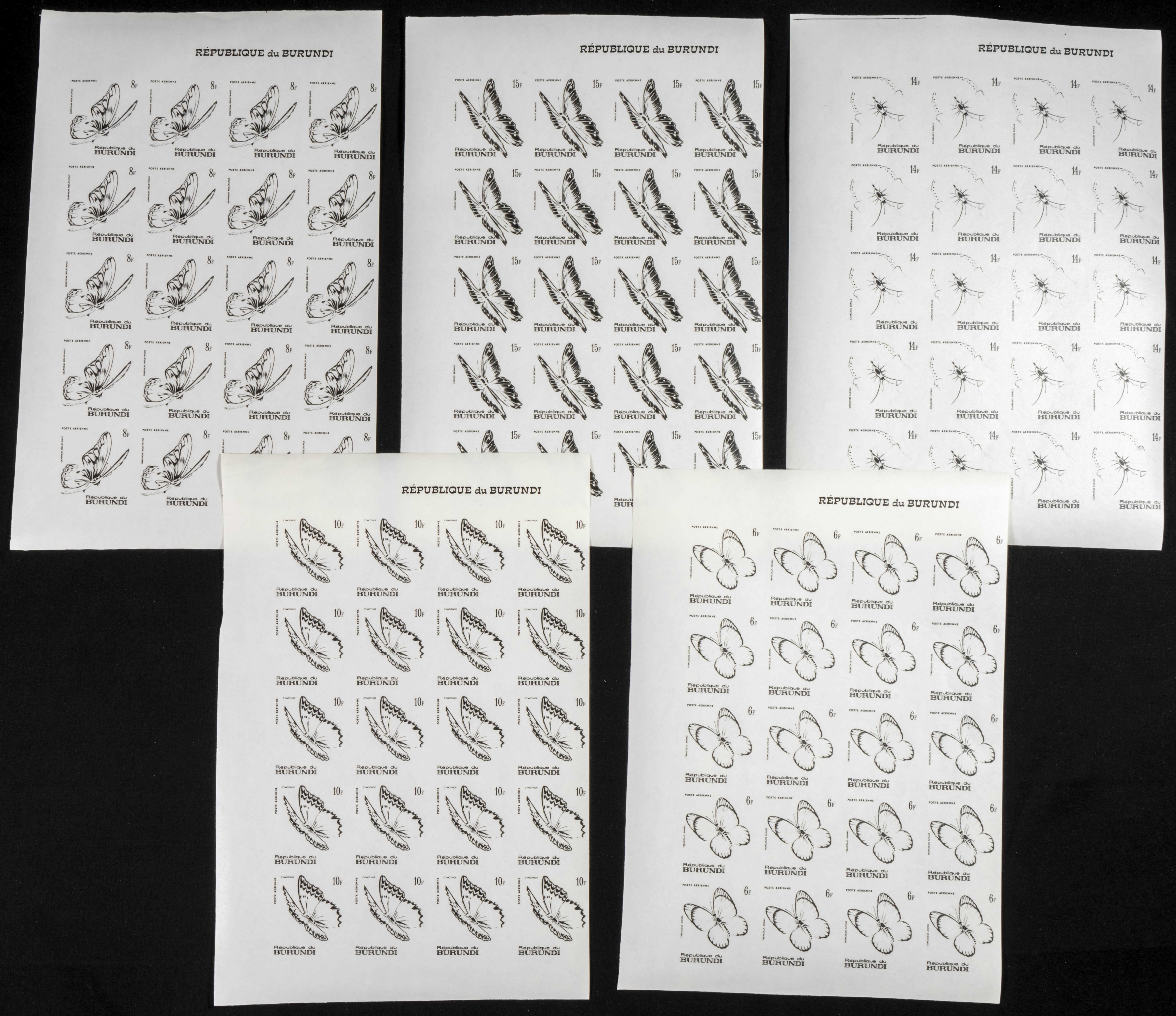 ★★Yvert A82/90. 1968. Butterflies. Group of progressive plate proofs of the set. TO EXAM.