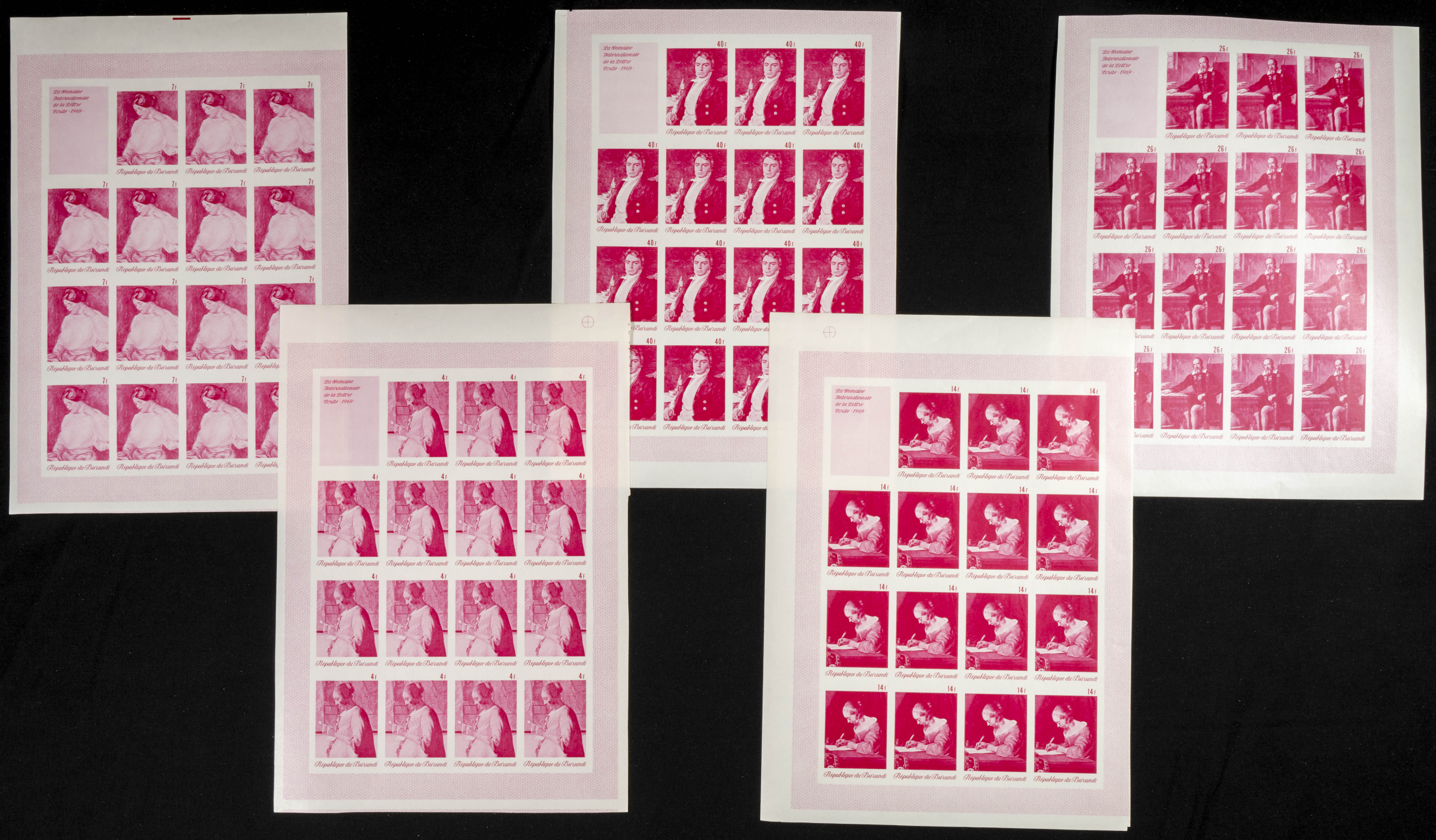 ★★Yvert 345/49. 1969. Letter writing week. Group of progressive plate proofs of the set. TO EXAM.