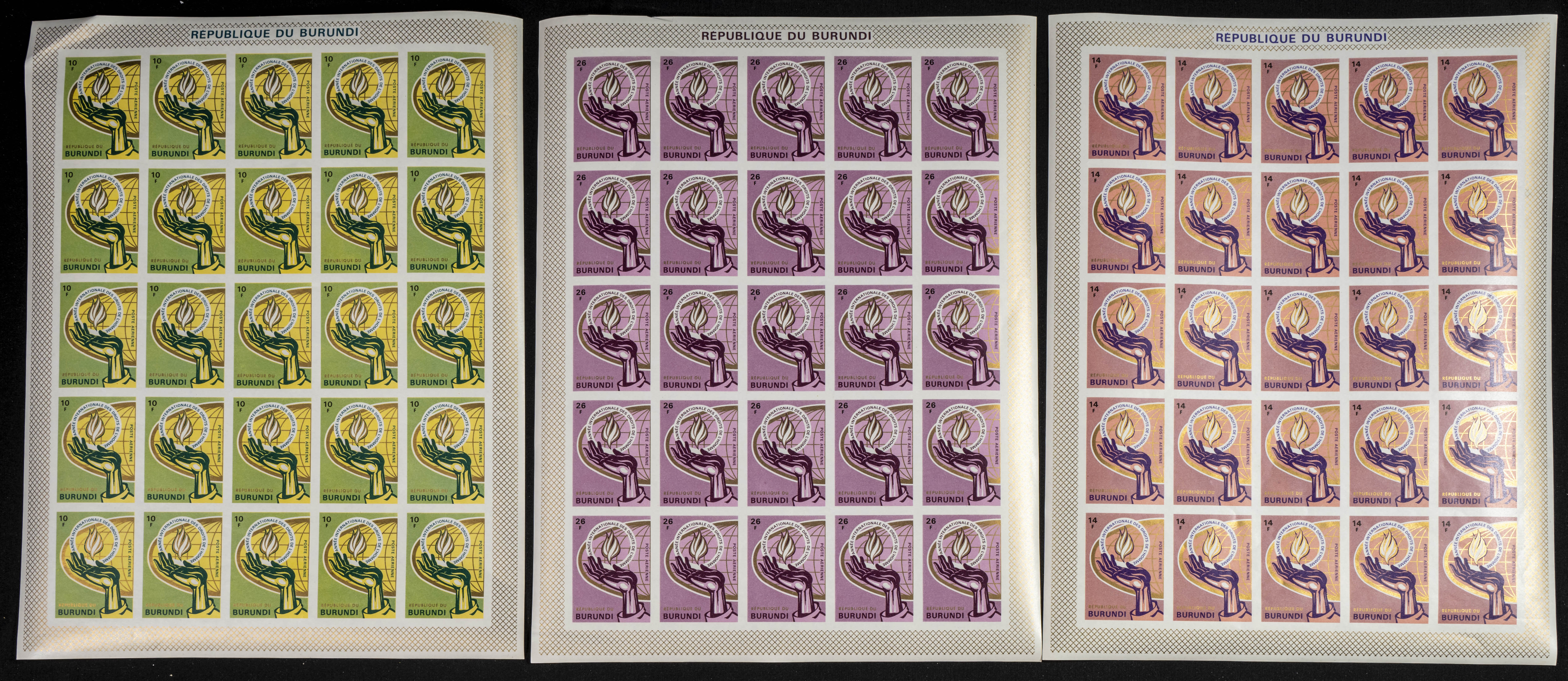 ★★Yvert A104/06. 1969. Human rights. Group of IMPERFORATED sets. TO EXAM.