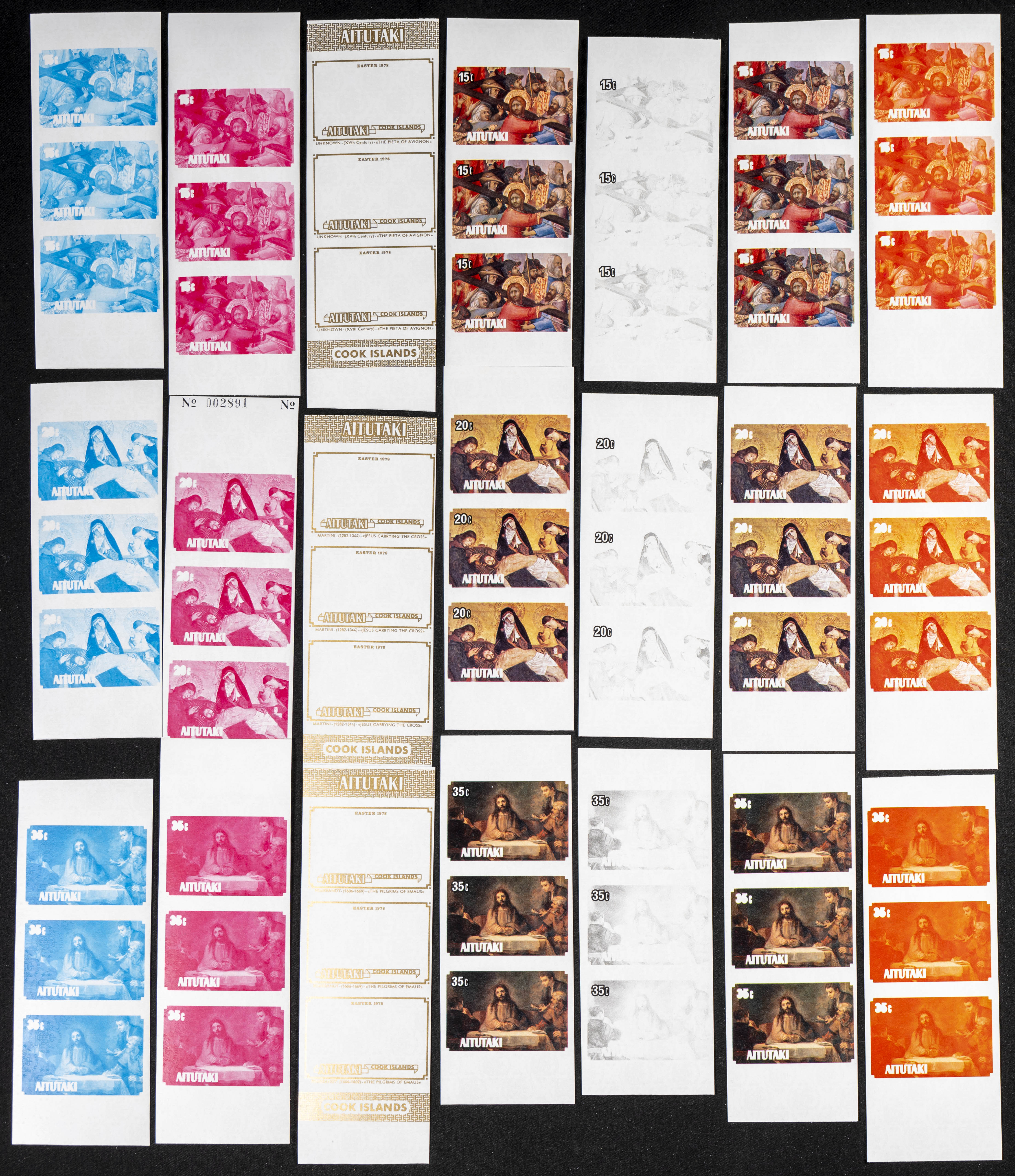 ★★Yvert 224/26. 1978. Easter. Group of progressive plate proofs of the set. TO EXAM.