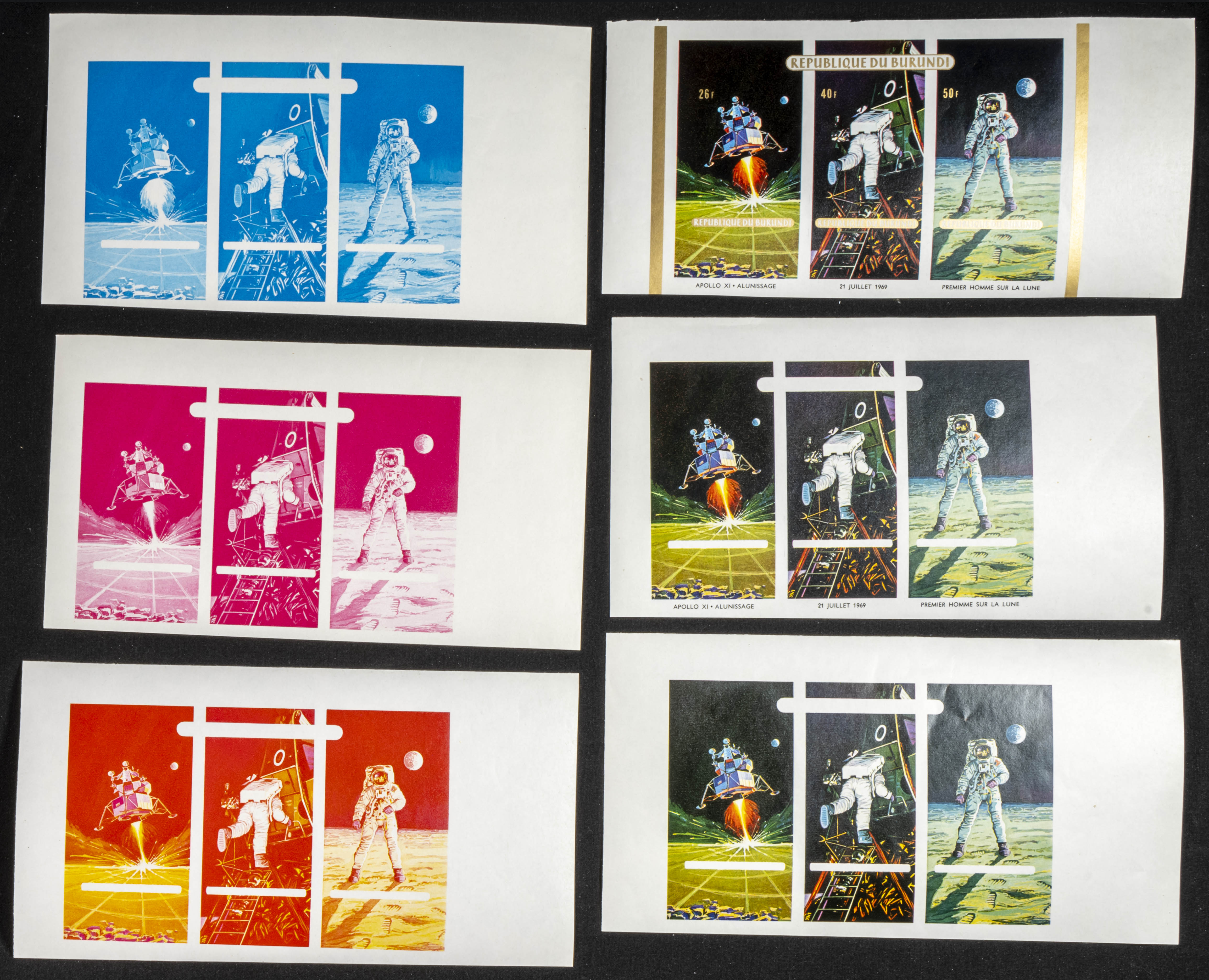 ★★Yvert B33. 1969. Apollo XI. Group of progressive plate proofs of the set. TO EXAM.