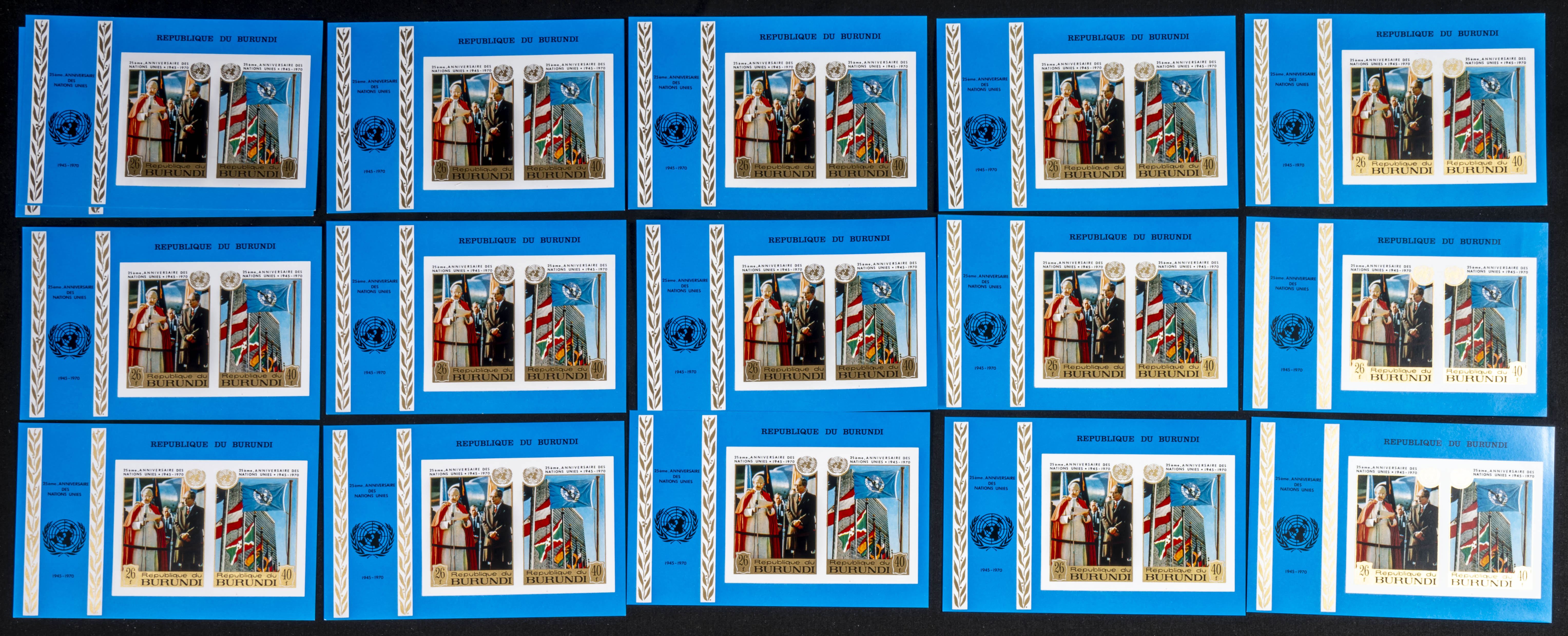 ★★Yvert B40. 1970. 25 years U.N.O.. Group of IMPERFORATED sets. TO EXAM.