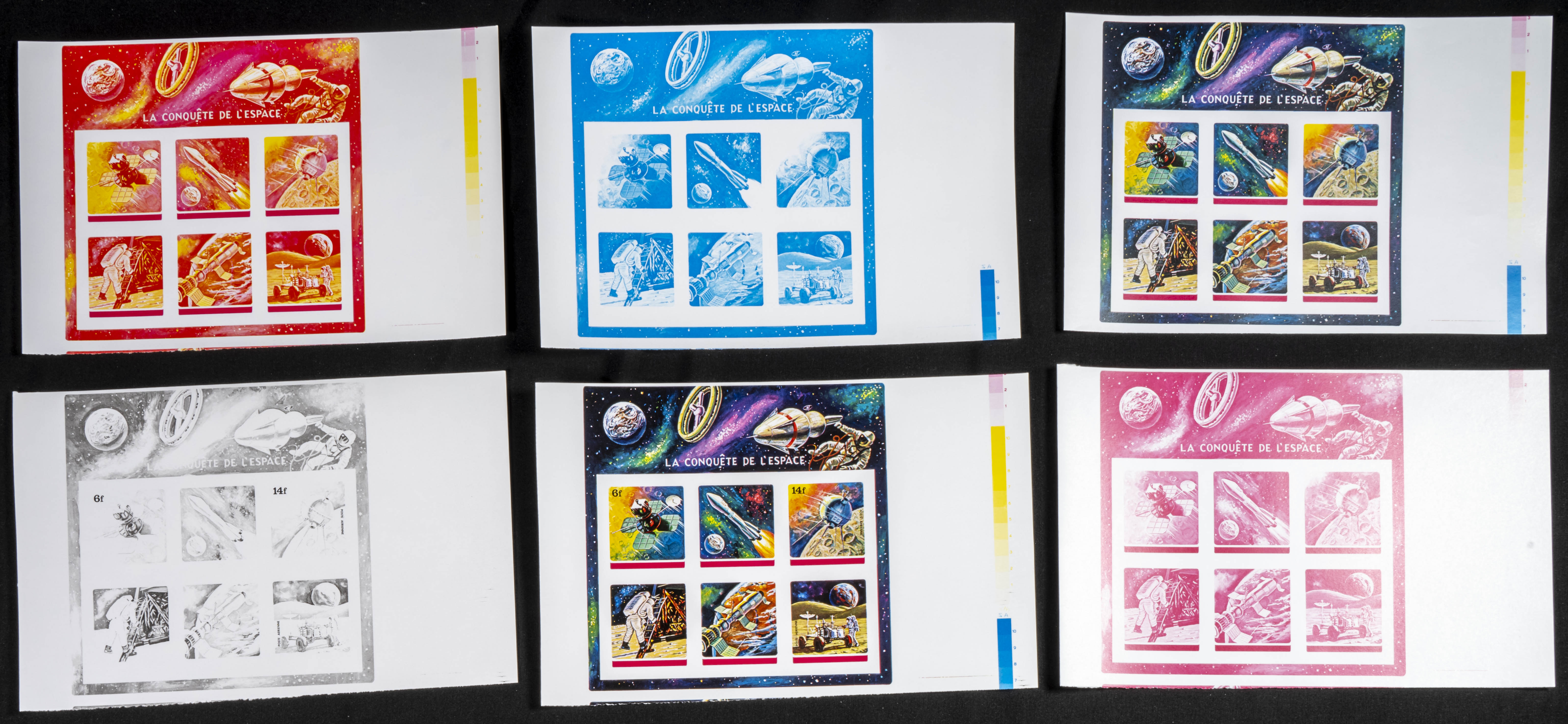 ★★Yvert B55. 1972. Space exploration. Group of progressive plate proofs of the set. TO EXAM.