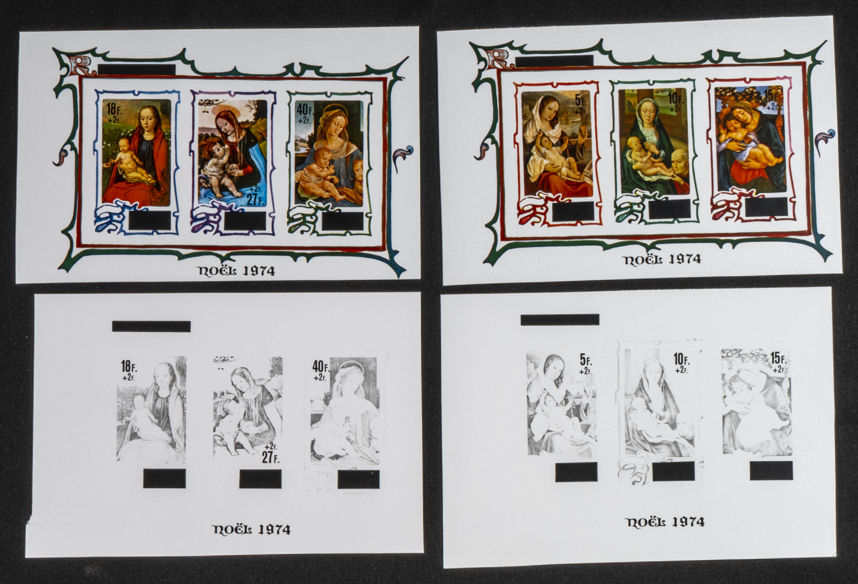 ★★Yvert B82/83. 1974. Christmas. Group of progressive plate proofs of the set. TO EXAM.