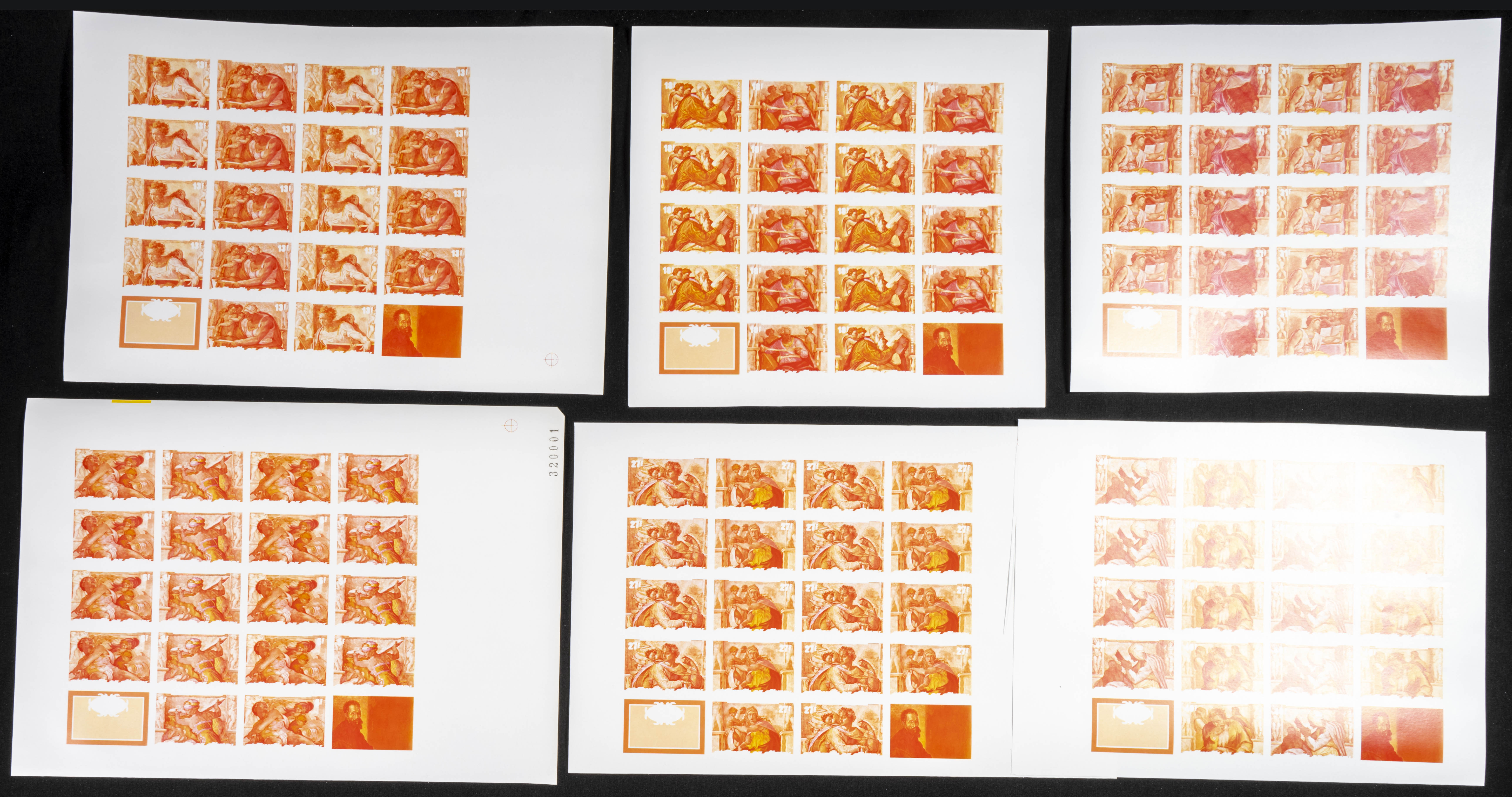 ★★Yvert 669/74+A. 1975. Christmas. Group of progressive plate proofs of the set. TO EXAM.