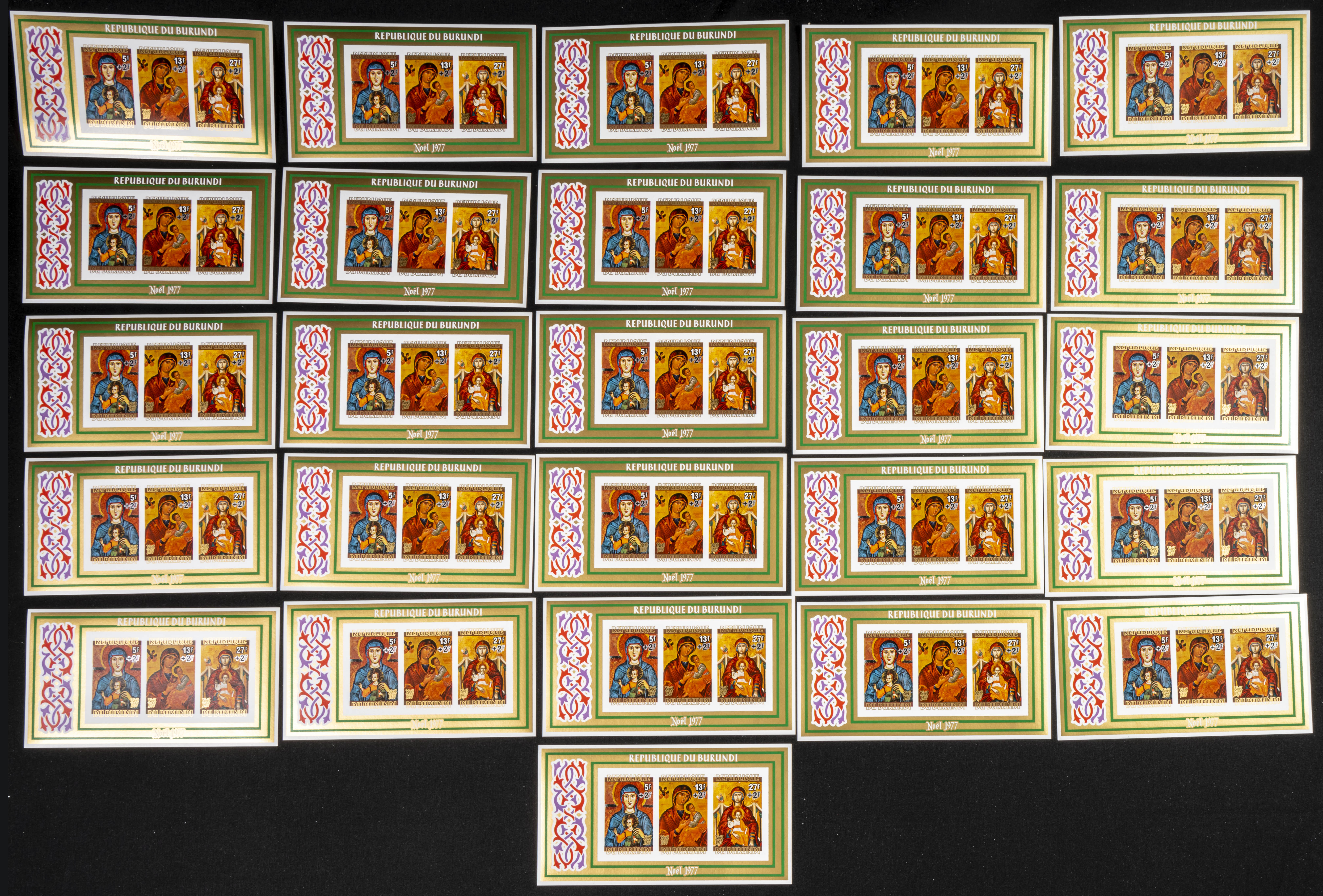 ★★Yvert B103/04. 1977. Christmas. Group of IMPERFORATED sets. TO EXAM.