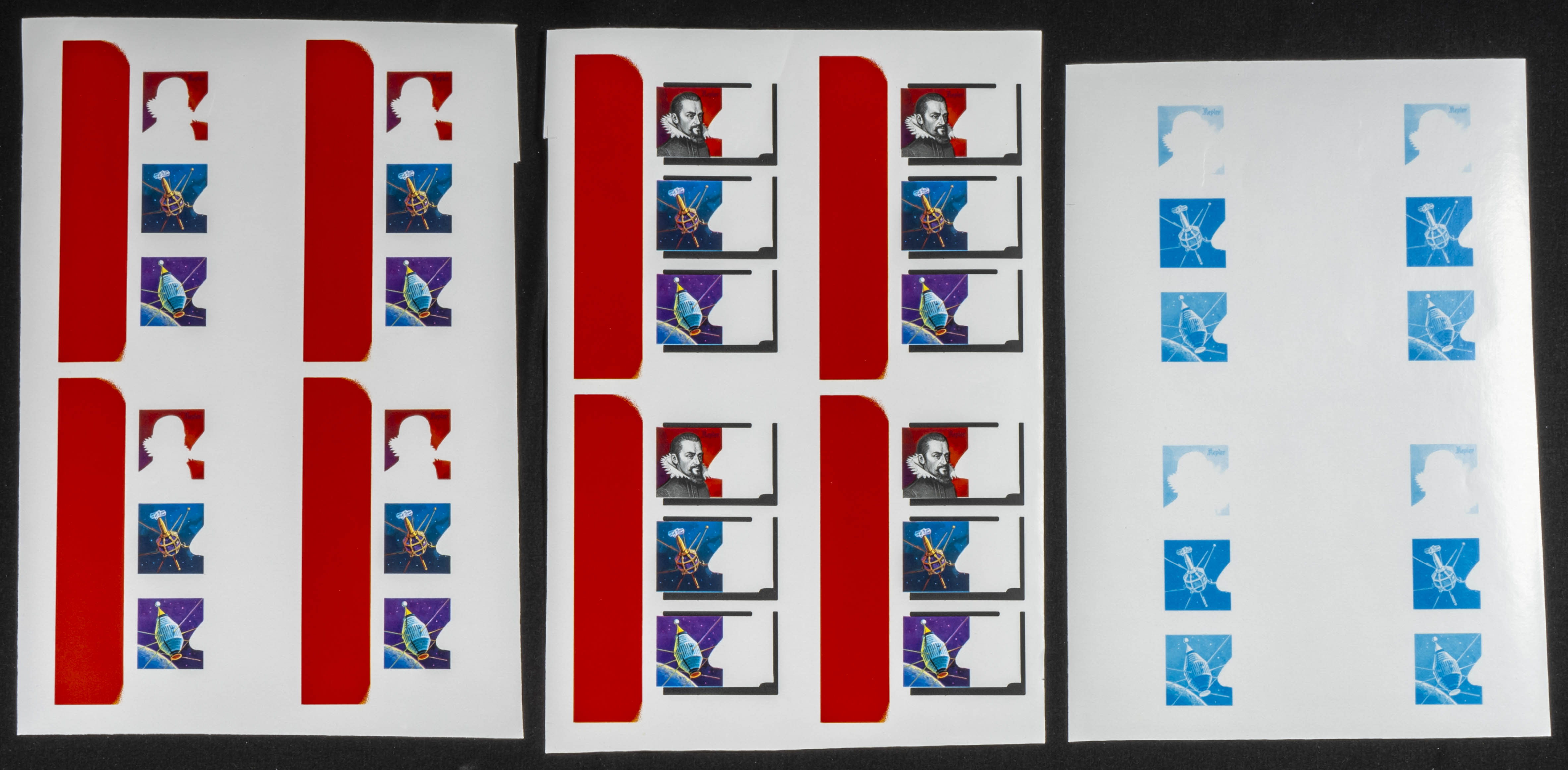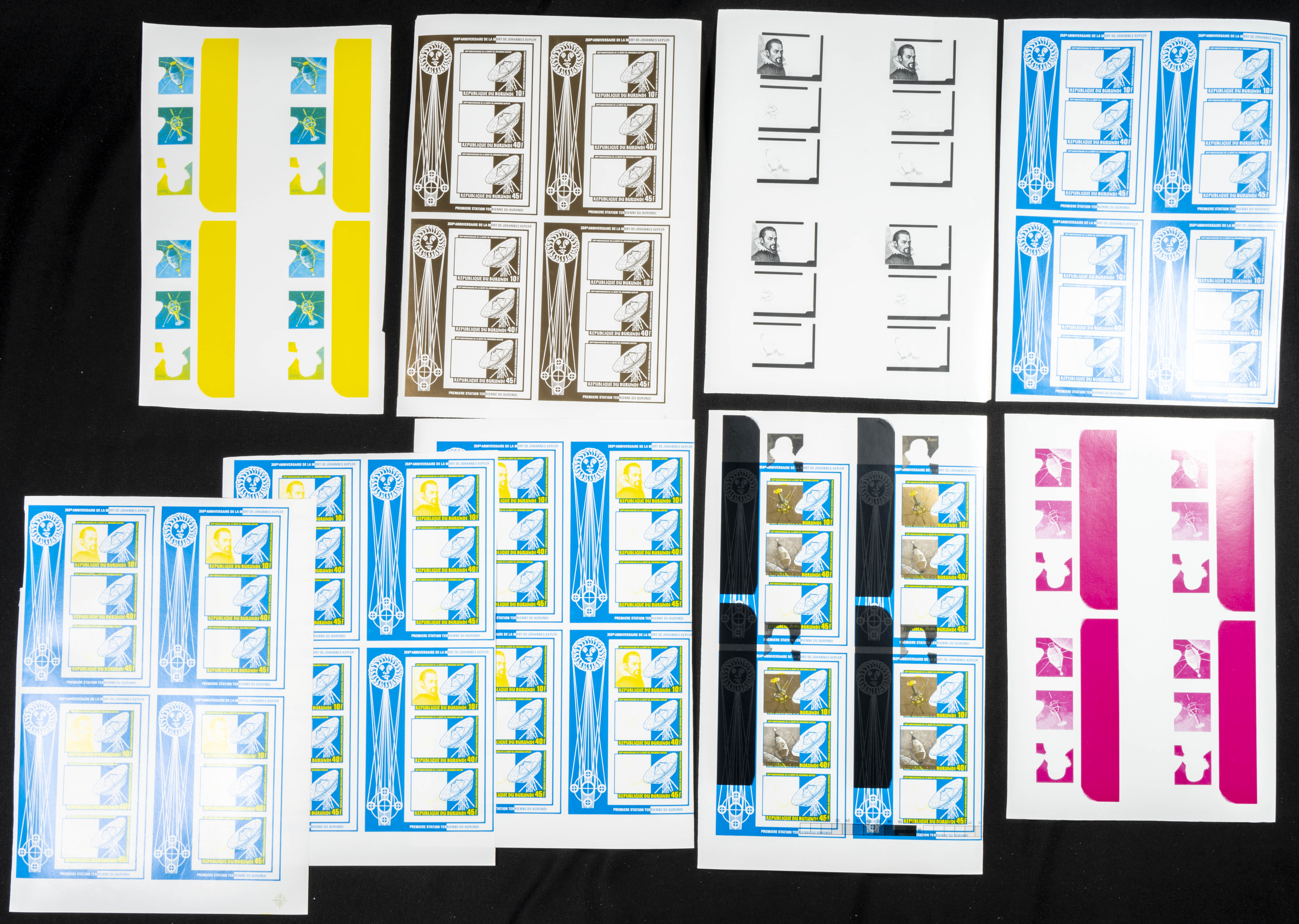★★Yvert B114. 1981. J. Kepler. Group of progressive plate proofs of the set. TO EXAM.