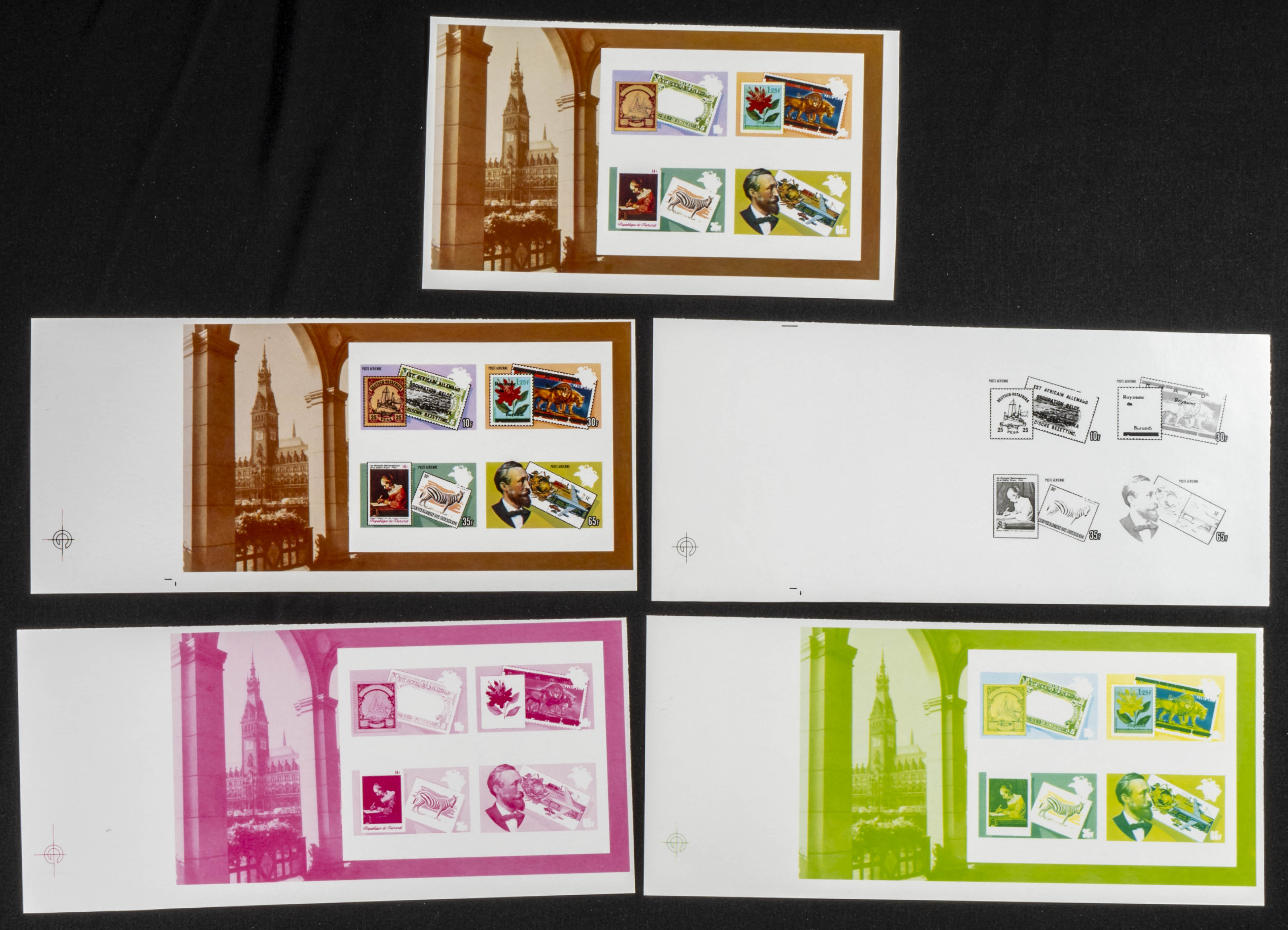★★Yvert . 1984. U.P.U. congress-Hamburg æ84. Group of progressive plate proofs of the set. (Michel: B120). TO EXAM.