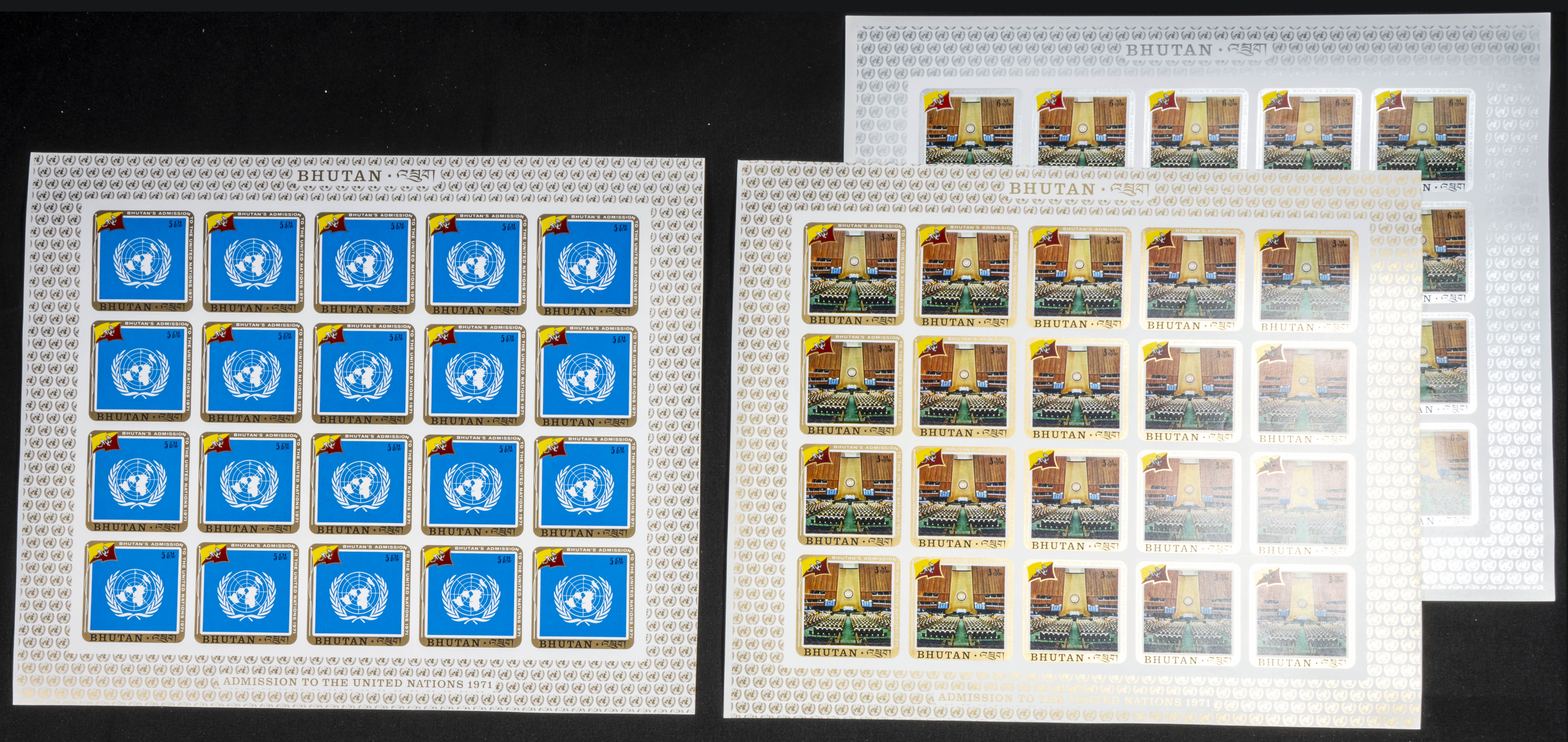 ★★Yvert 314/7+A. 1971. U.N.O. membership. Group of IMPERFORATED sets. TO EXAM.