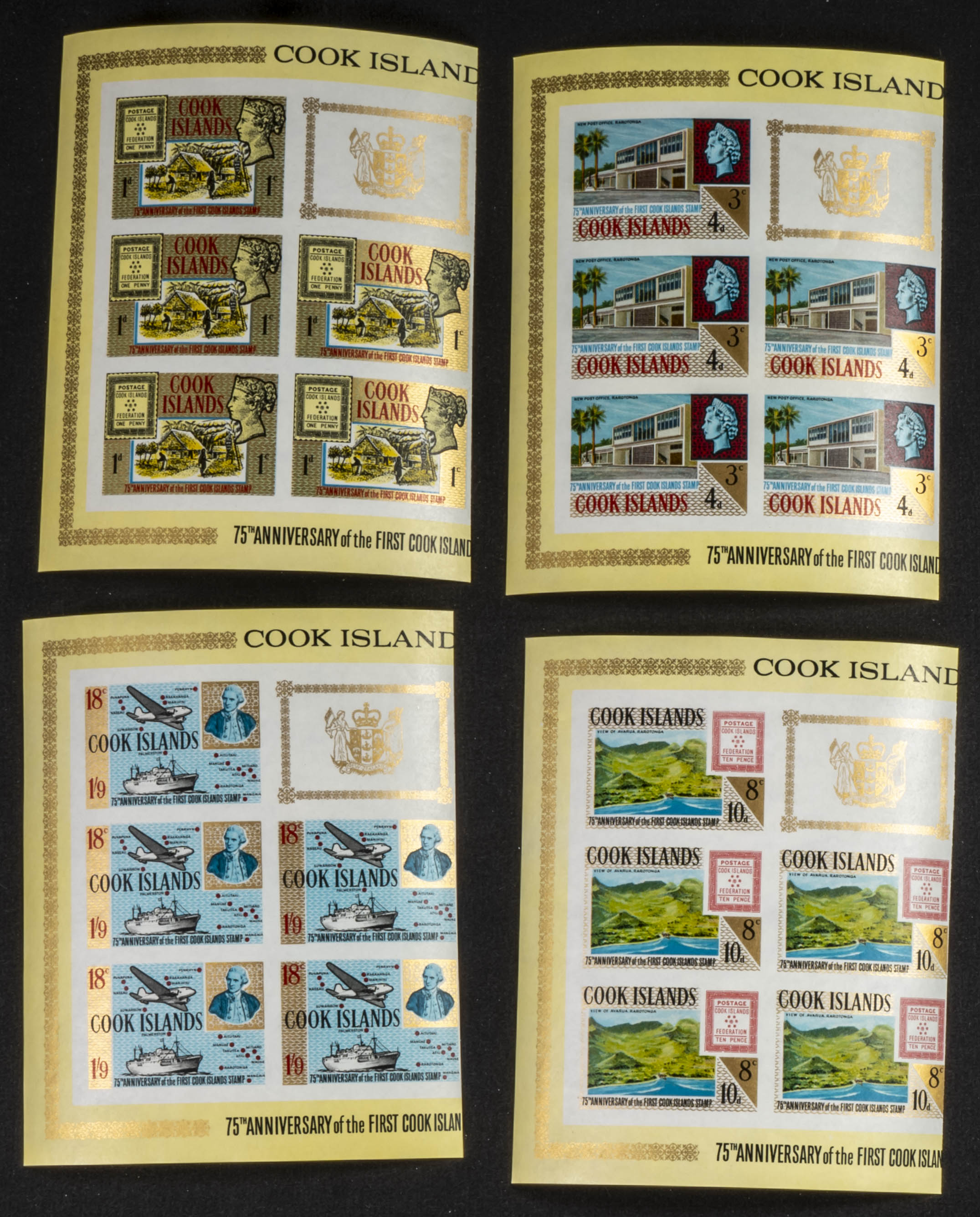 ★★Yvert 156/59. 1967. 75 years stamps Cook Islands. Group of IMPERFORATED sets. TO EXAM.