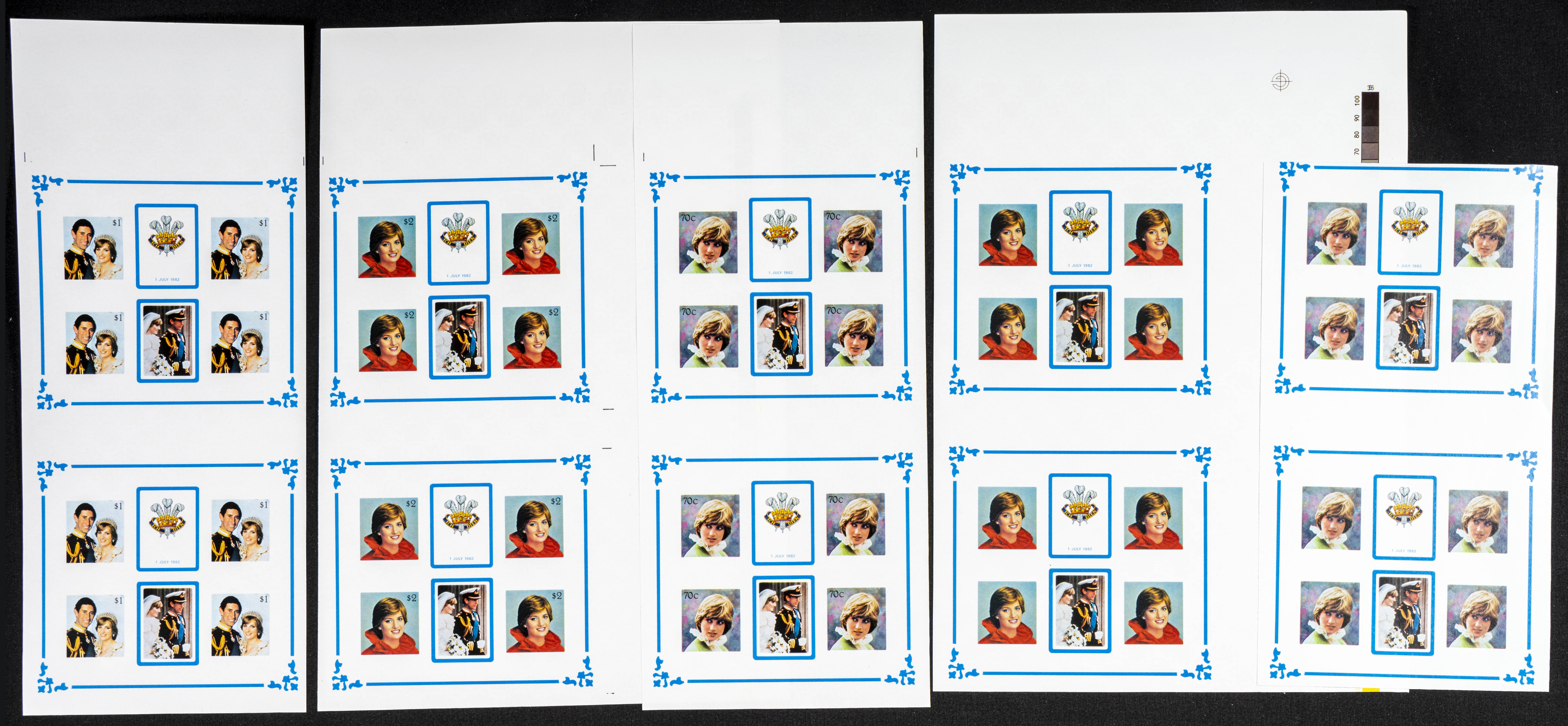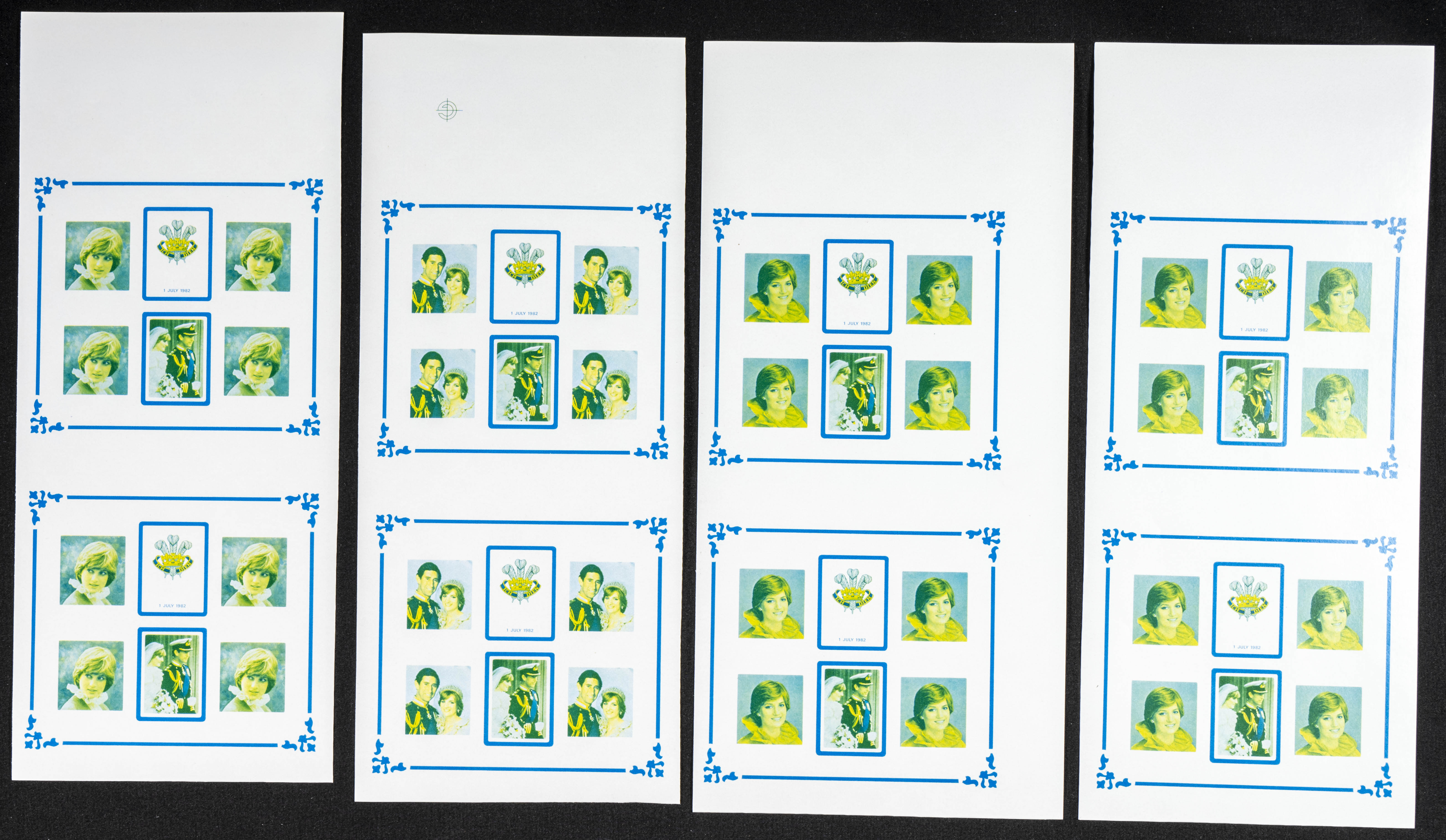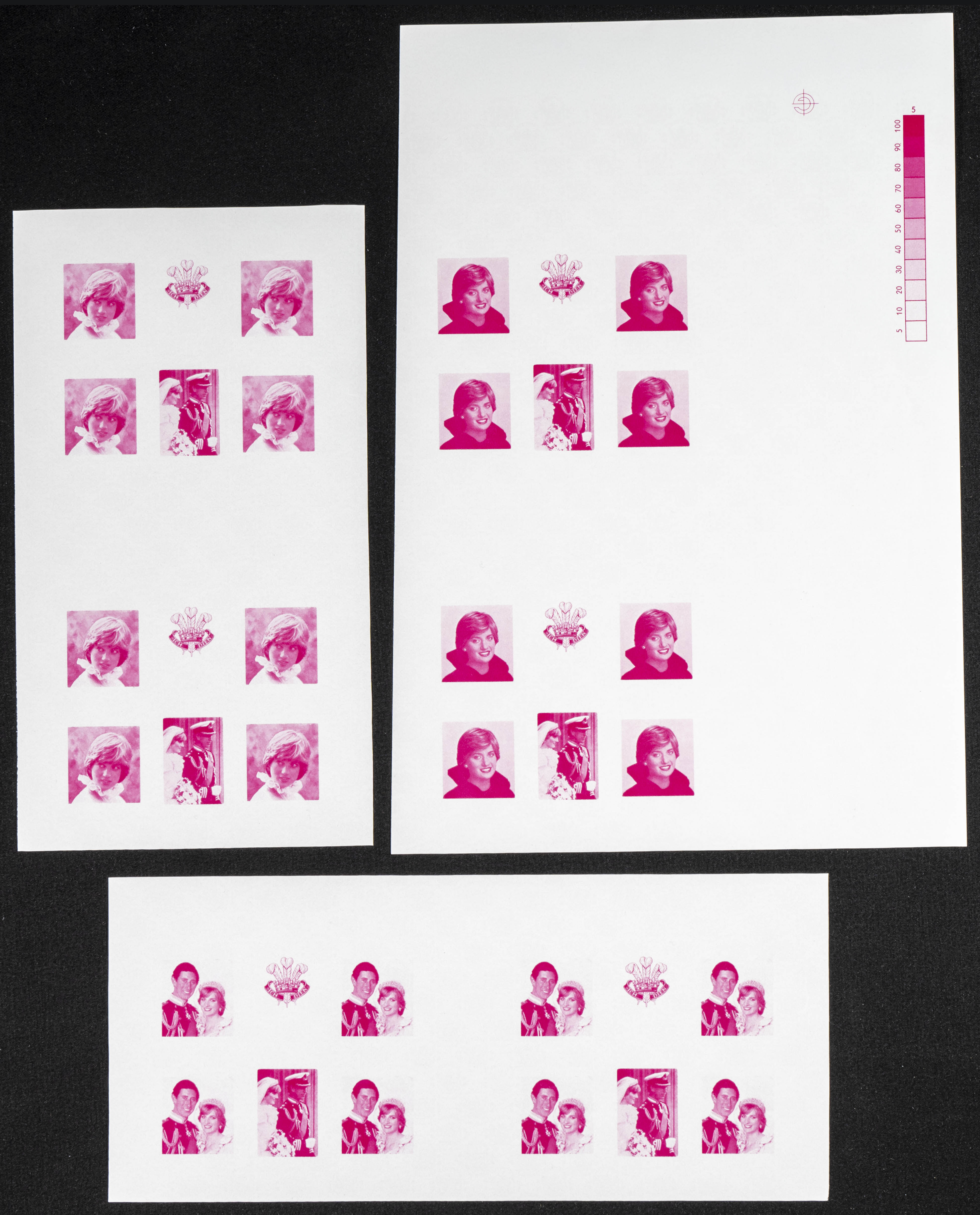 ★★Yvert 328/30. 1982. Princess Diana. Group of progressive plate proofs of the set. TO EXAM.
