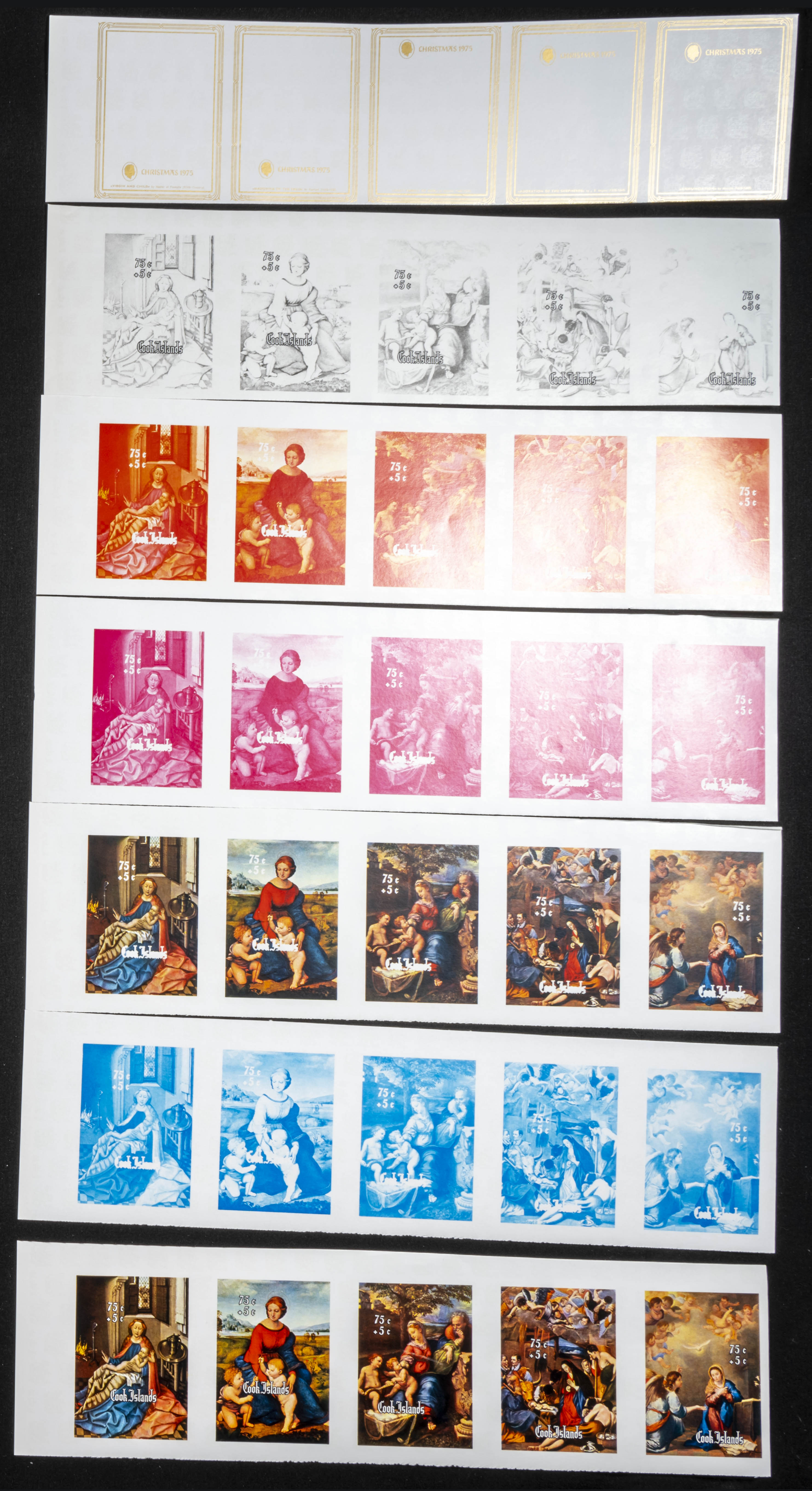 ★★Yvert B48/52. 1975. Christmas. Group of progressive plate proofs of the set. TO EXAM.