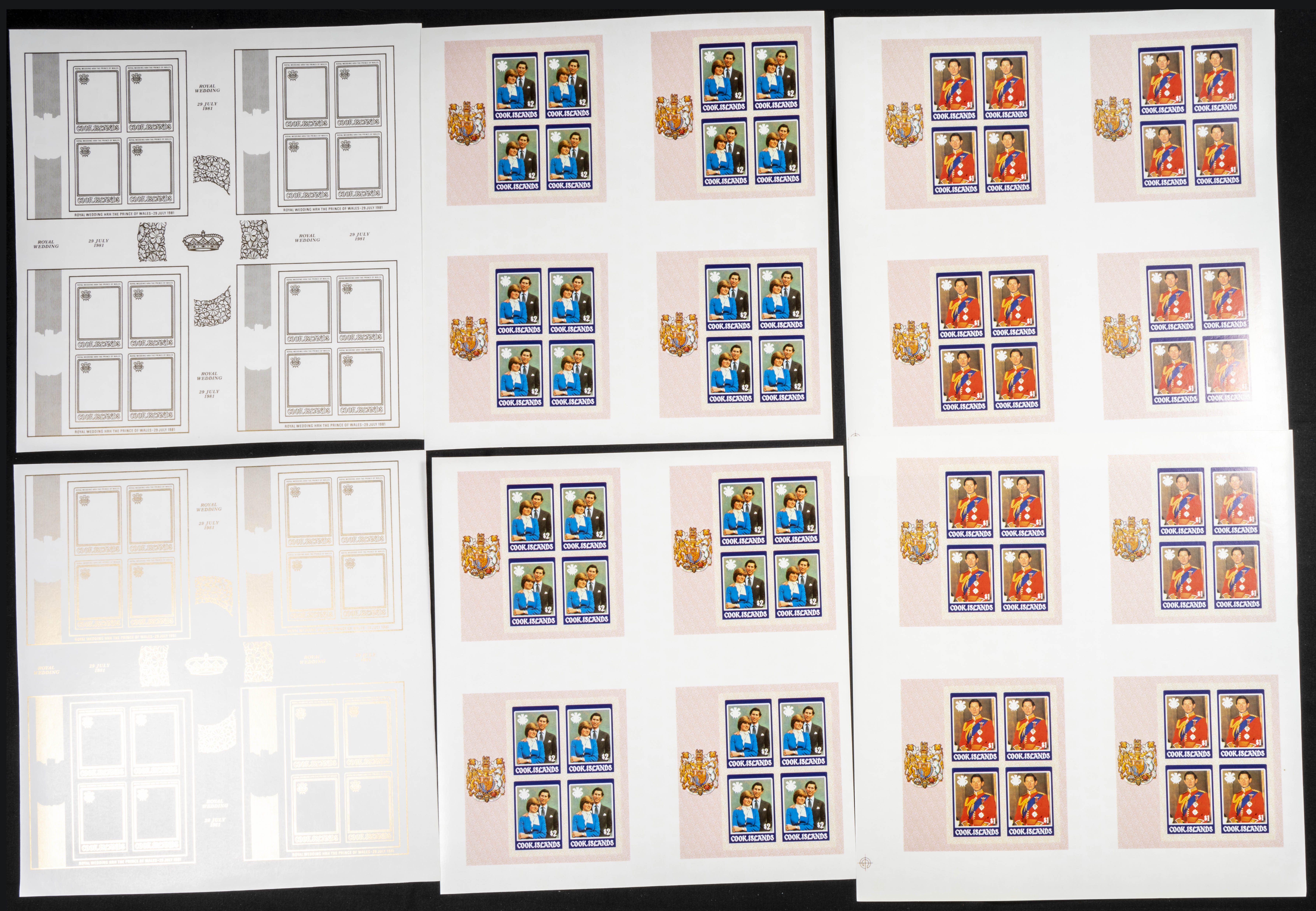 ★★Yvert 645/46. 1981. Charles & Diana wedding. Group of progressive plate proofs of the set. TO EXAM.