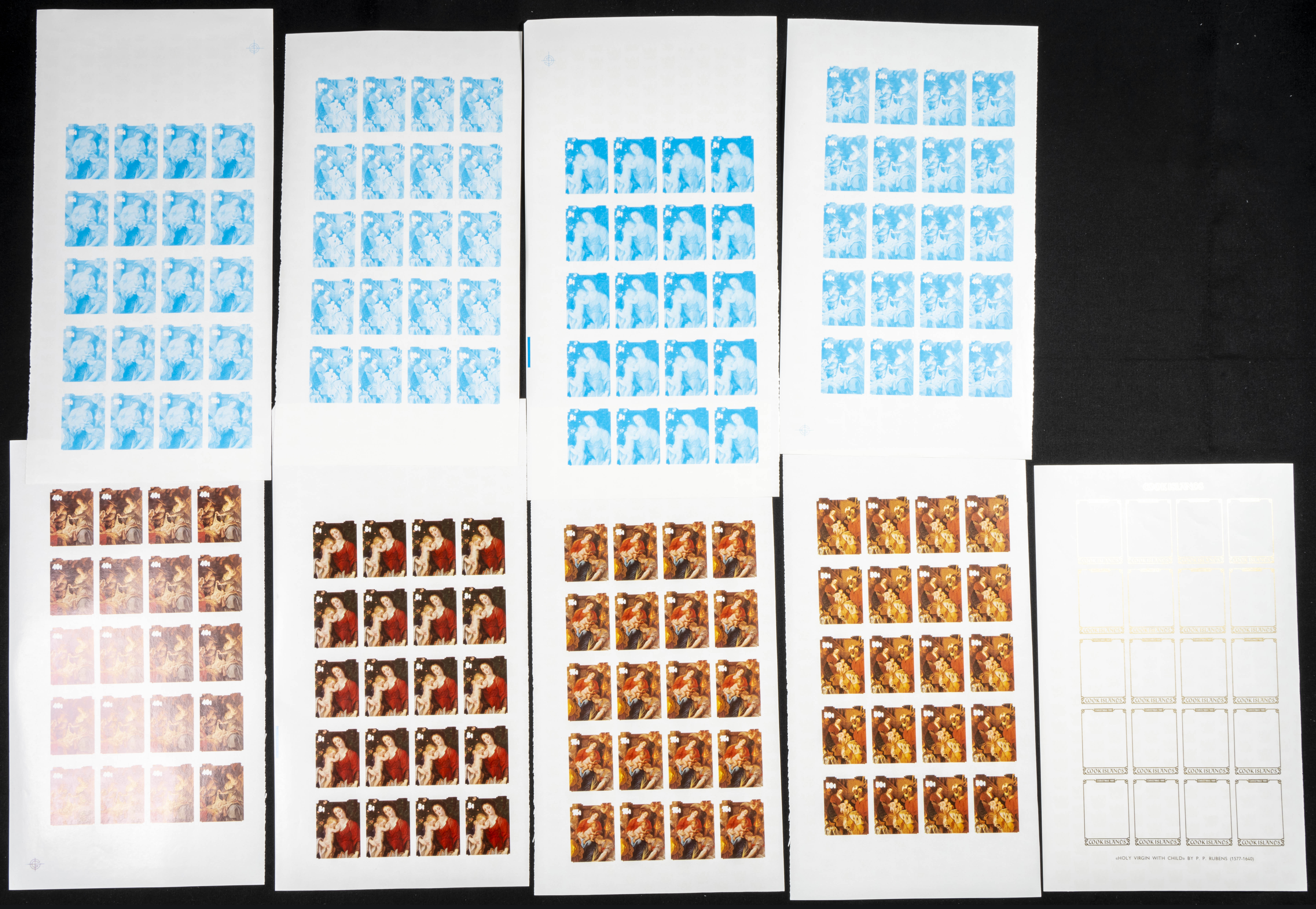 ★★Yvert 661/64. 1981. Christmas, Rubens. Group of progressive plate proofs of the set. TO EXAM.