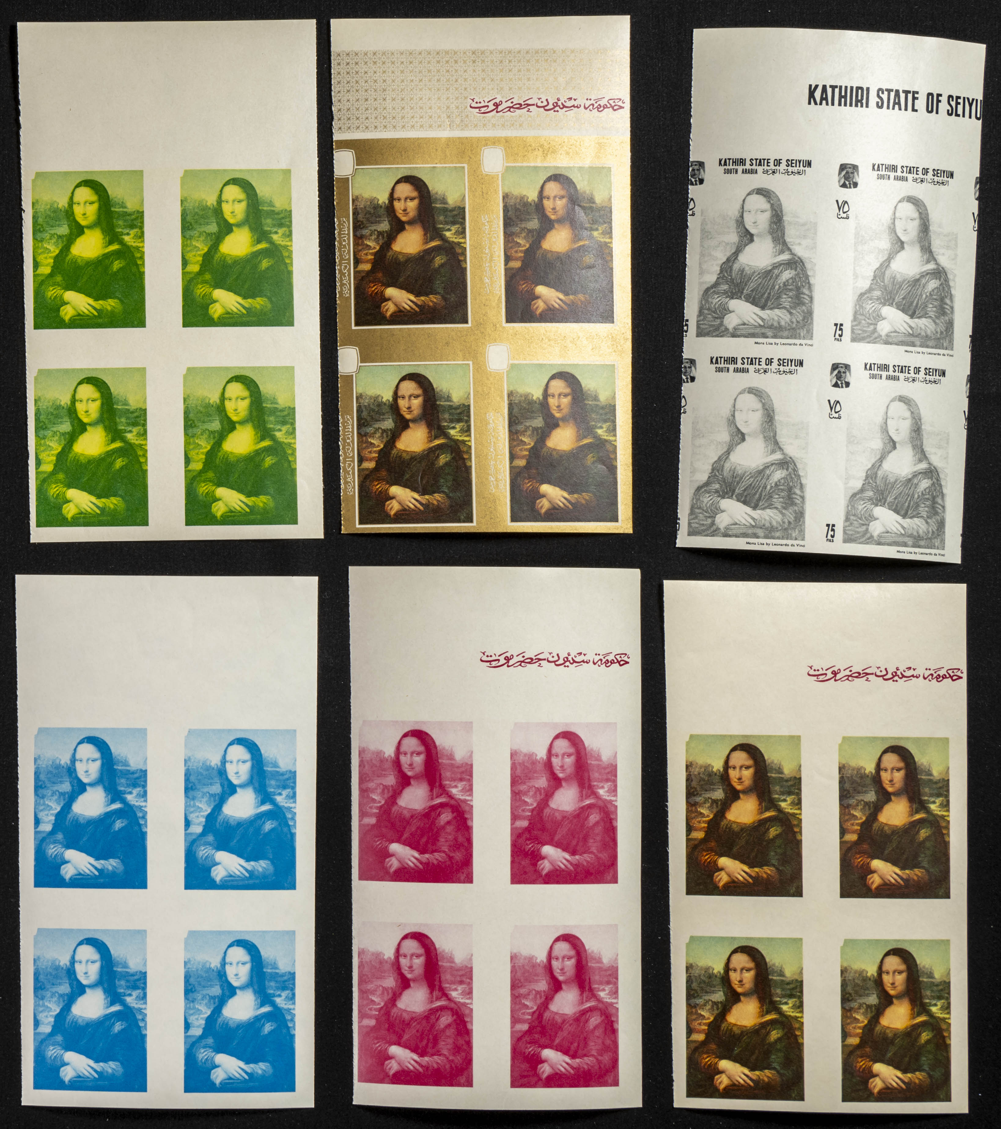 ★★1967. Mona Lisa. Group of progressive plate proofs of the set. (Michel: 122). TO EXAM.