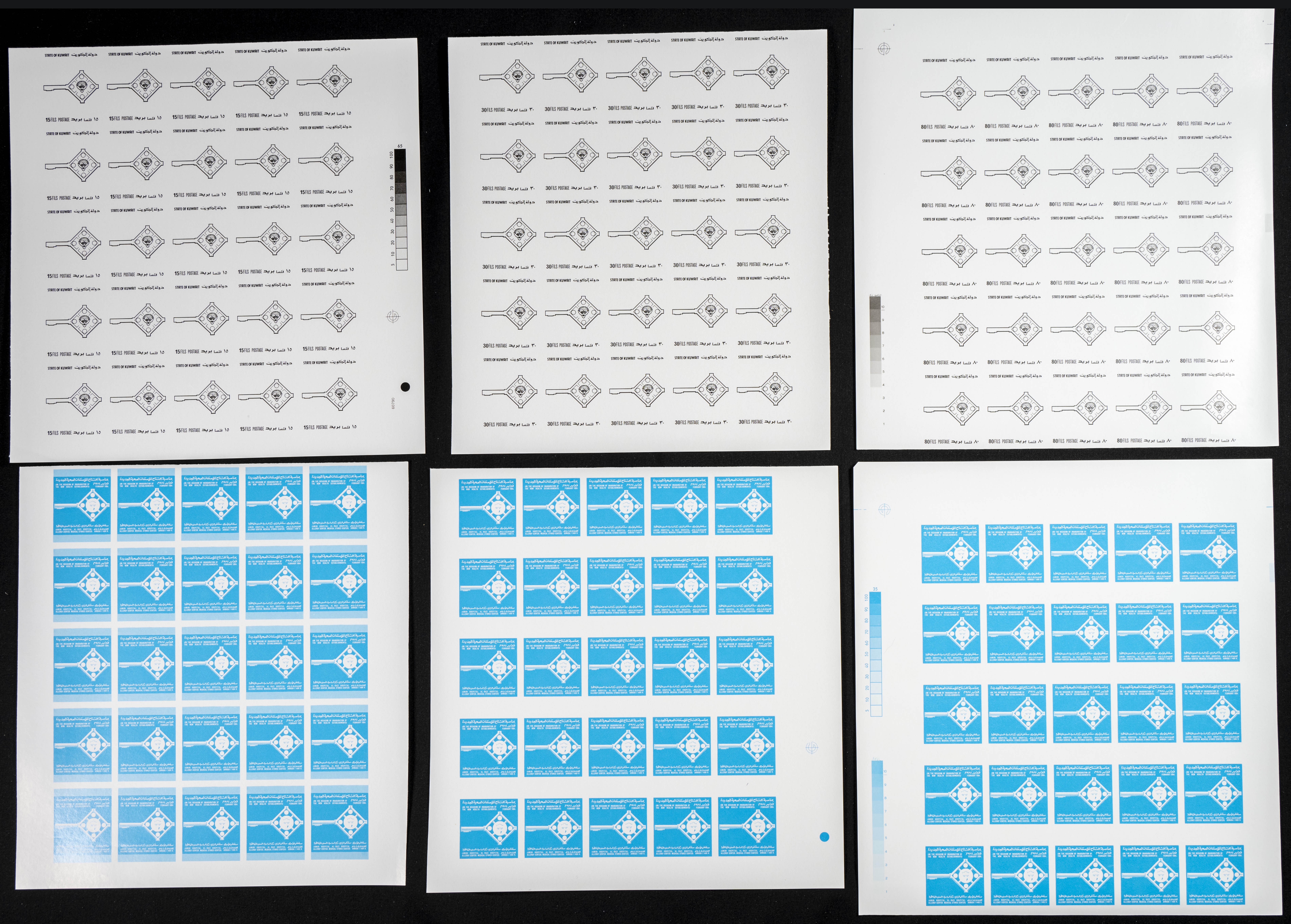 ★★Yvert 1002/04. 1984. Inauguration of Amiri and Al-Razi Hospitals. Group of progressive plate proofs of the set. TO EXAM.