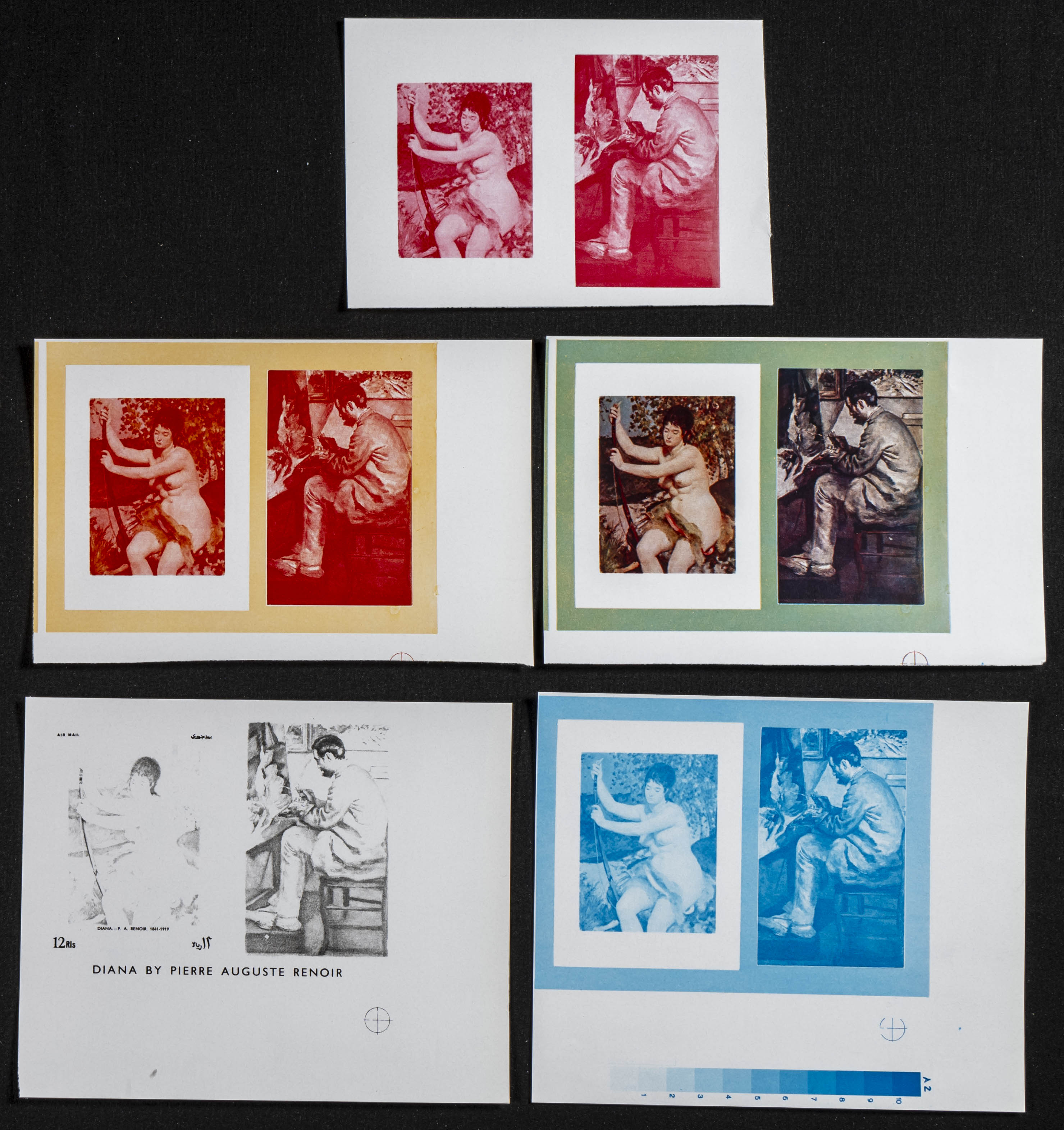 ★★1970. Renoir paintings. Group of progressive plate proofs of the set. (Michel: B60). TO EXAM.