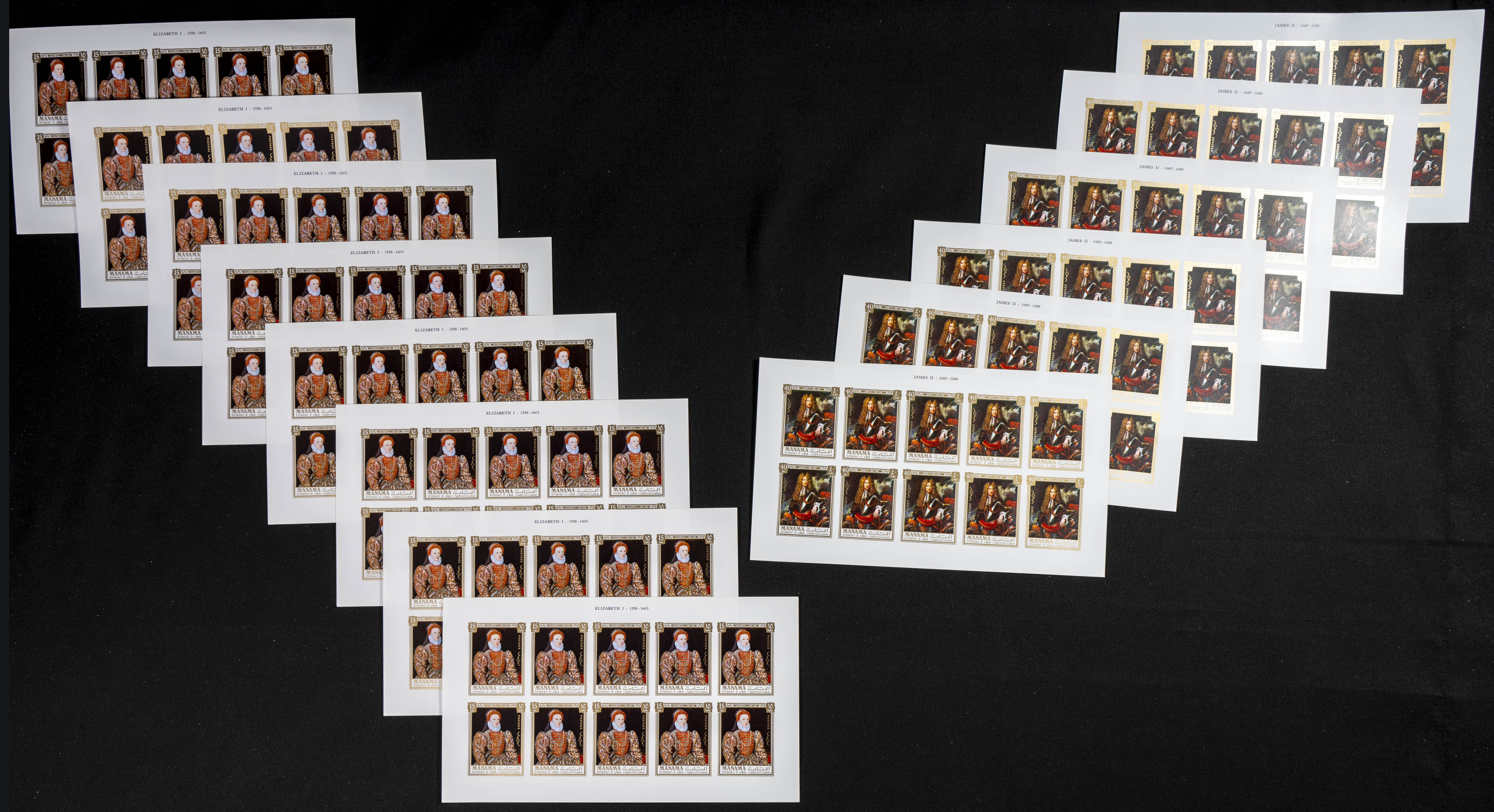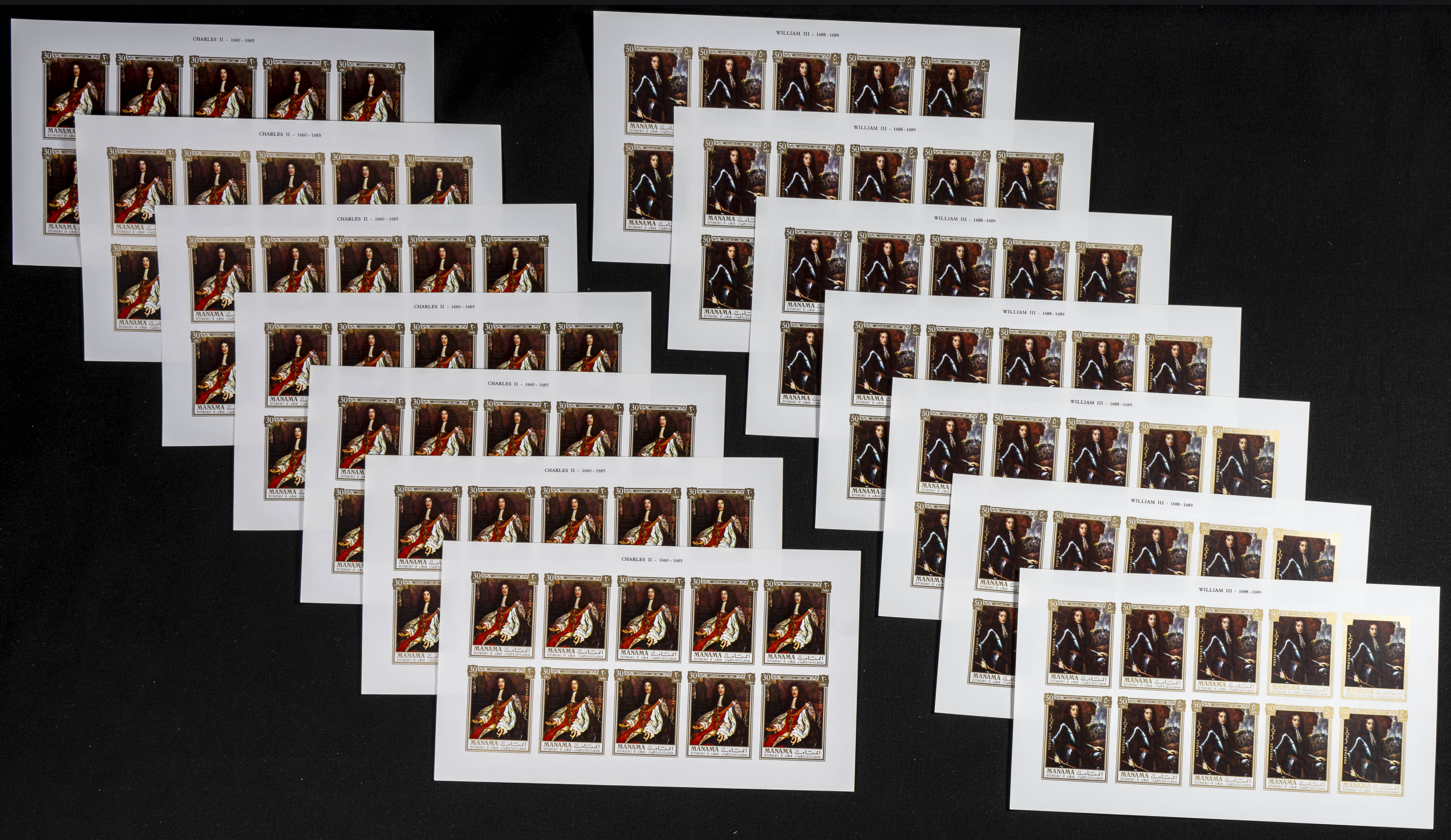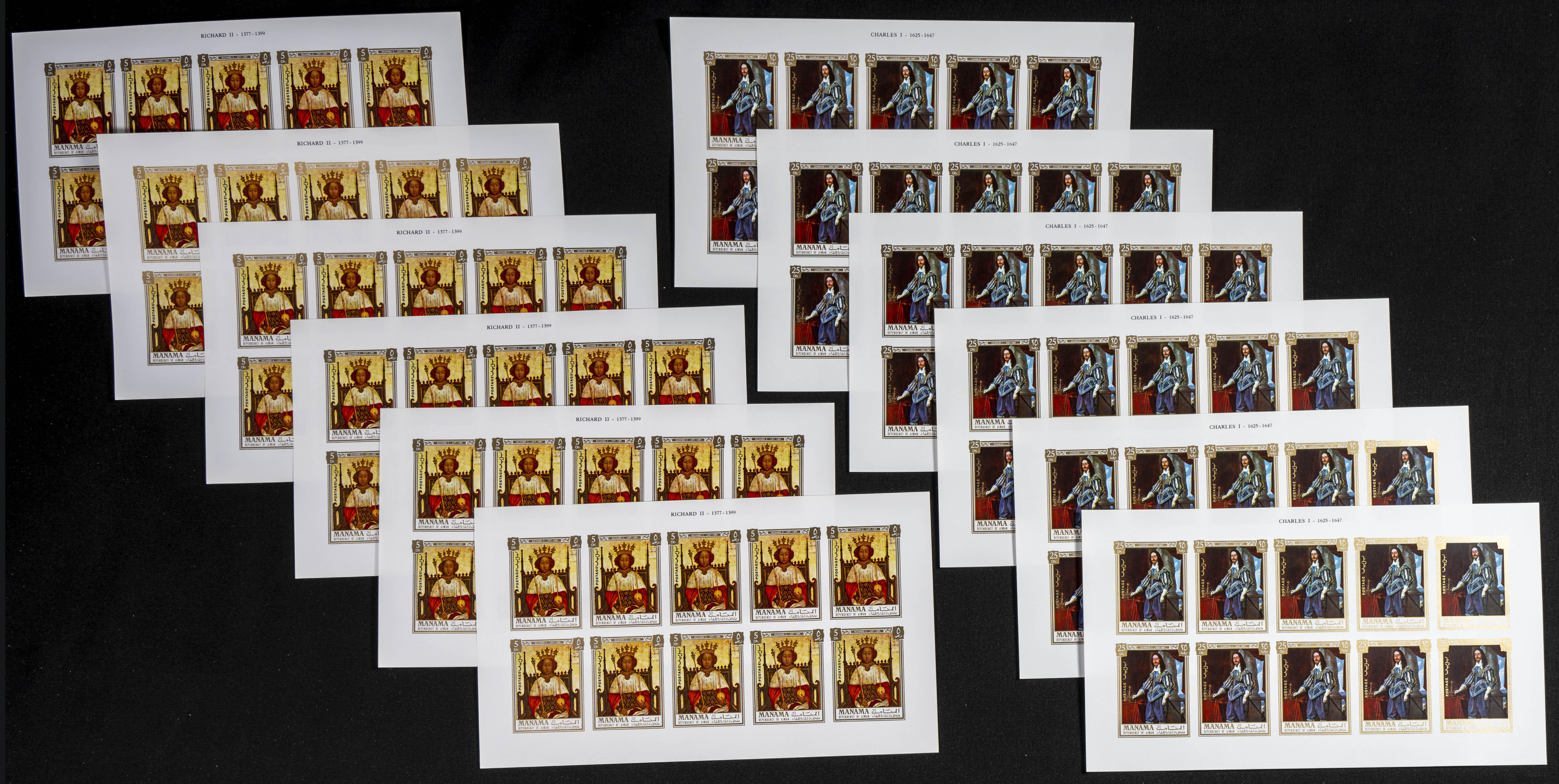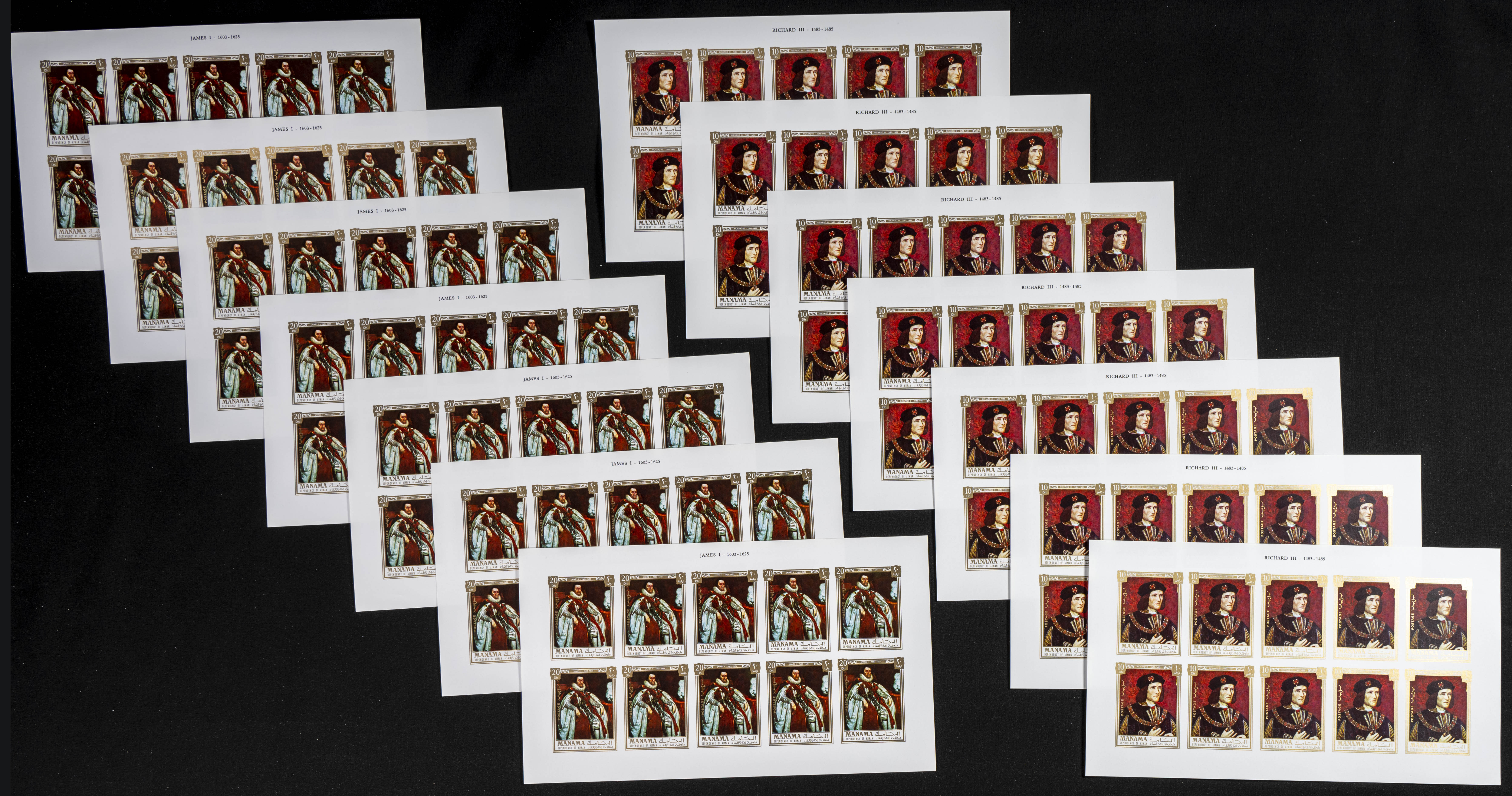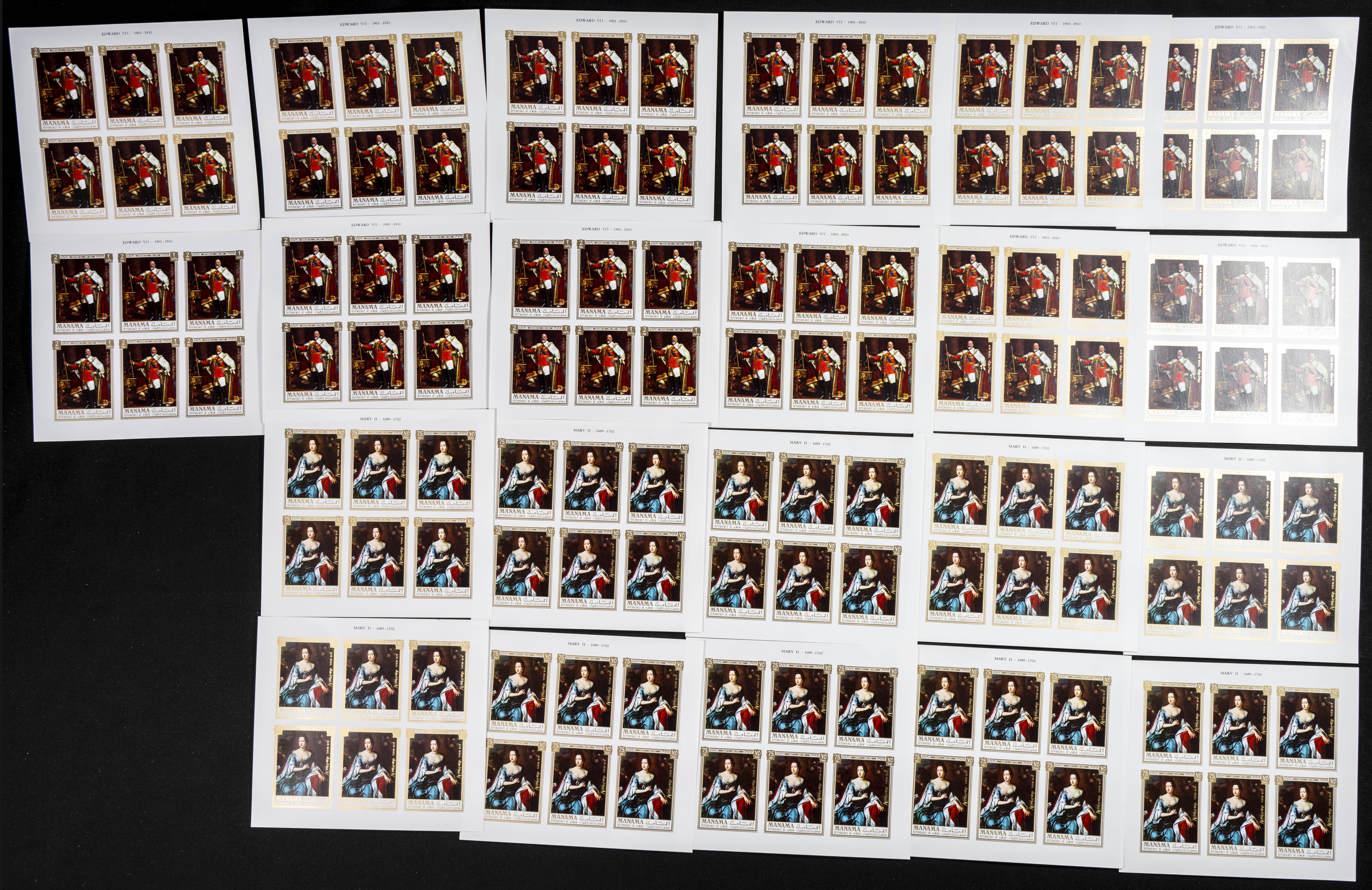 ★★1971. British kings and queens. Group of IMPERFORATED sets. (Michel: 734/45). TO EXAM.