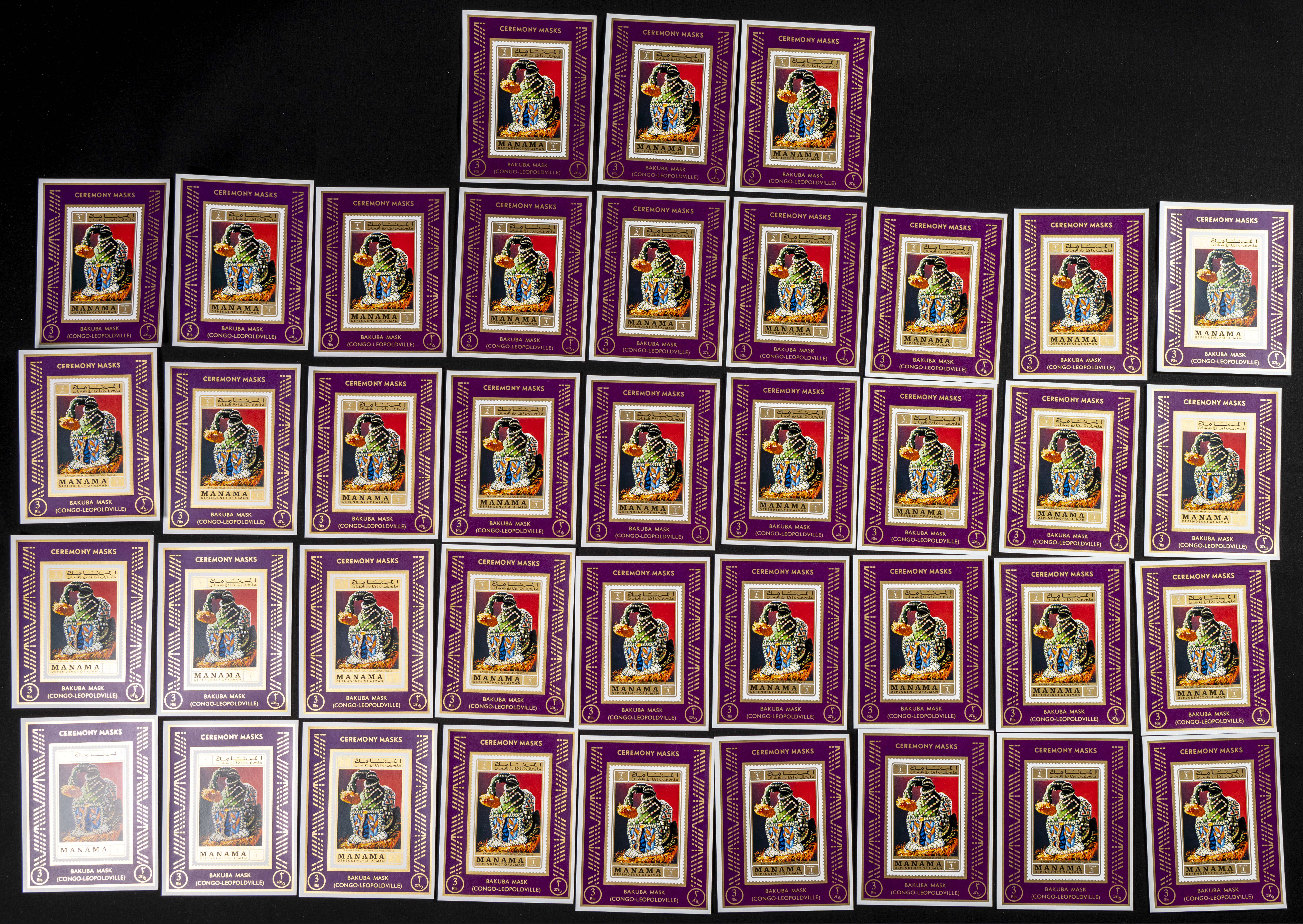 ★★1972. Masks. Group of complete set IMPERFORATED on individual sheets. (Michel: 725/32). TO EXAM.