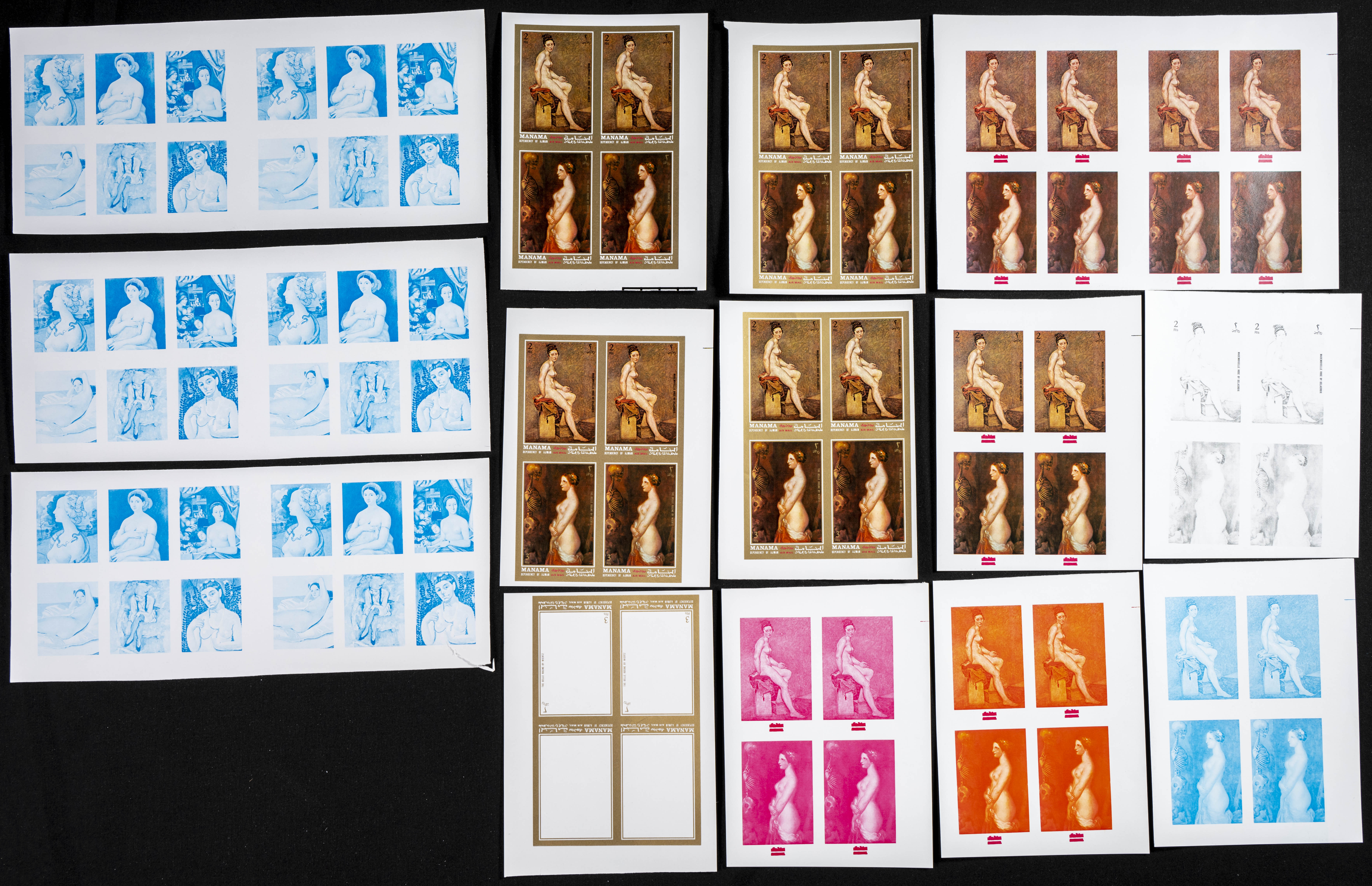 ★★1972. Paintings. Group of progressive plate proofs of the set. (Michel: 852/59). TO EXAM.