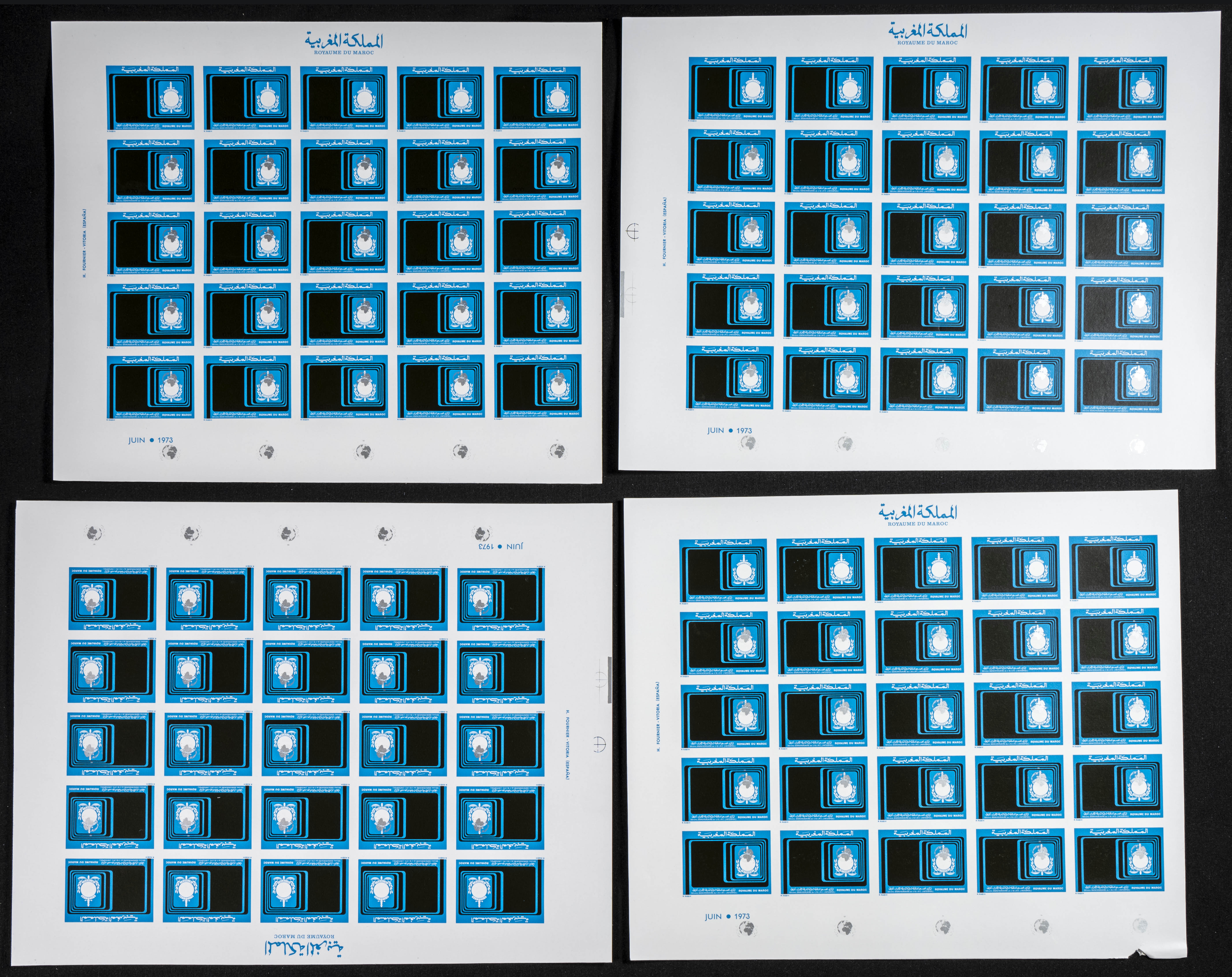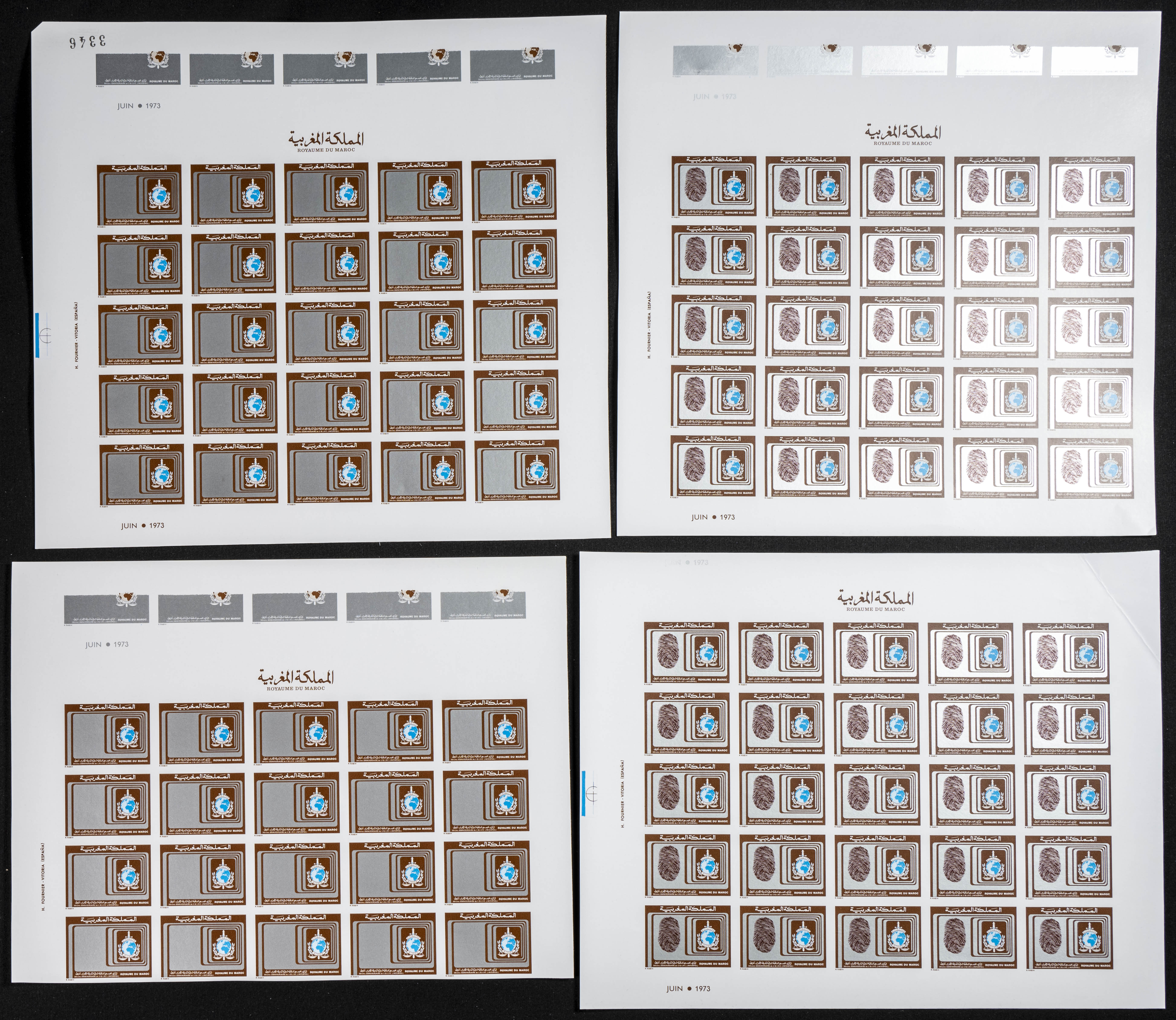 ★★Yvert 686. 1973. Interpol. Group of progressive plate proofs of the set. TO EXAM.
