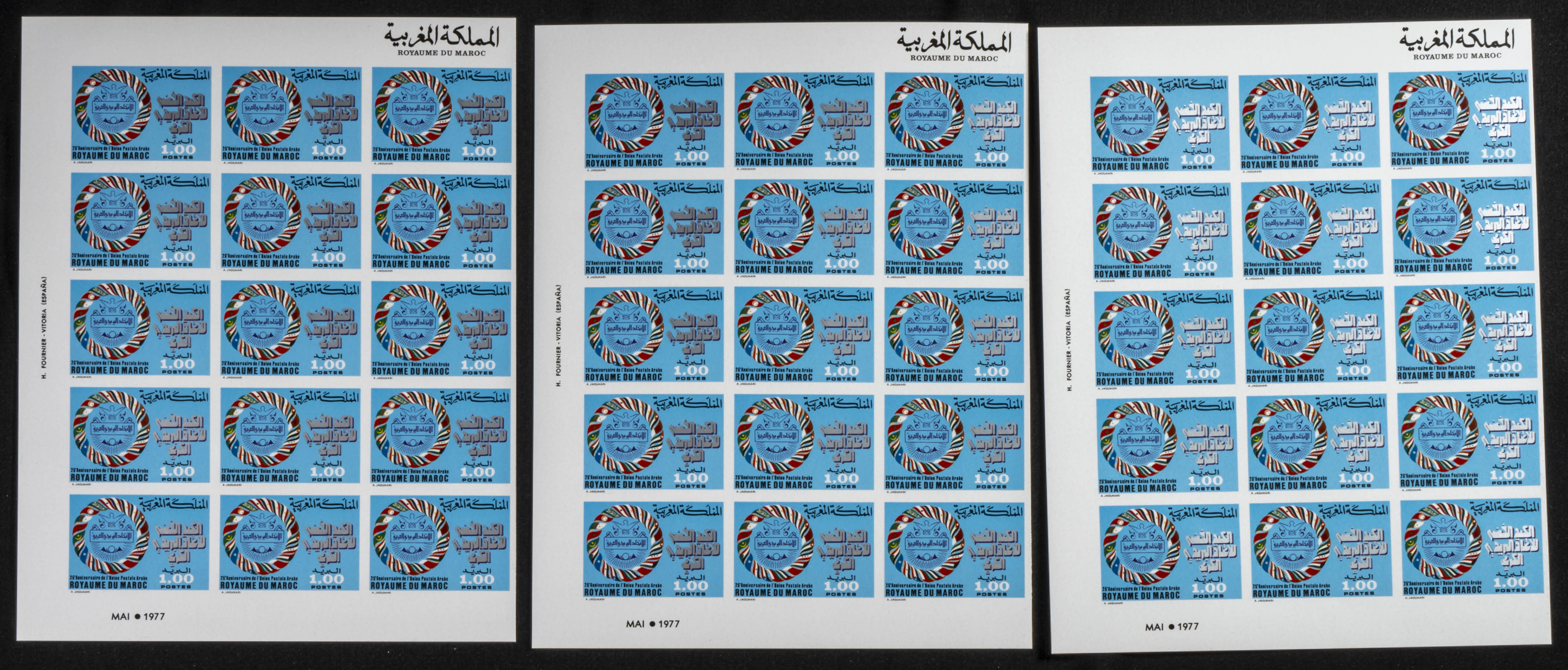 ★★Yvert 790. 1977. Arab postal union. Group of IMPERFORATED sets. TO EXAM.