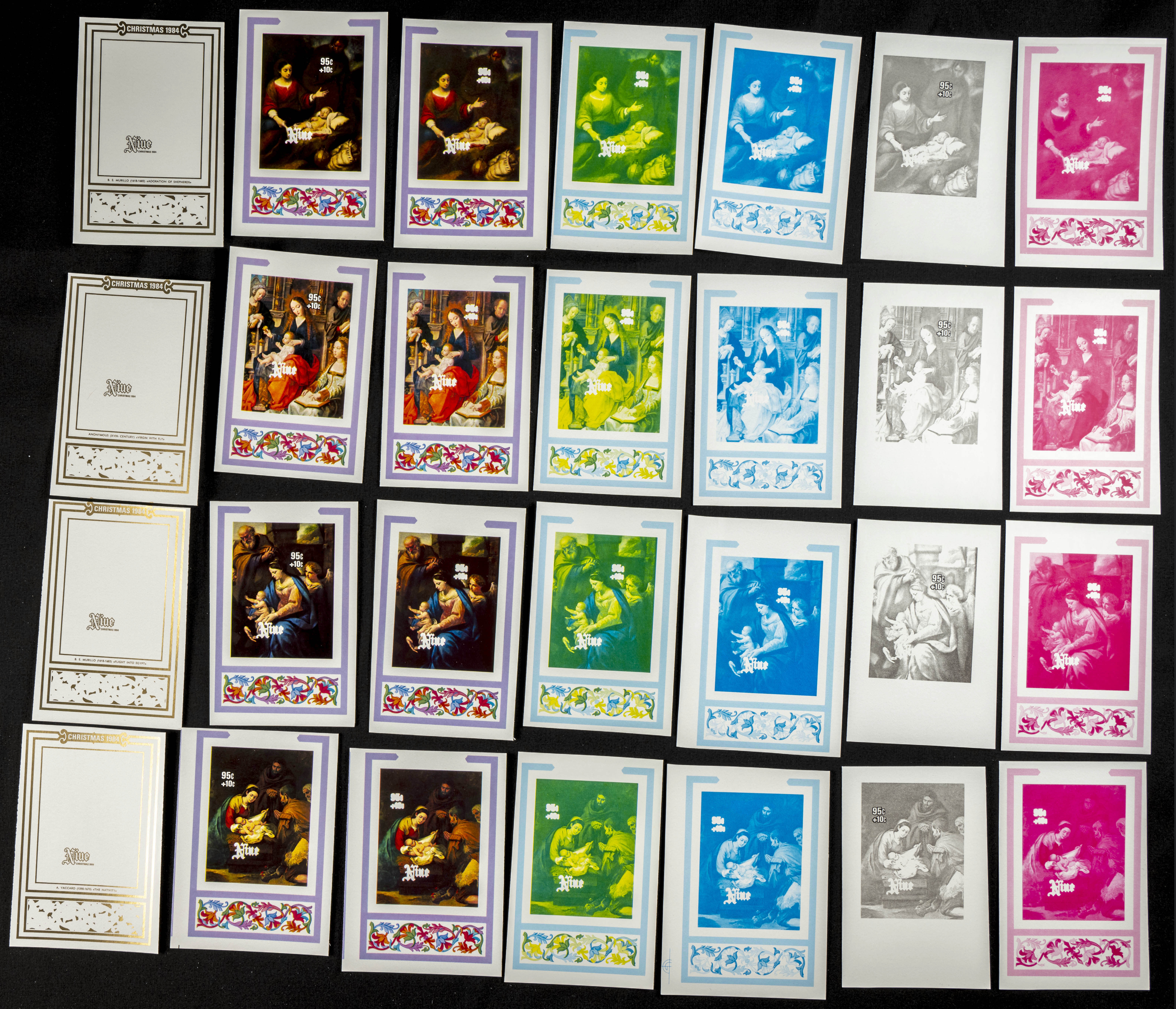 ★★Yvert B79/82. 1984. Christmas. Group of progressive plate proofs of the set. TO EXAM.