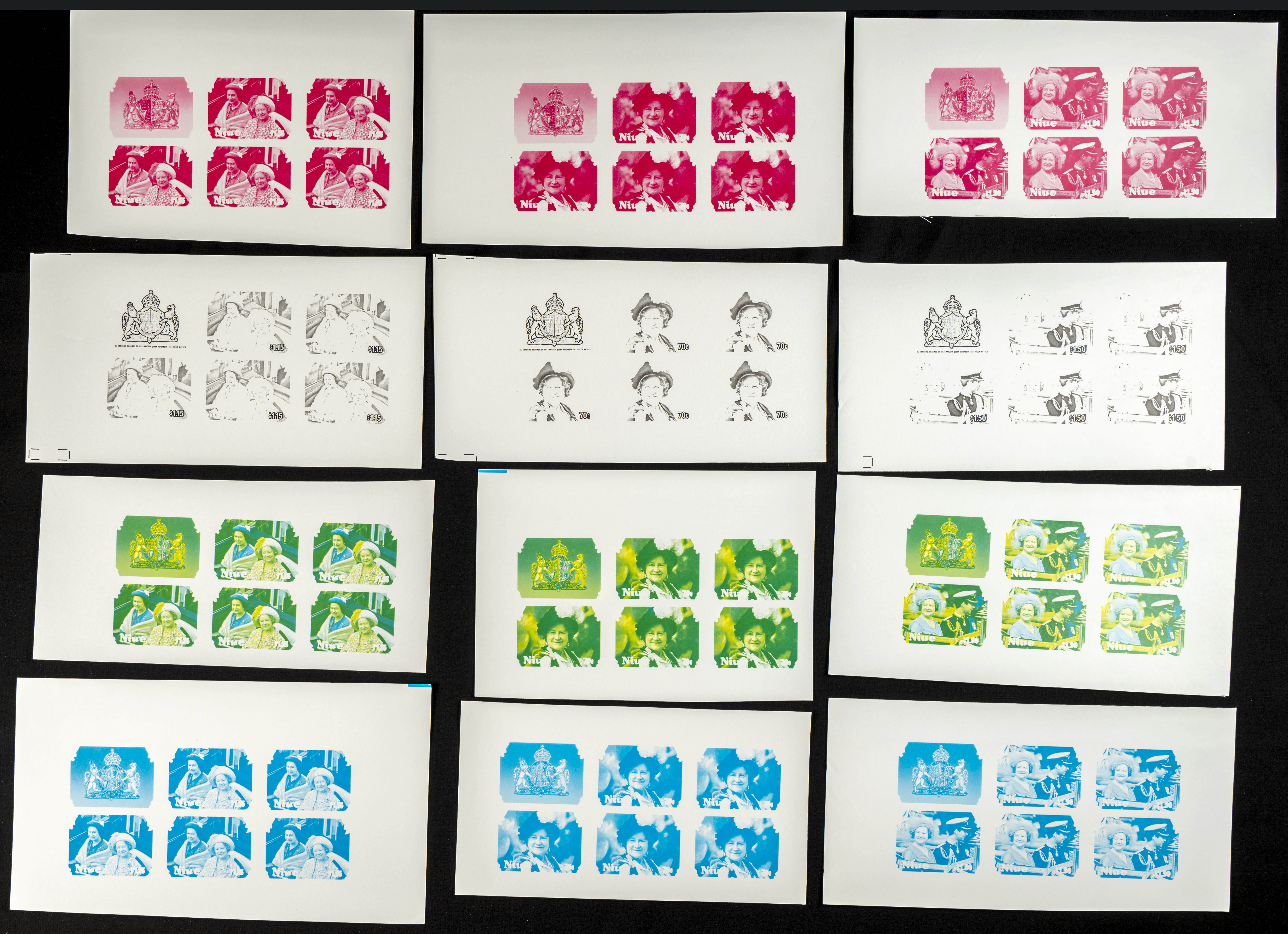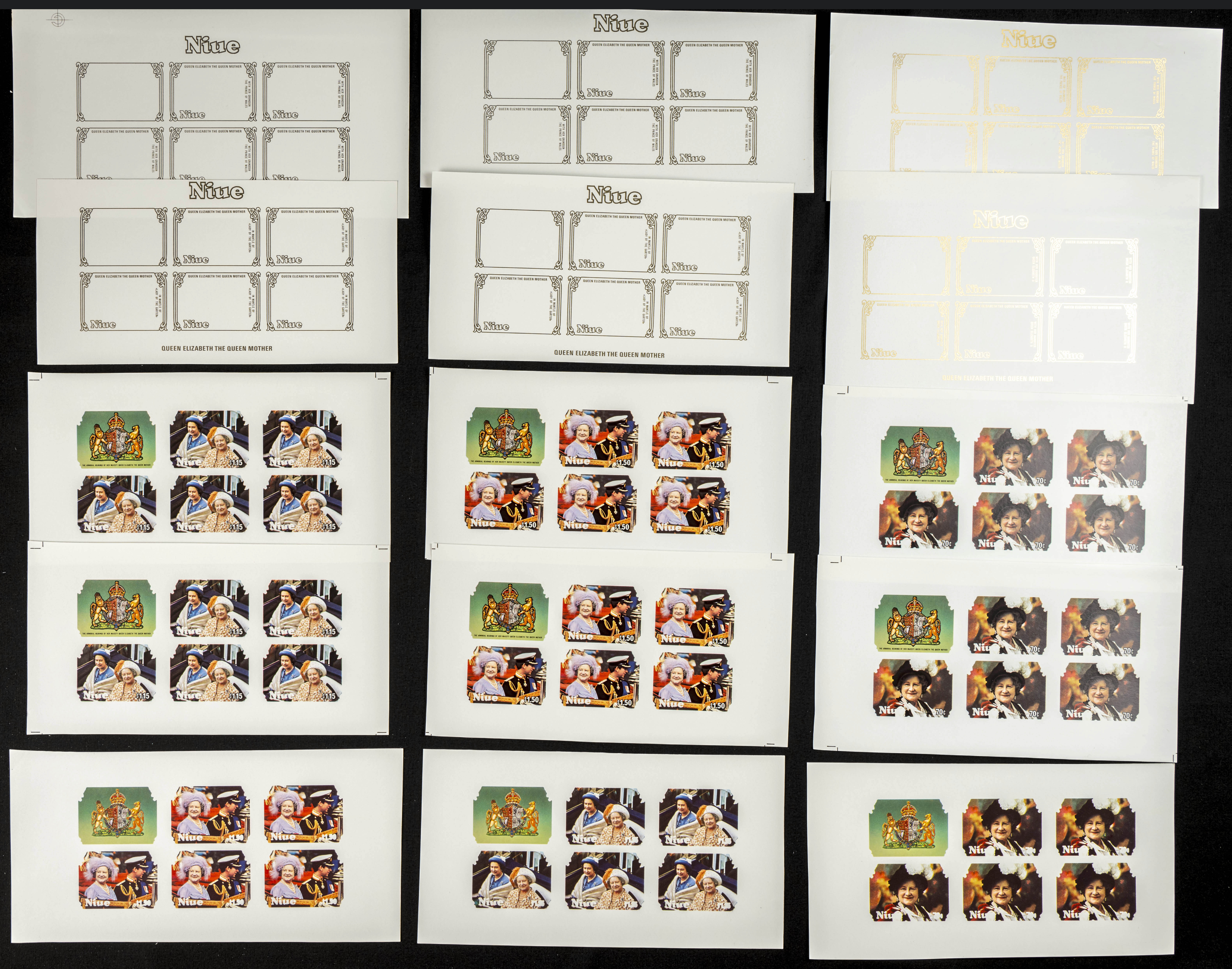 ★★Yvert 469/71. 1985. Queen mother. Group of progressive plate proofs of the set. TO EXAM.
