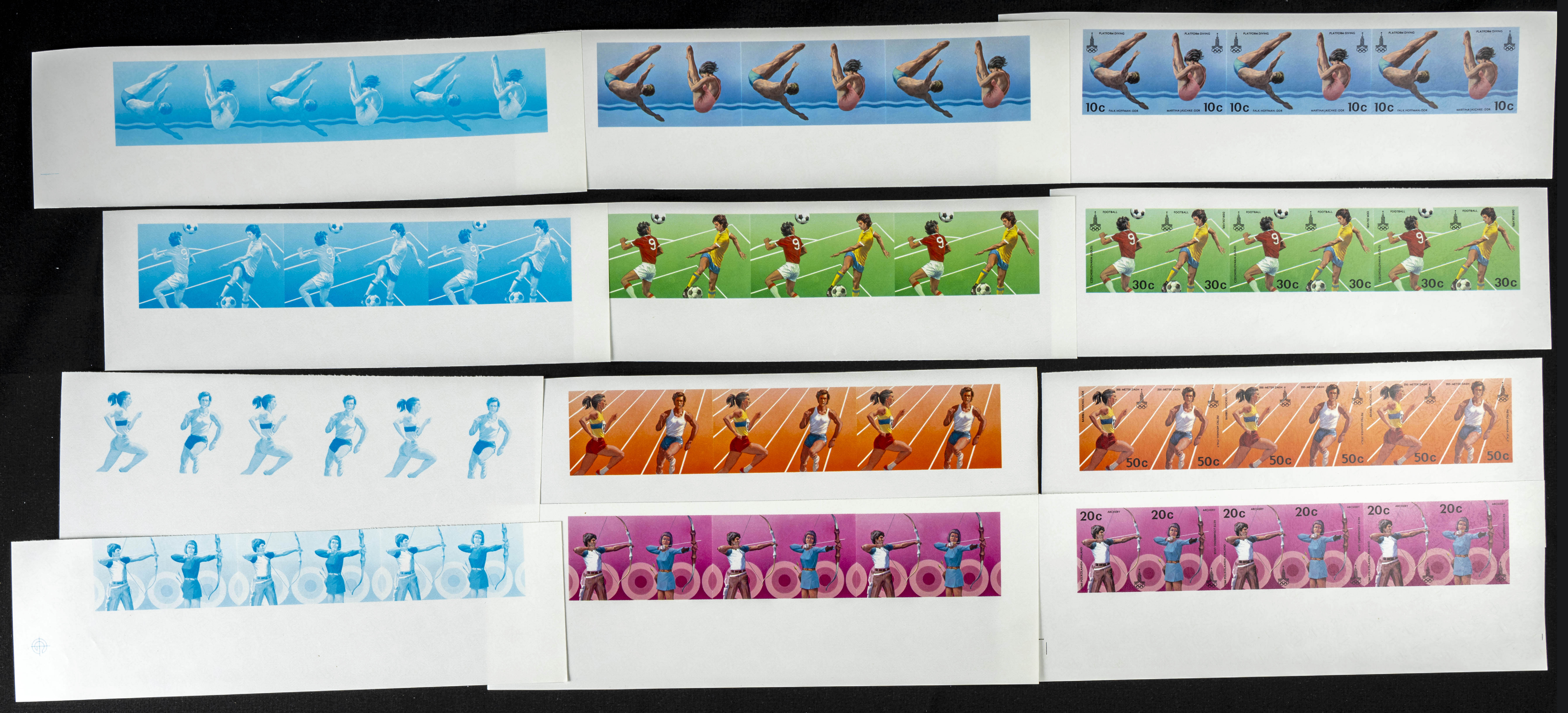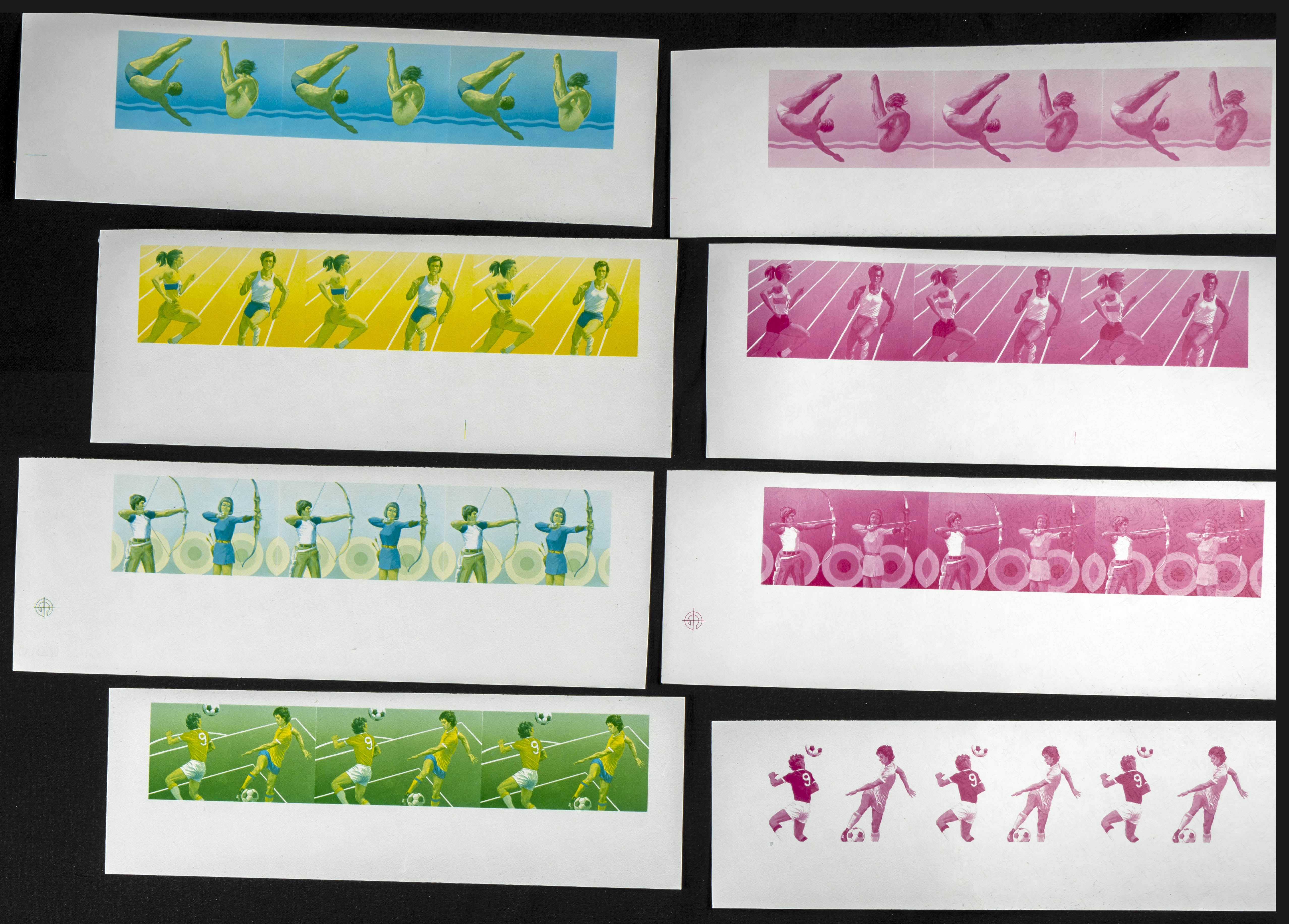 ★★Yvert 125/32. 1980. Olympic games. Group of progressive plate proofs of the set. TO EXAM.