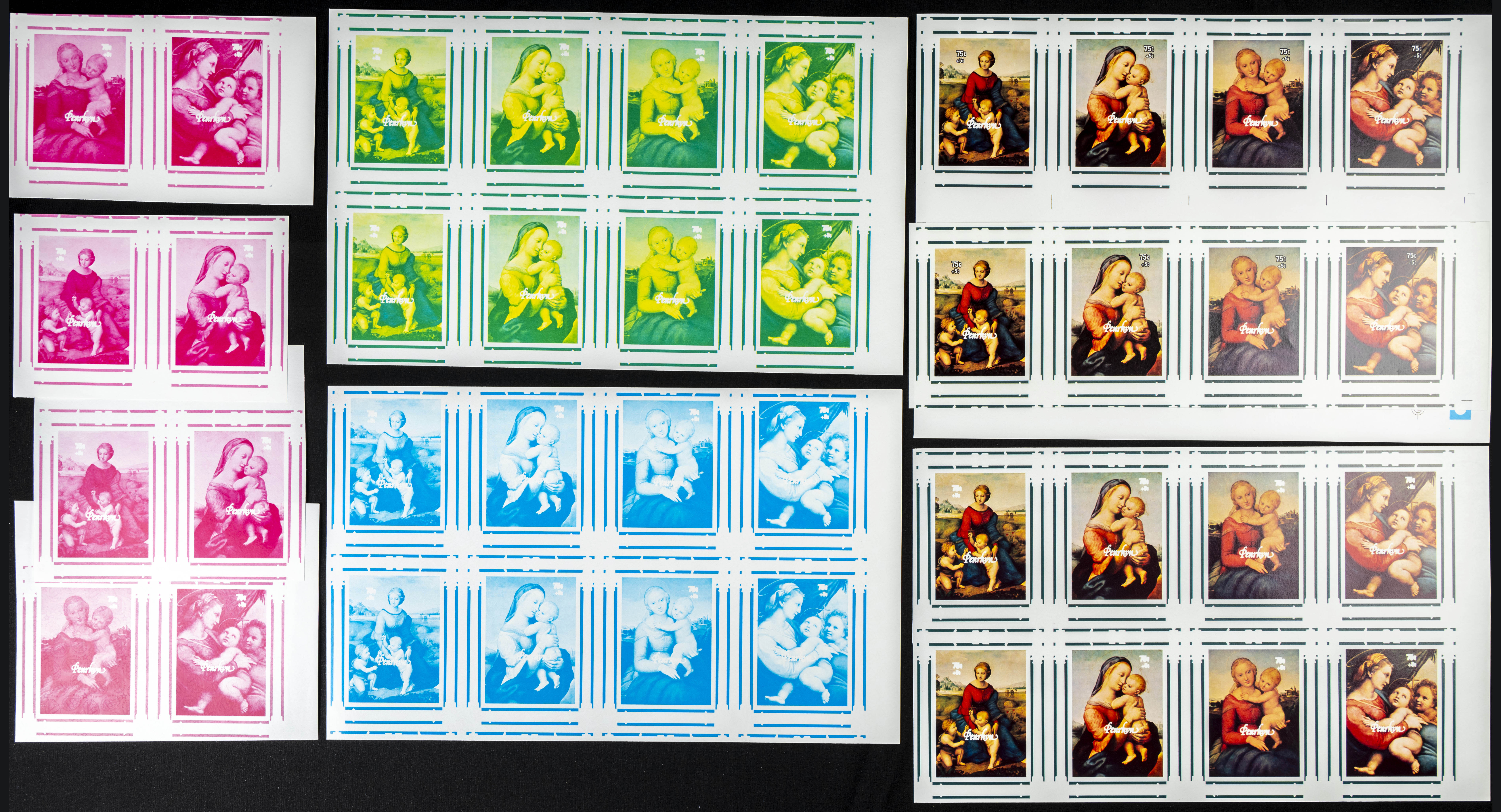 ★★Yvert B49/53. 1983. Christmas. Group of progressive plate proofs of the set. TO EXAM.