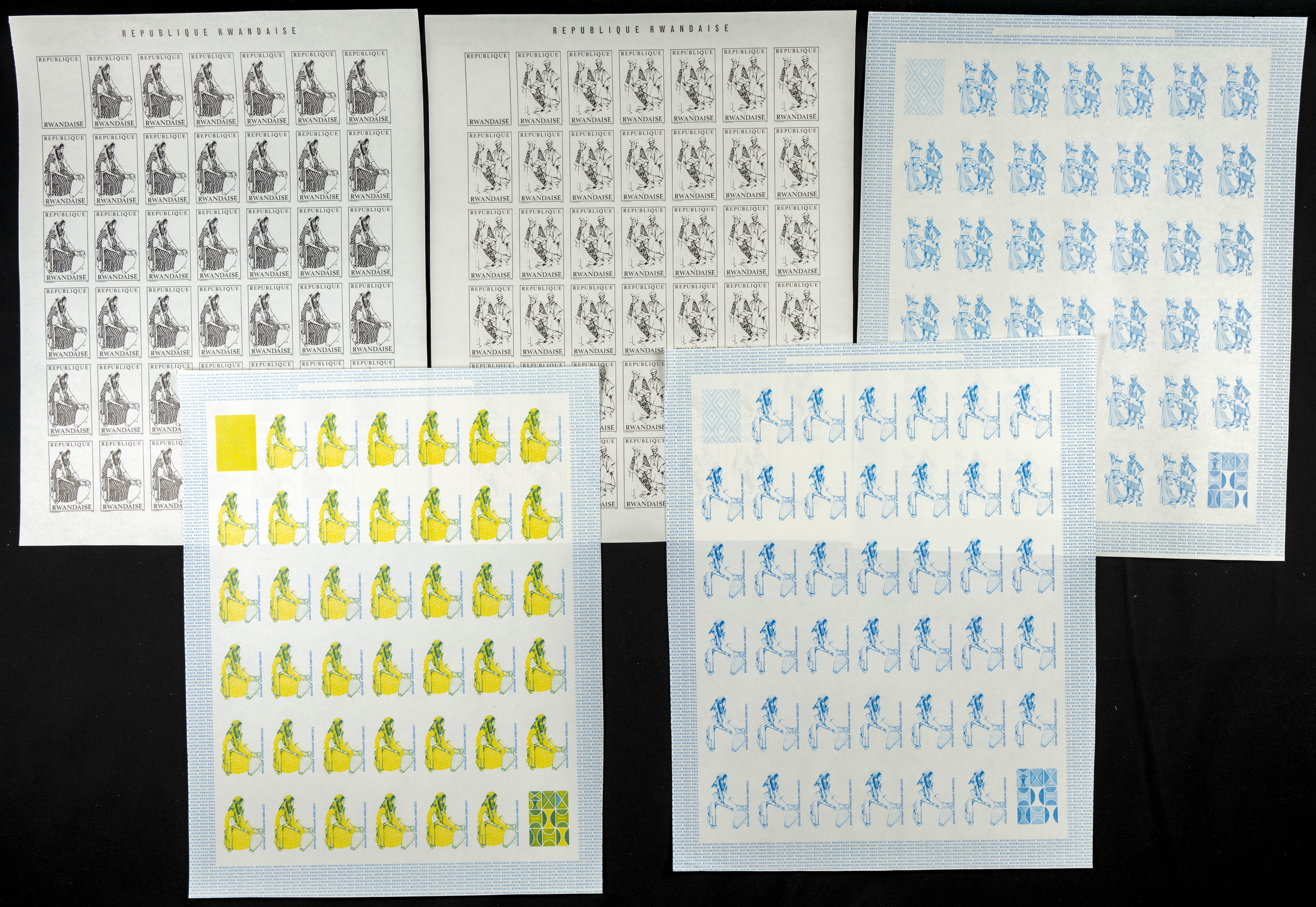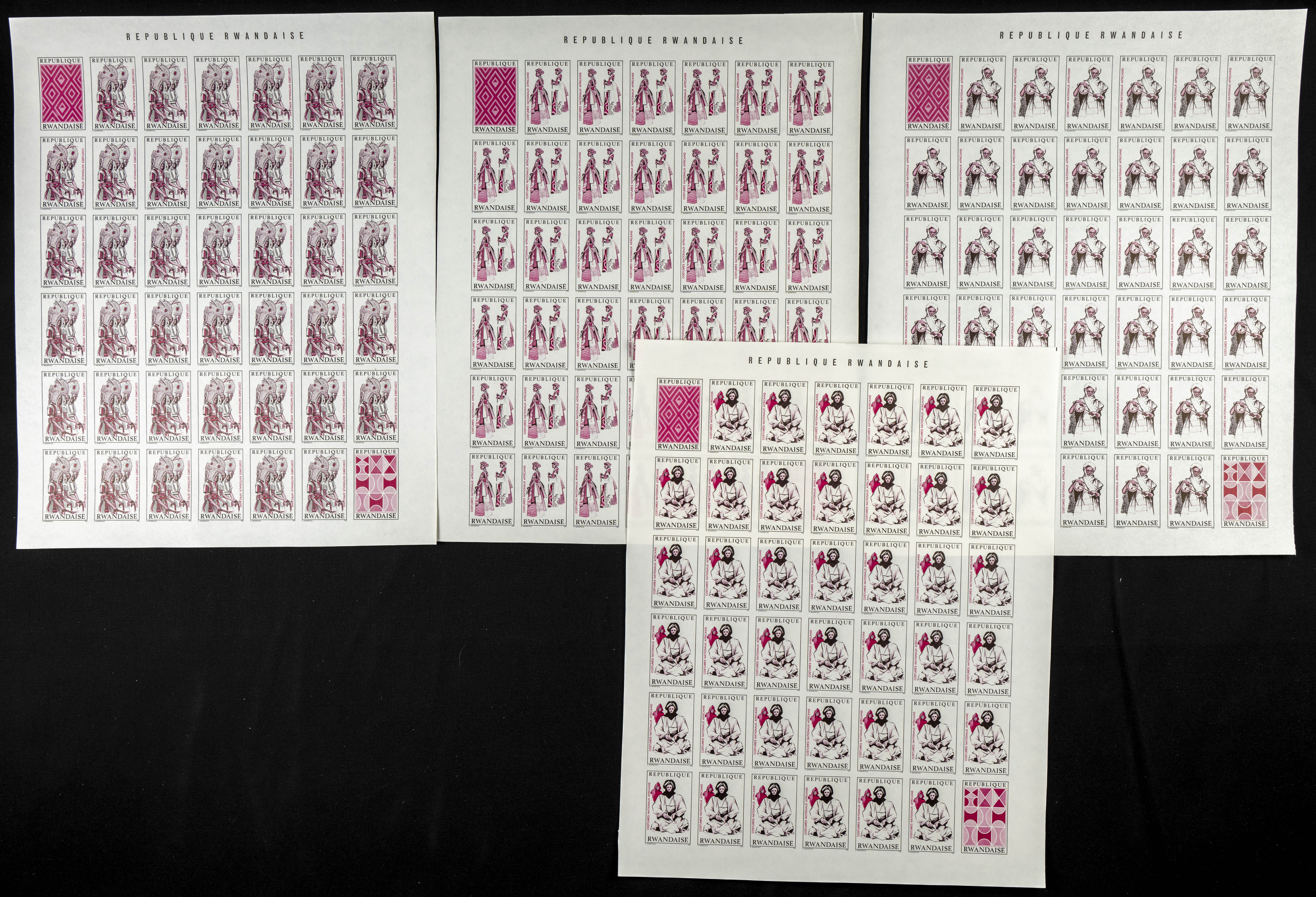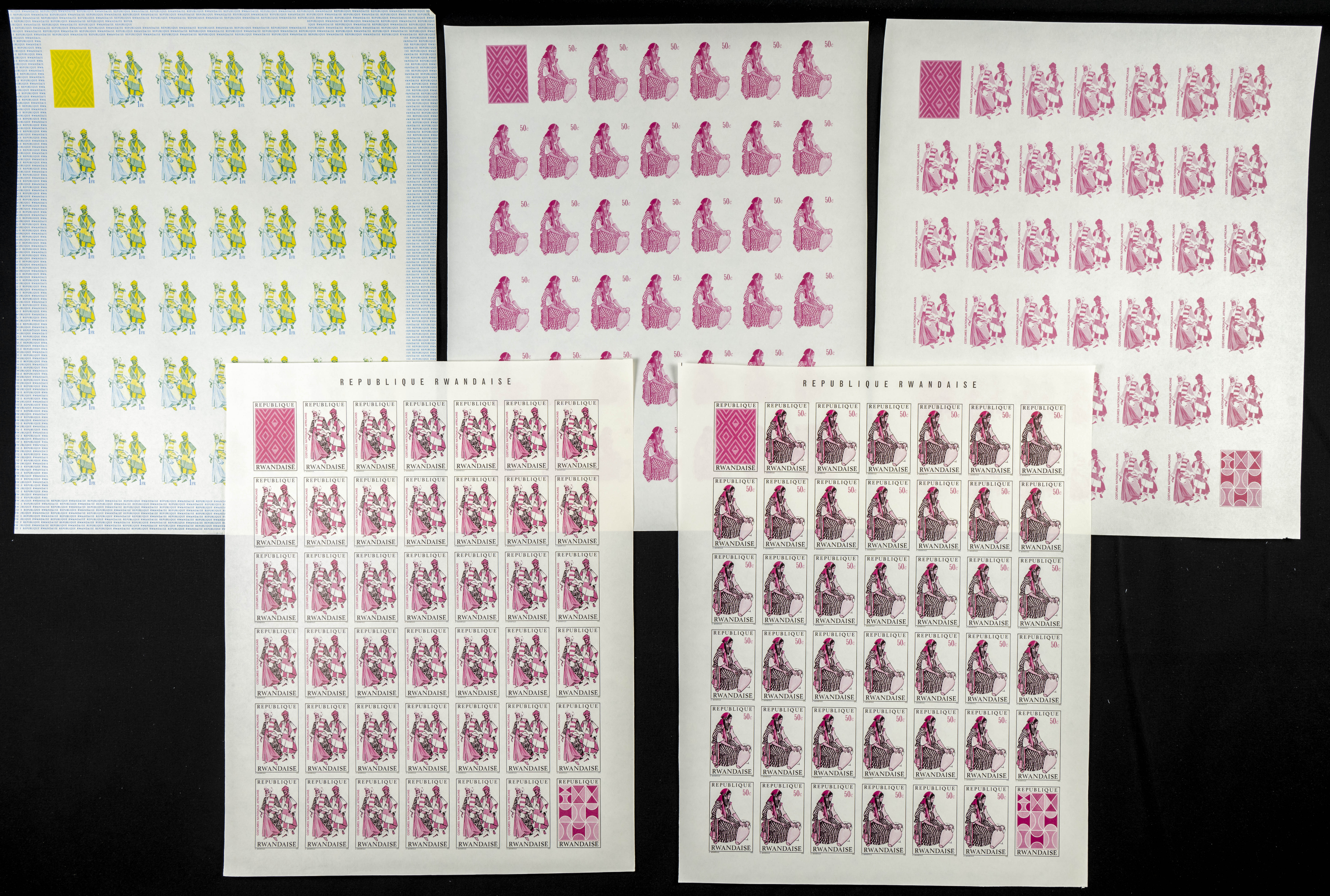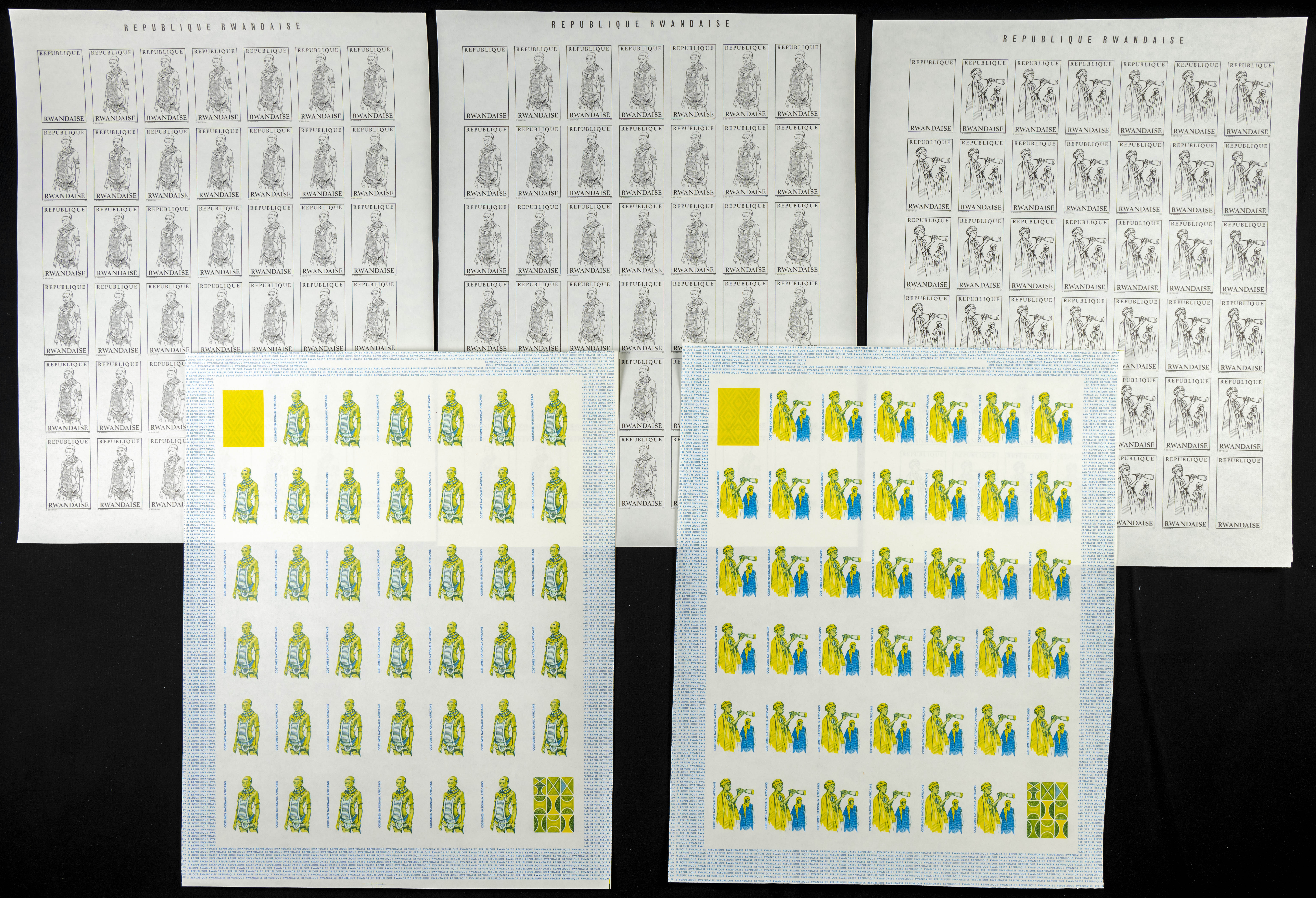 ★★Yvert 346/53. 1968. Costumes. Group of progressive plate proofs of the set. TO EXAM.